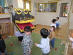 獅子舞のお口に「はい!どーぞ」