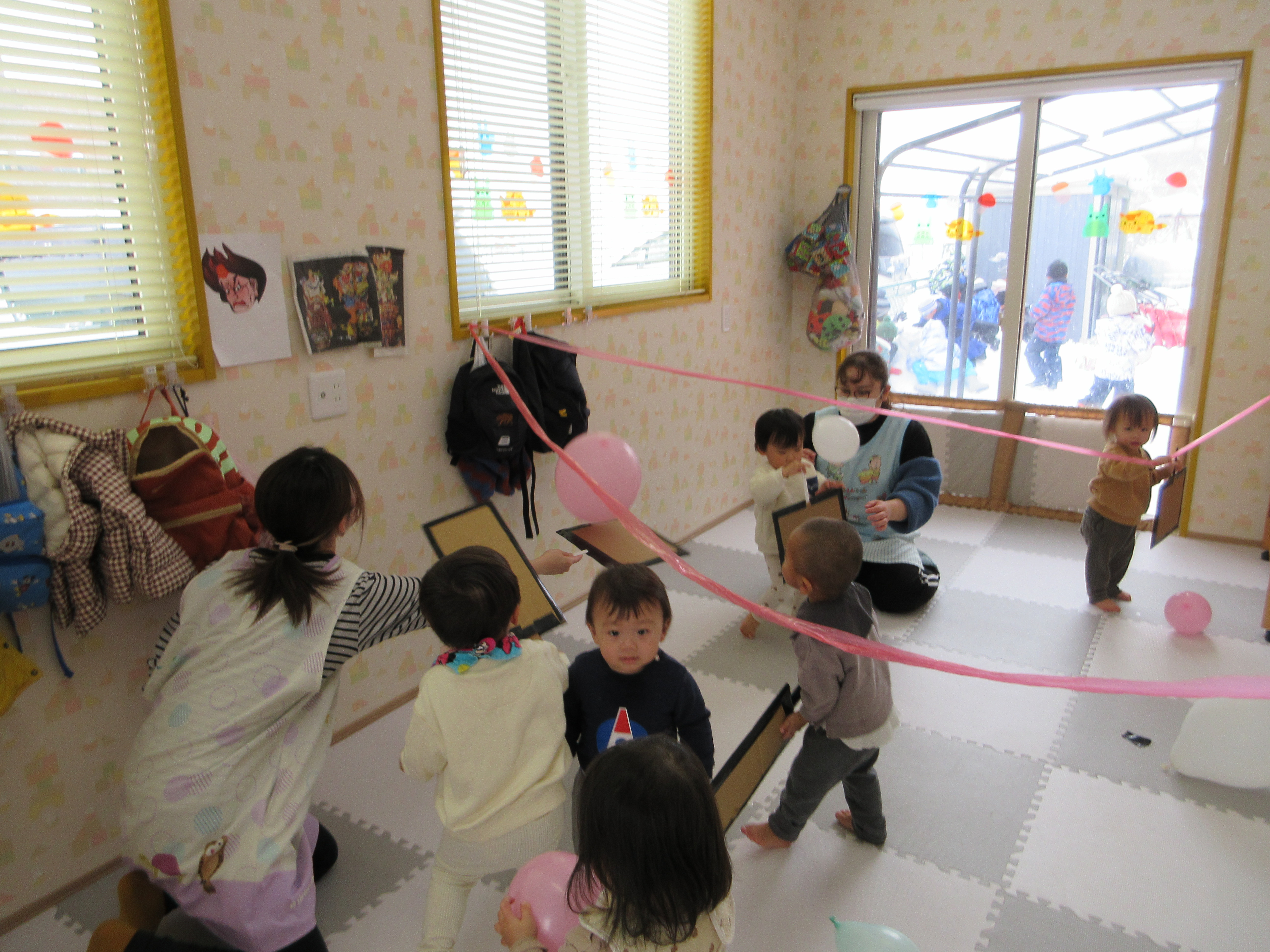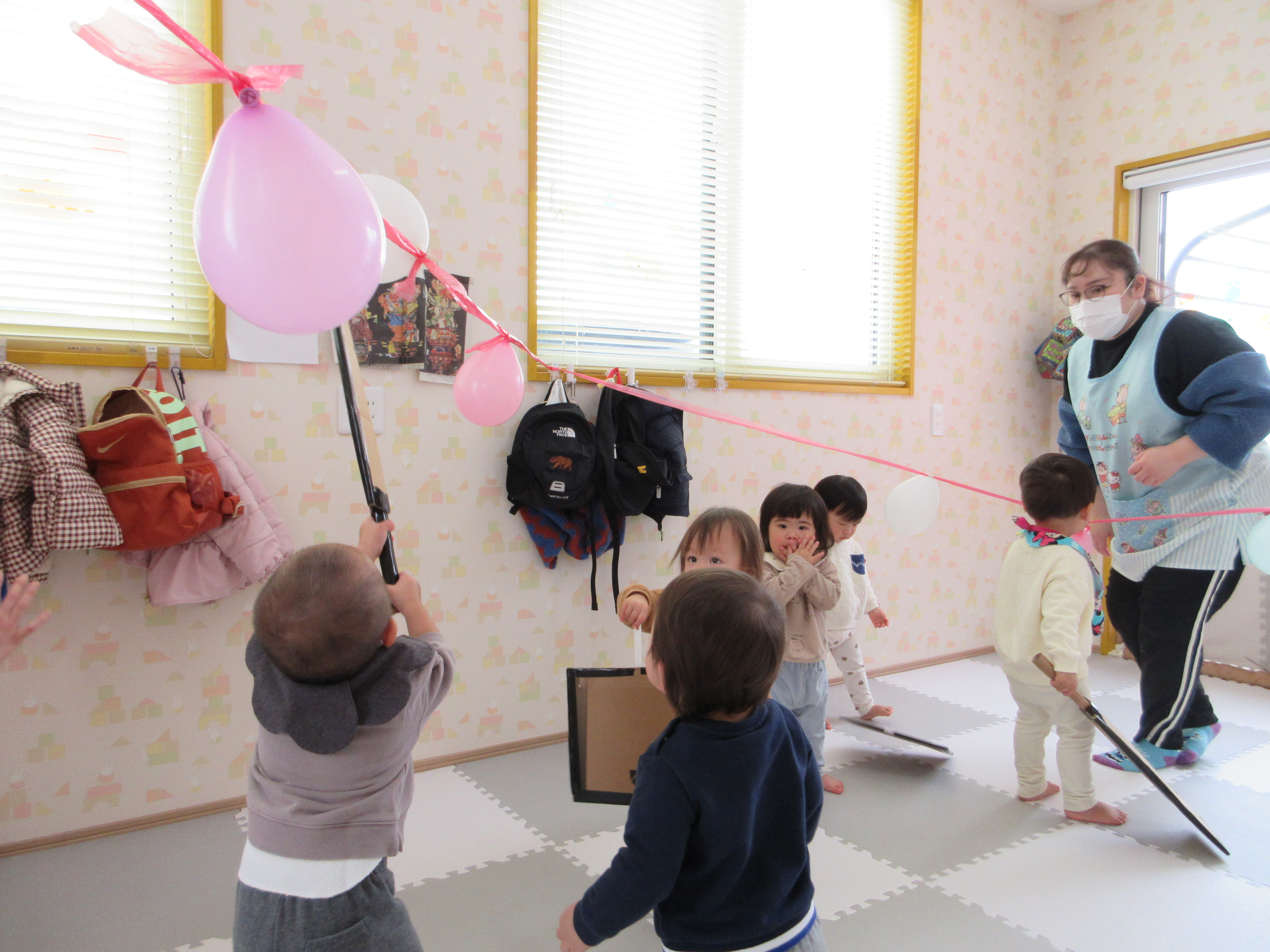 大きい羽子板で「羽根つき」ごっこ(*^^*)