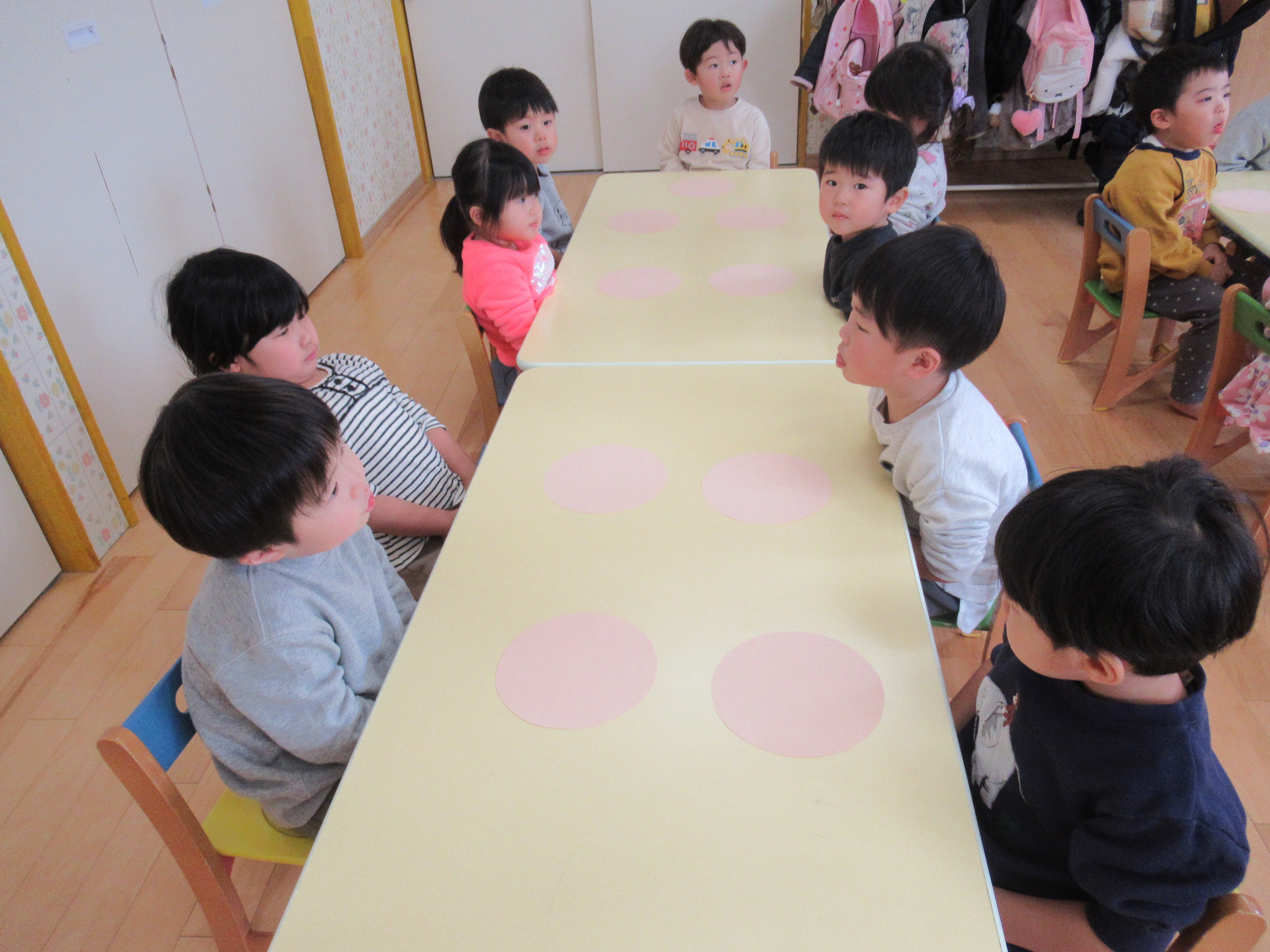 お給食前。お箸を置いてお手々はお膝で待ちます☆