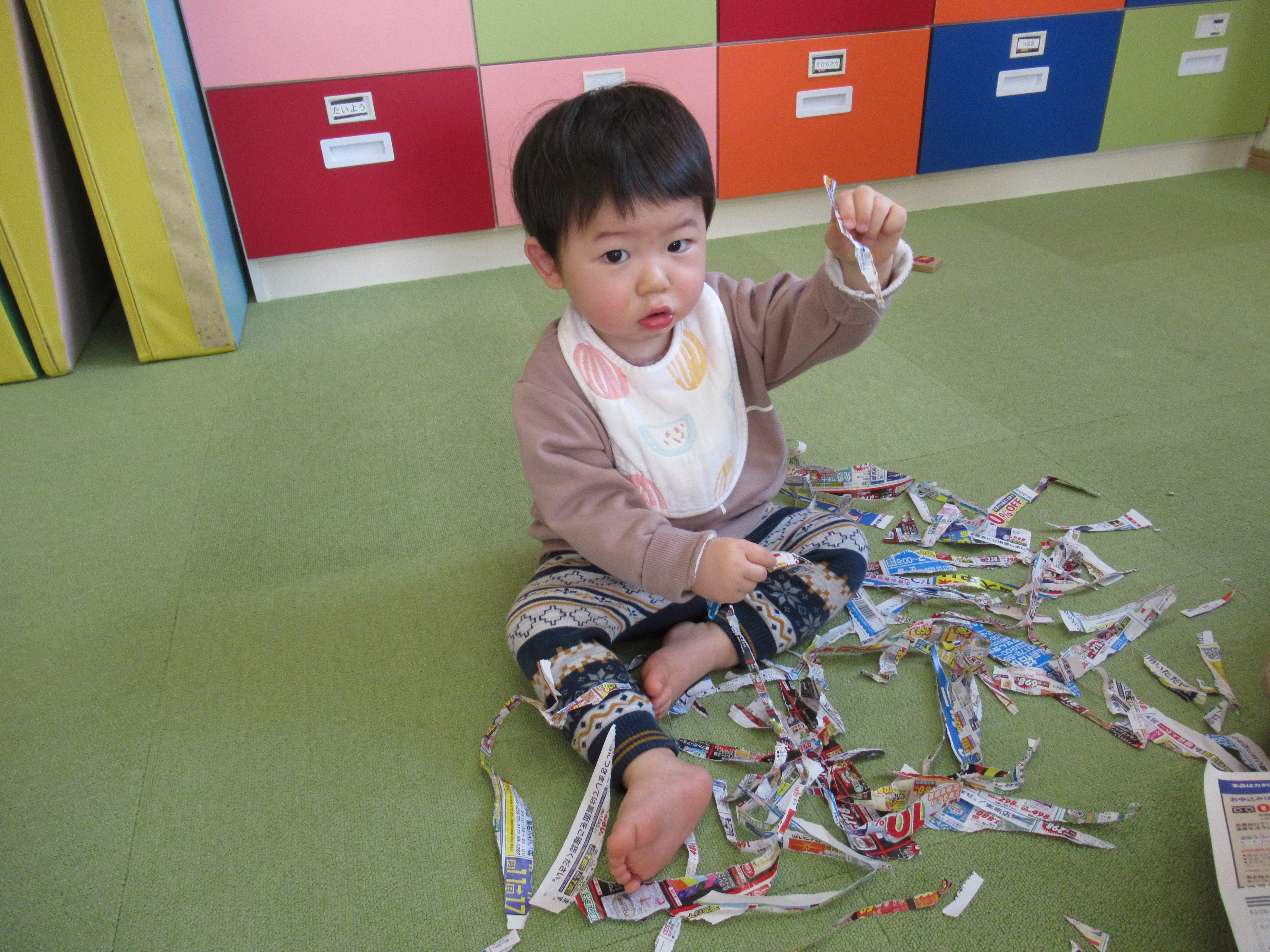 ぼくらは暖かい部屋で紙をちぎってあそんでま〜す!