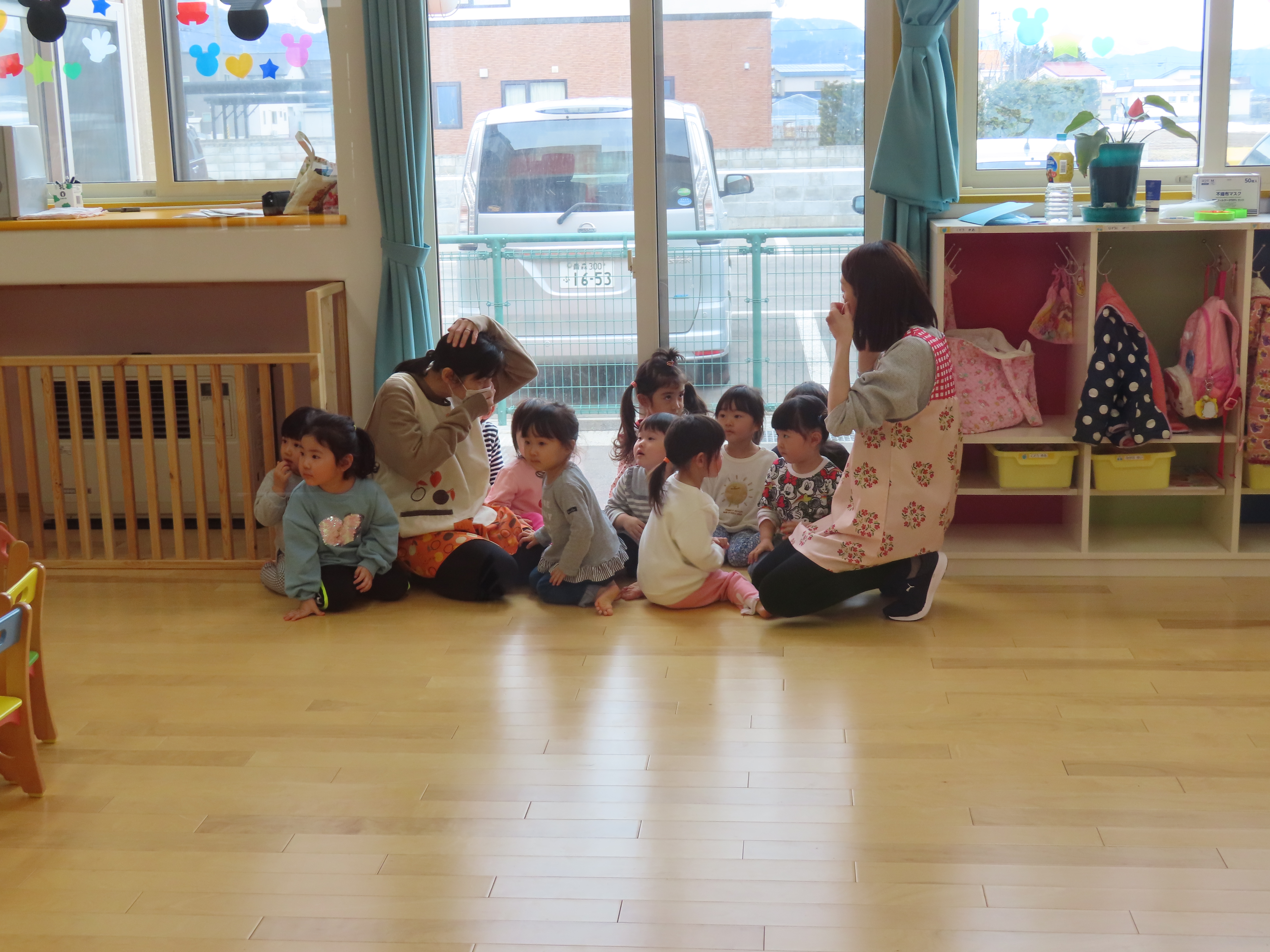 以上児組は瞬時に、口と頭を押さえてます。練習の積み重ねが大事!