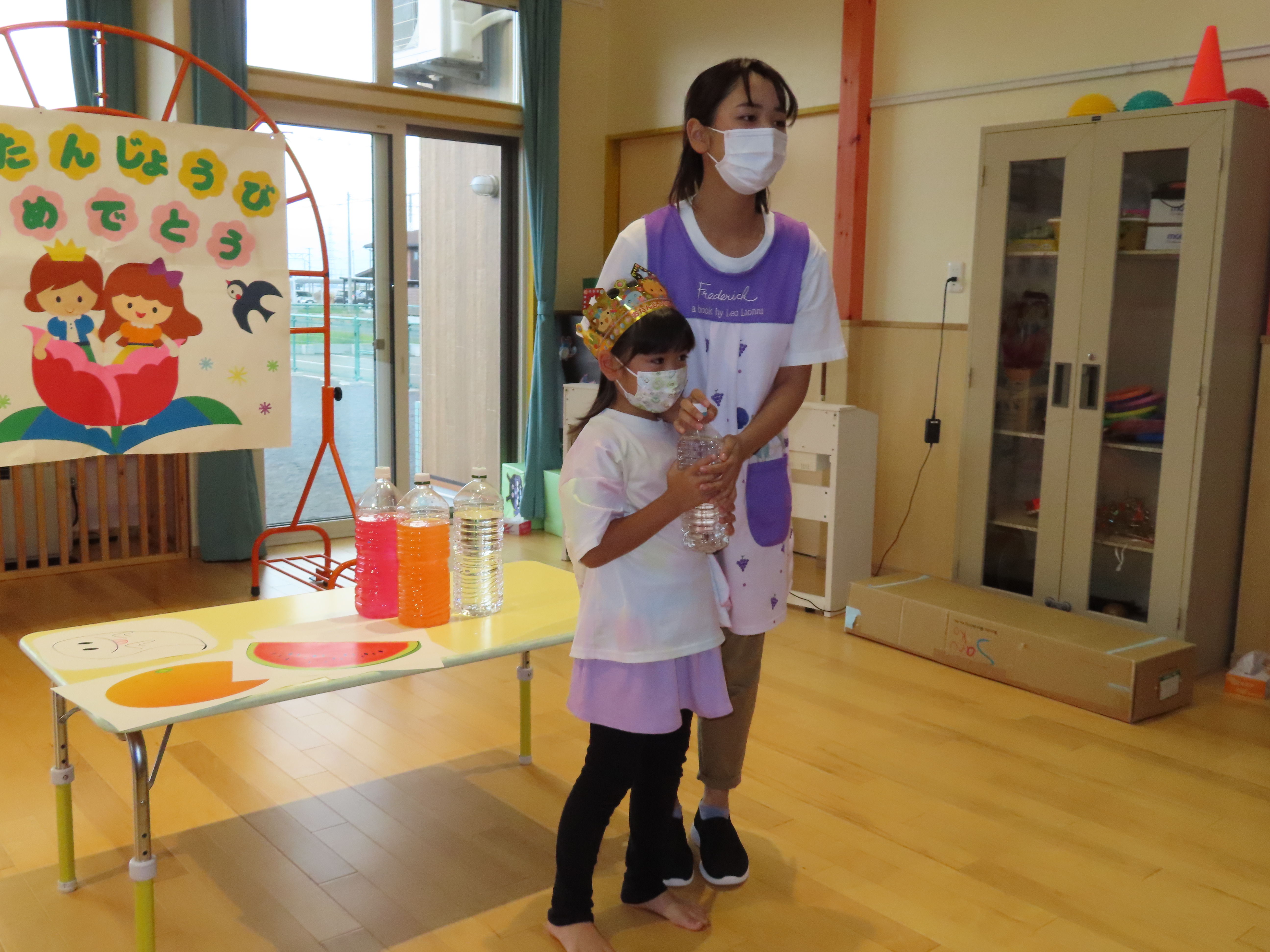 今度は園児を代表して、「パイナップルジュースにな〜れ!」