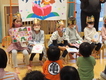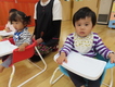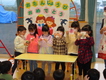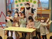 果物カードを半分に切ってシャッフルしてみんなに配ると