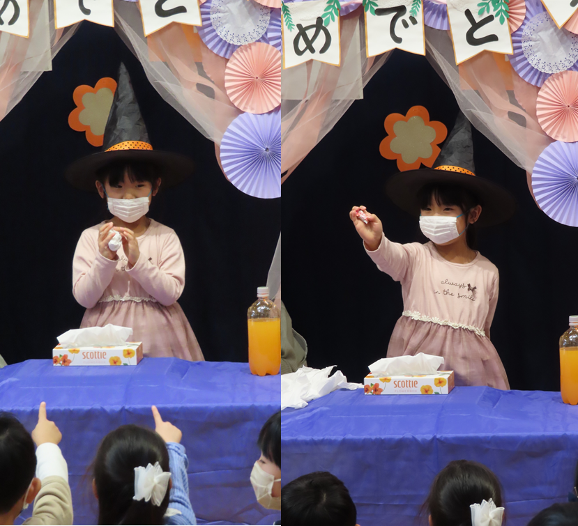 ぶどう組は手品を披露!おぉ色が変わったね!