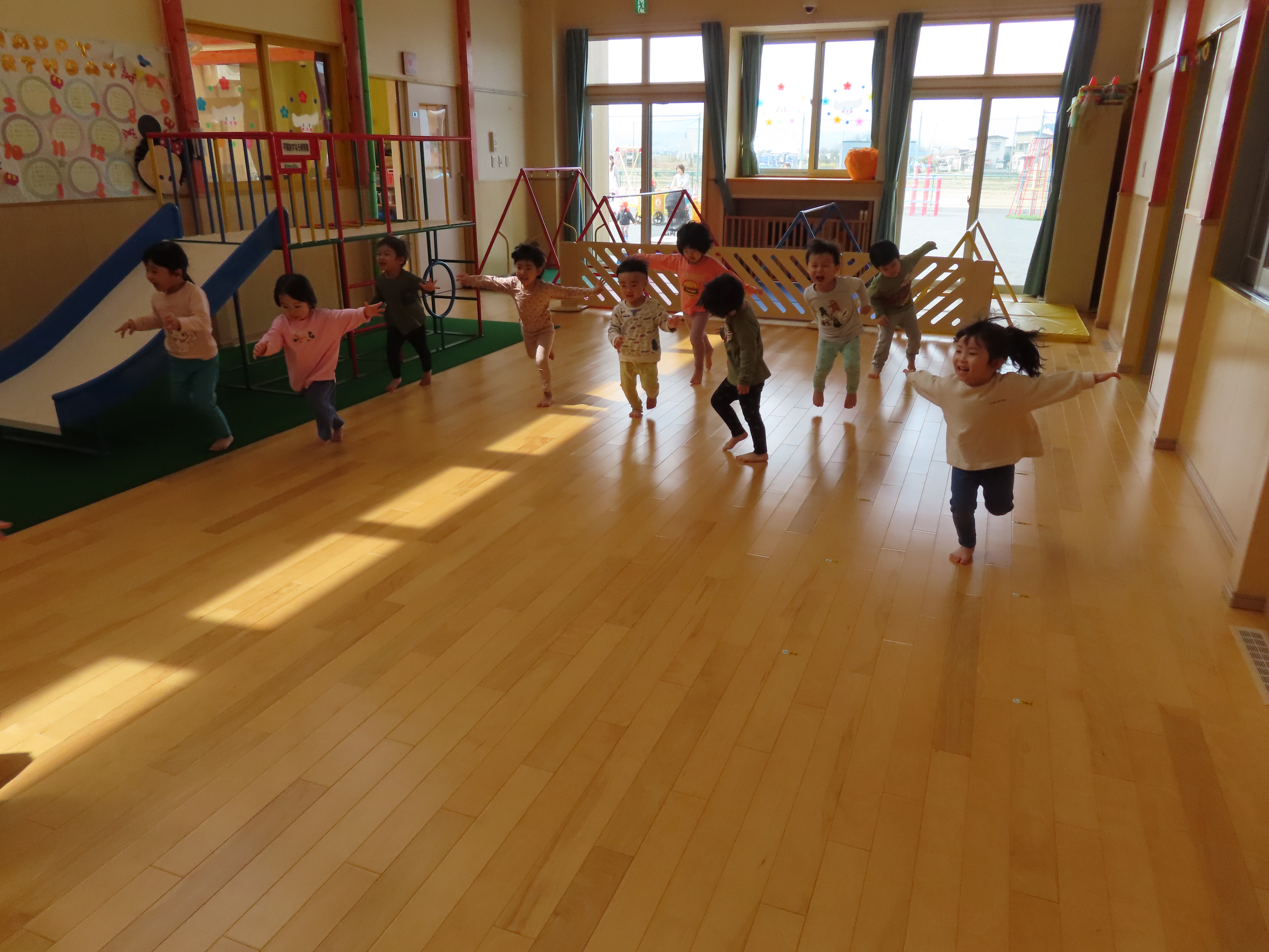 ぶどう・ばなな組、朝の自由遊びの時間。