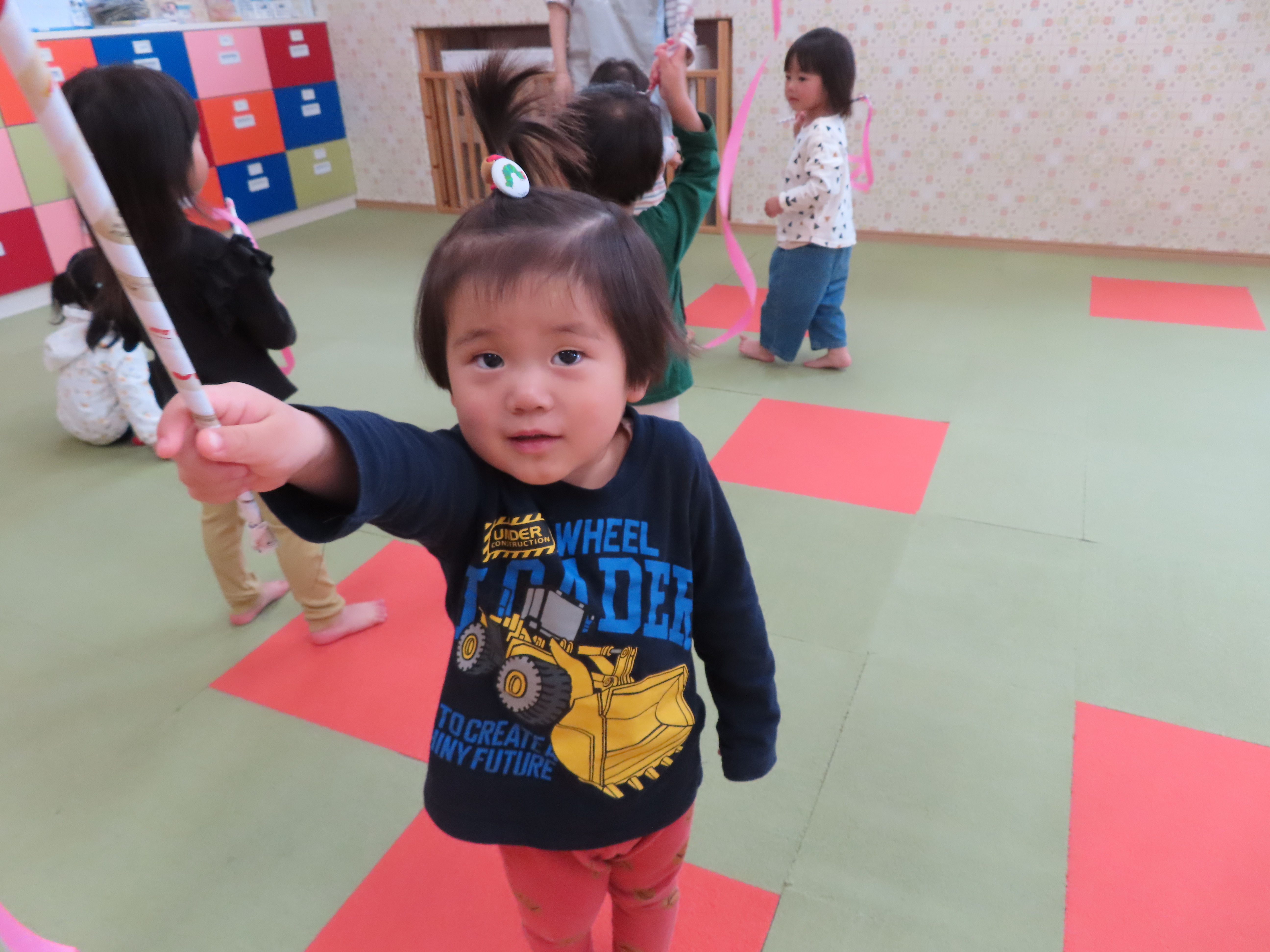 手作りこいのぼりを持って園庭へ!