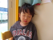たくさん遊んでお腹をすかせておにぎりパクパク…。