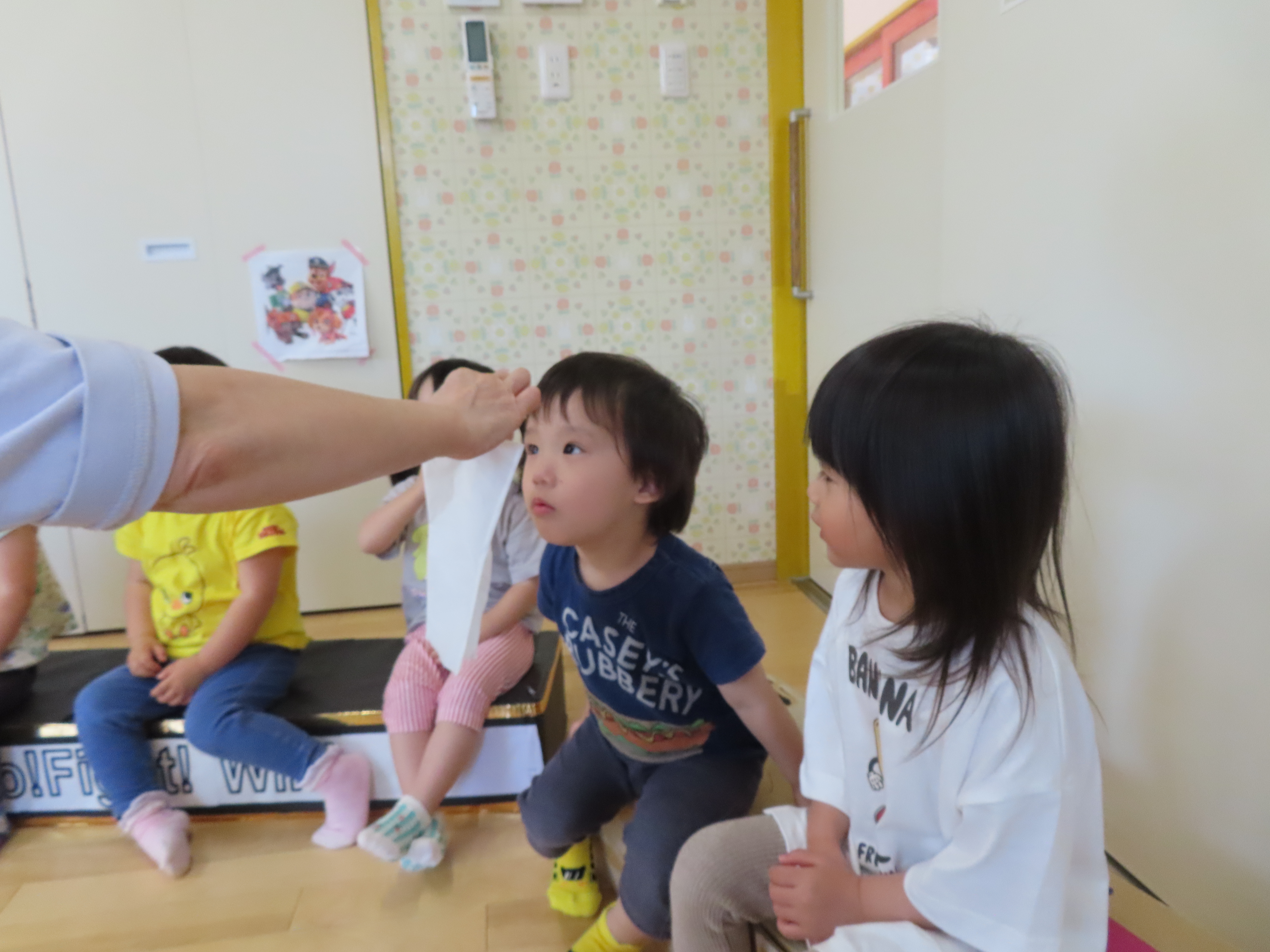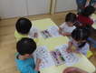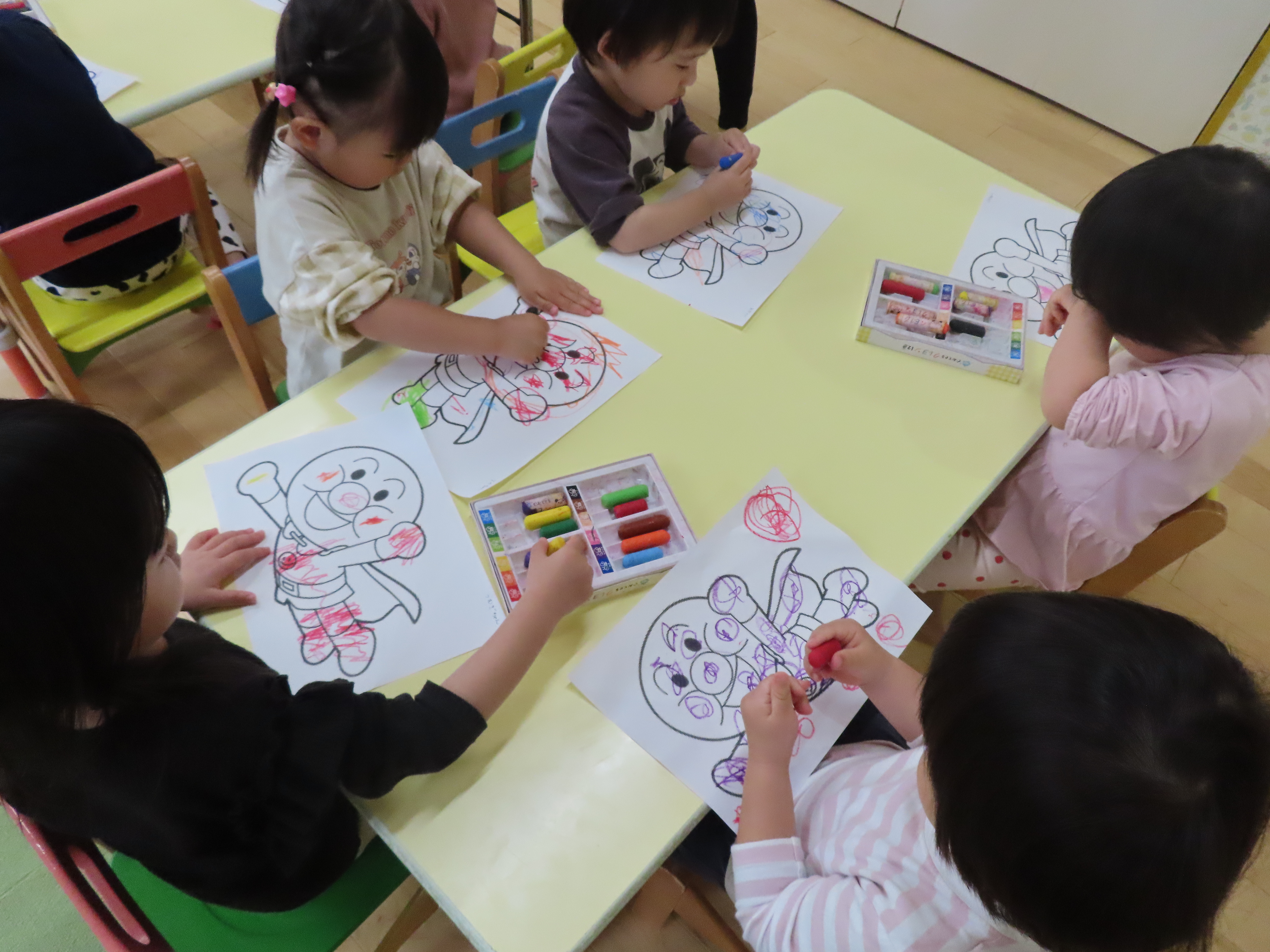 もも組、アンパンマンのぬり絵をしたよ。