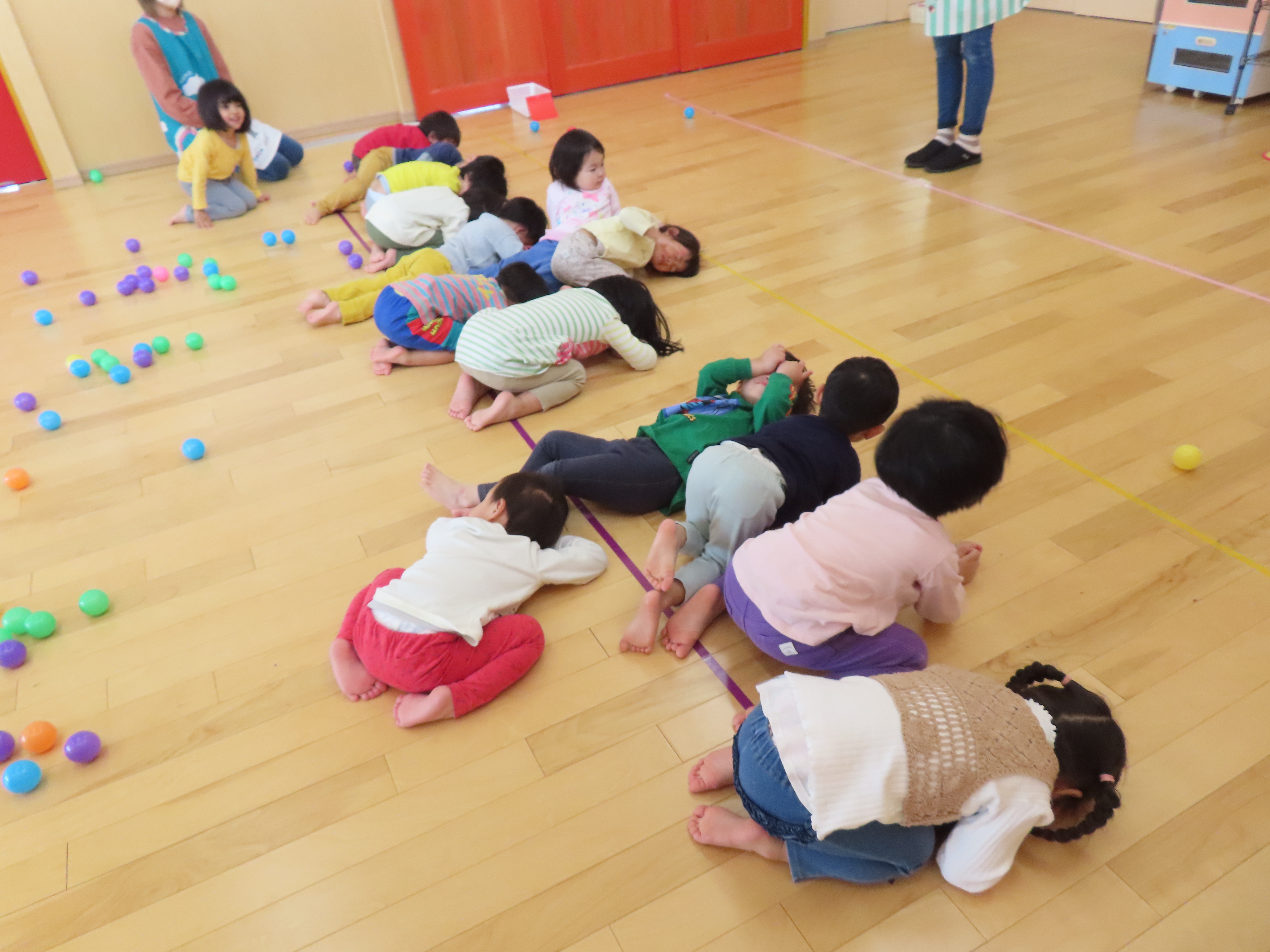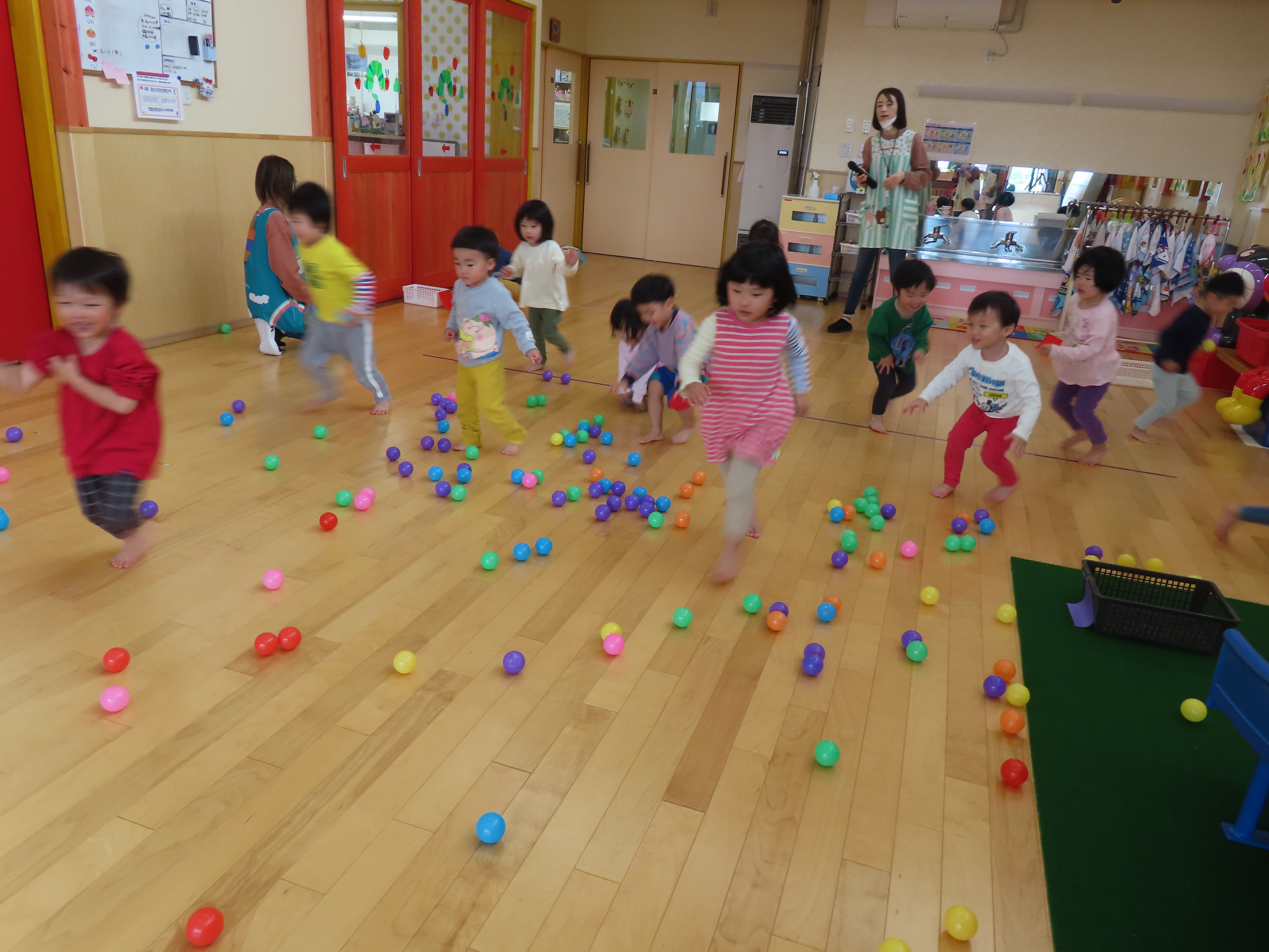 ばなな組、ボール集め競争!