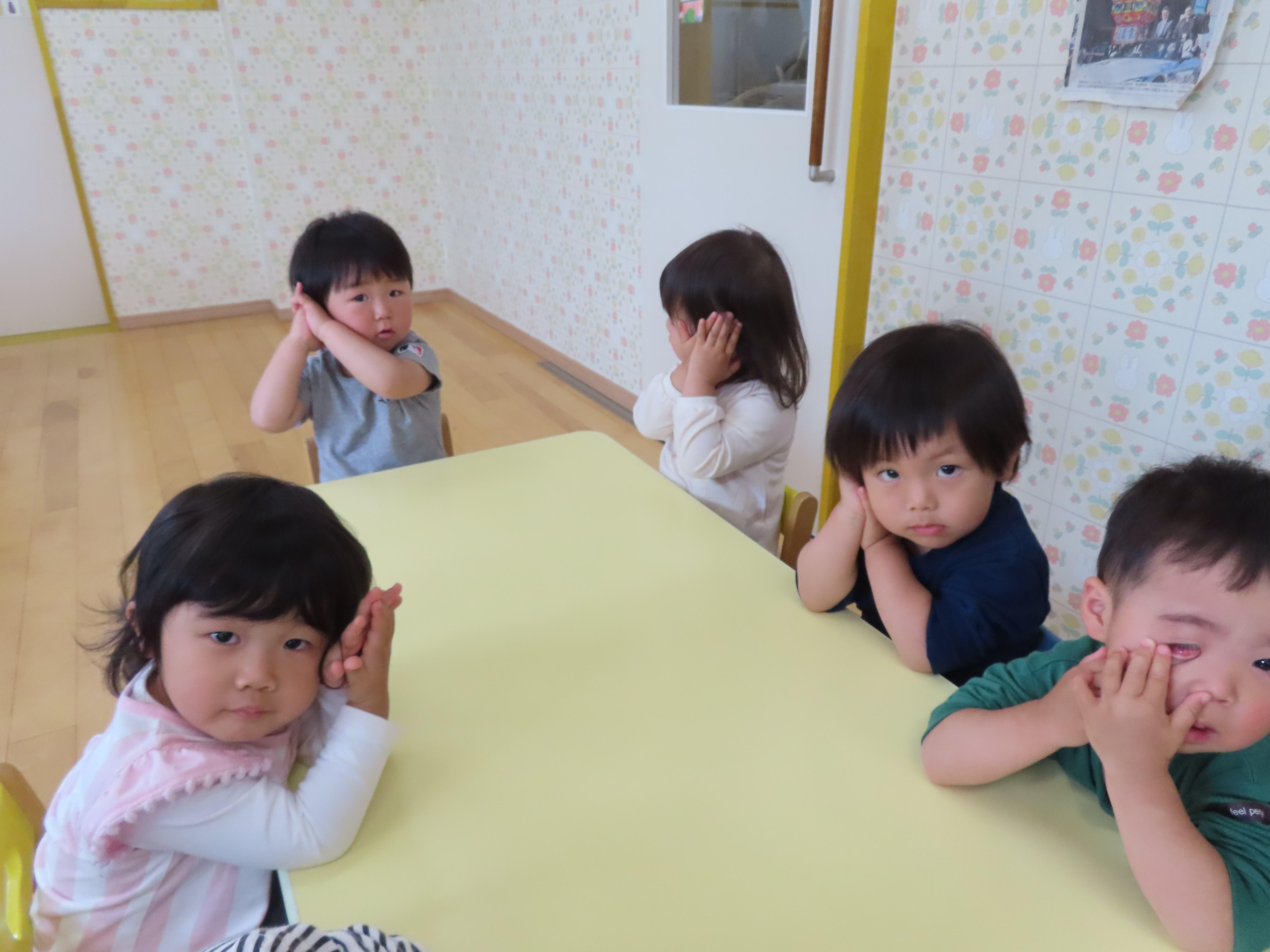 「ね〜むれ〜、ね〜むれ〜」のピアノに合わせて…。