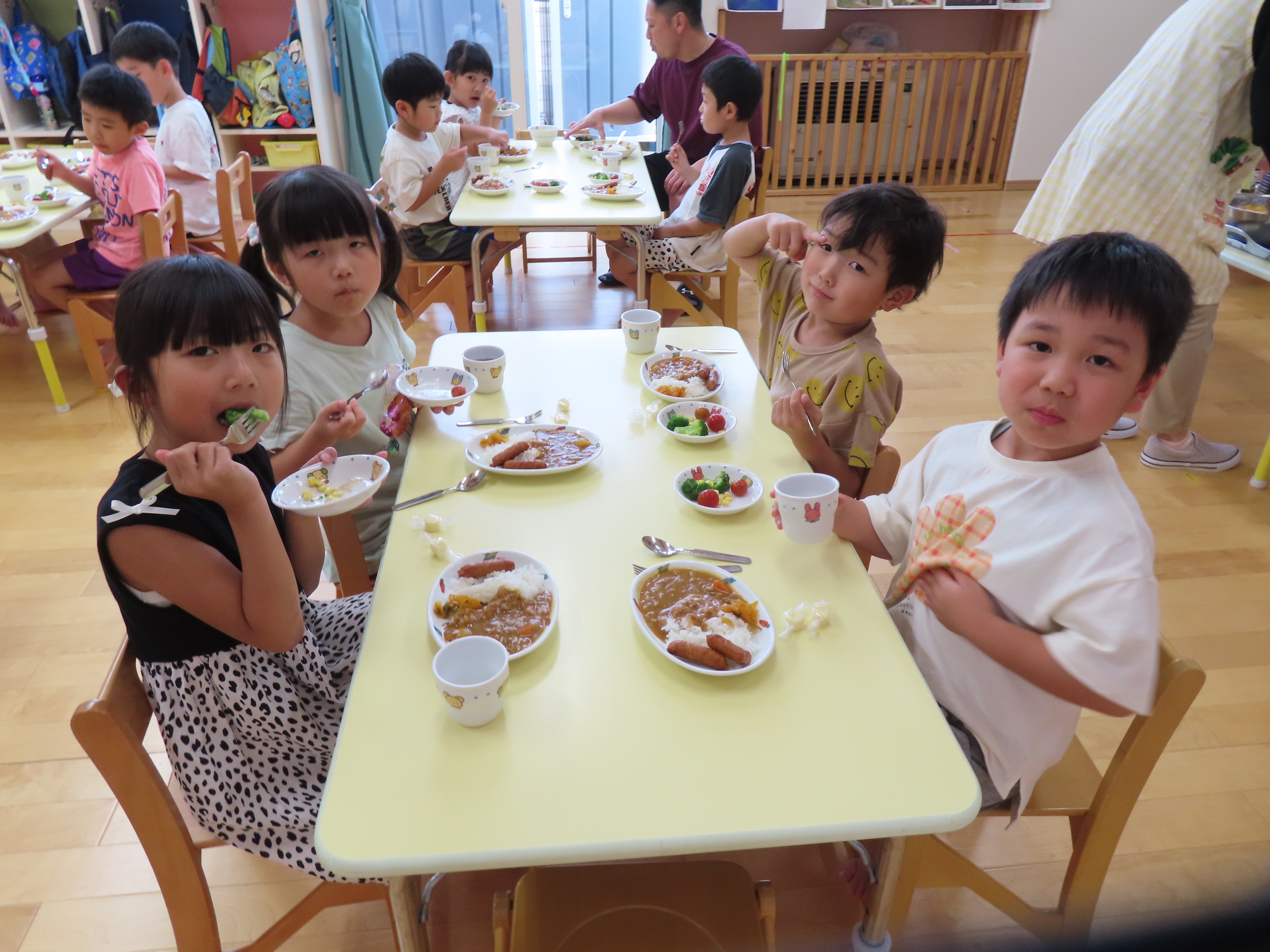 夕食のカレー。2回3回おかわりした子もいたよ!