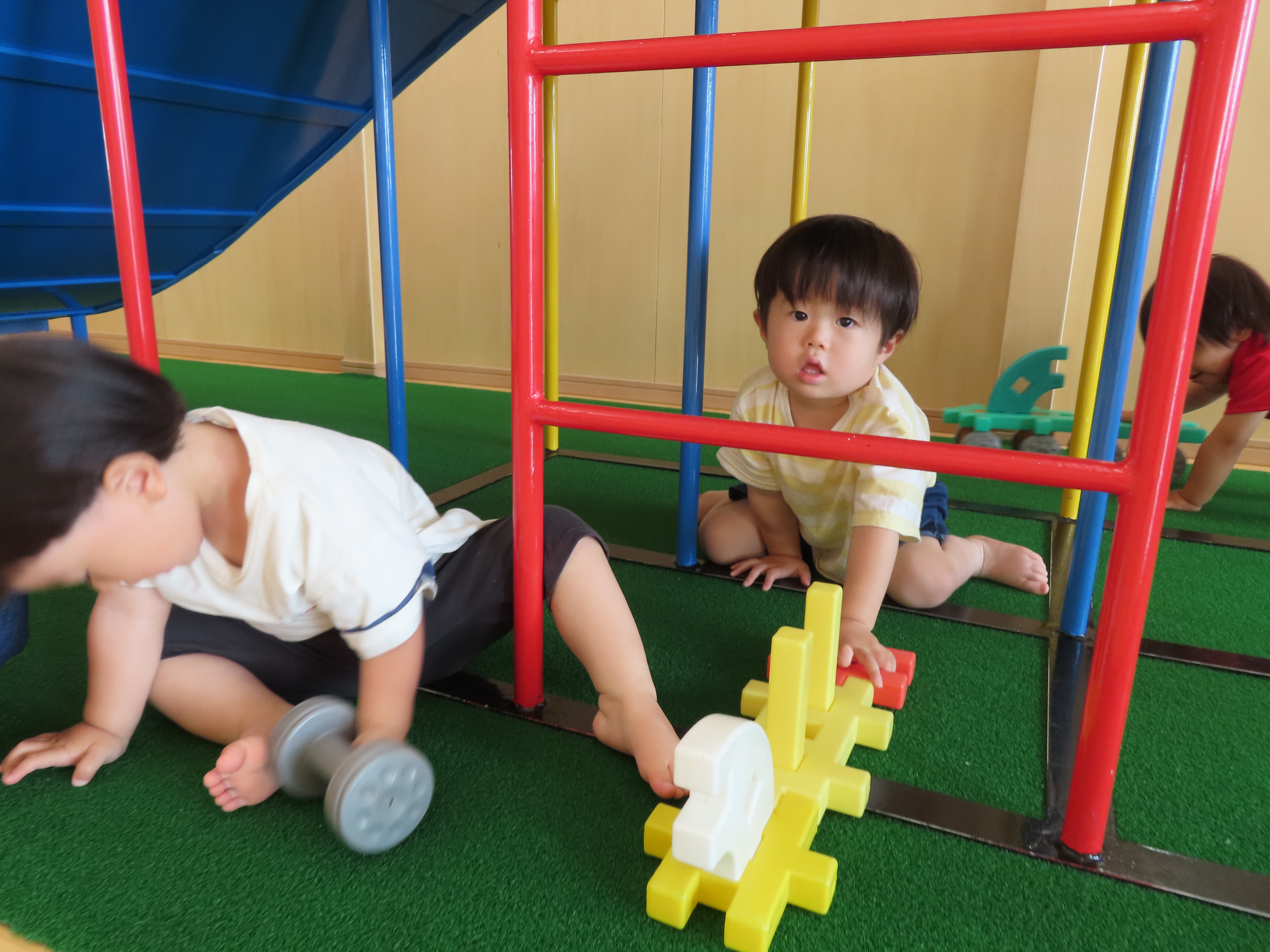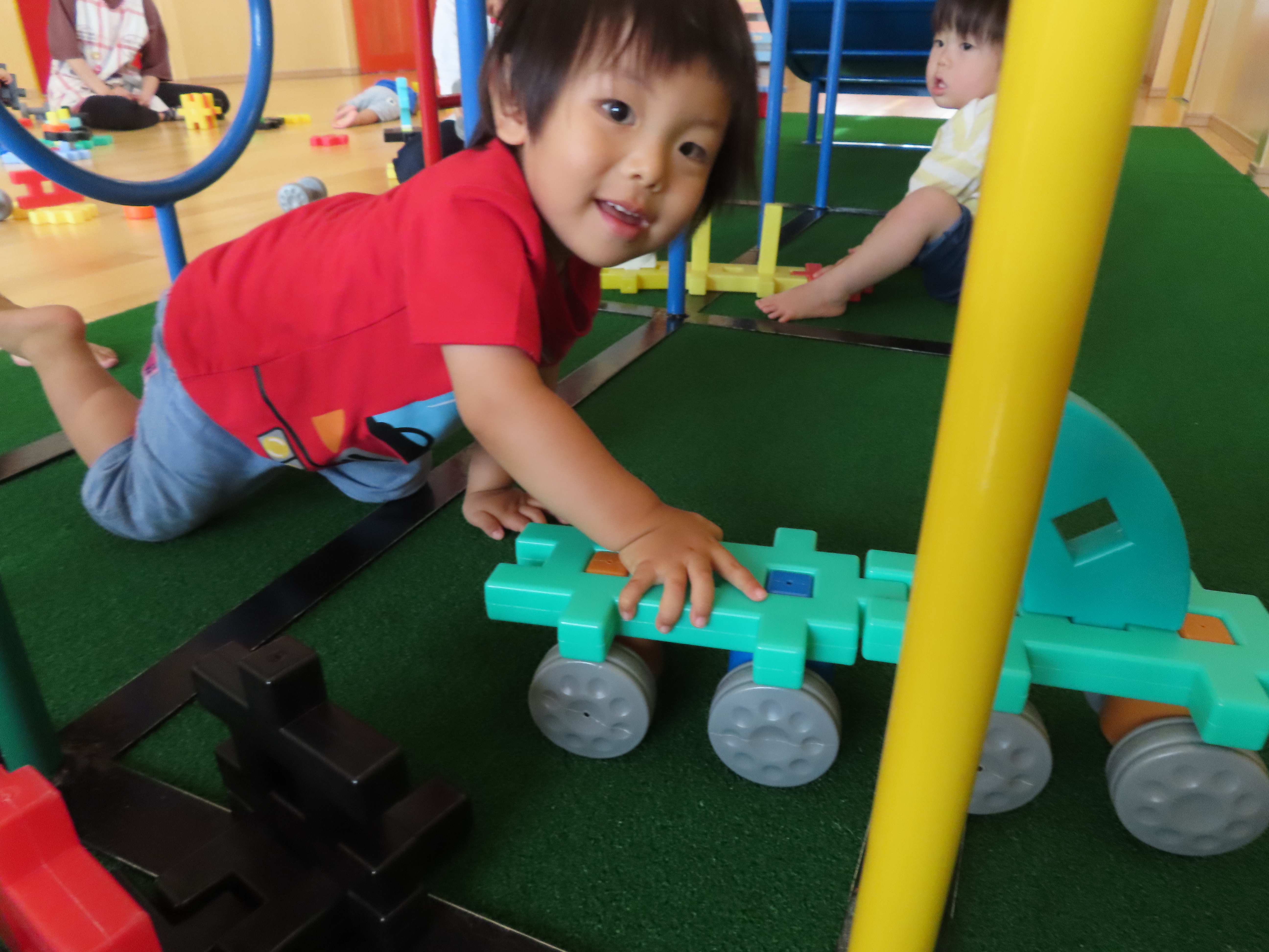 滑り台の下を車が通ります!