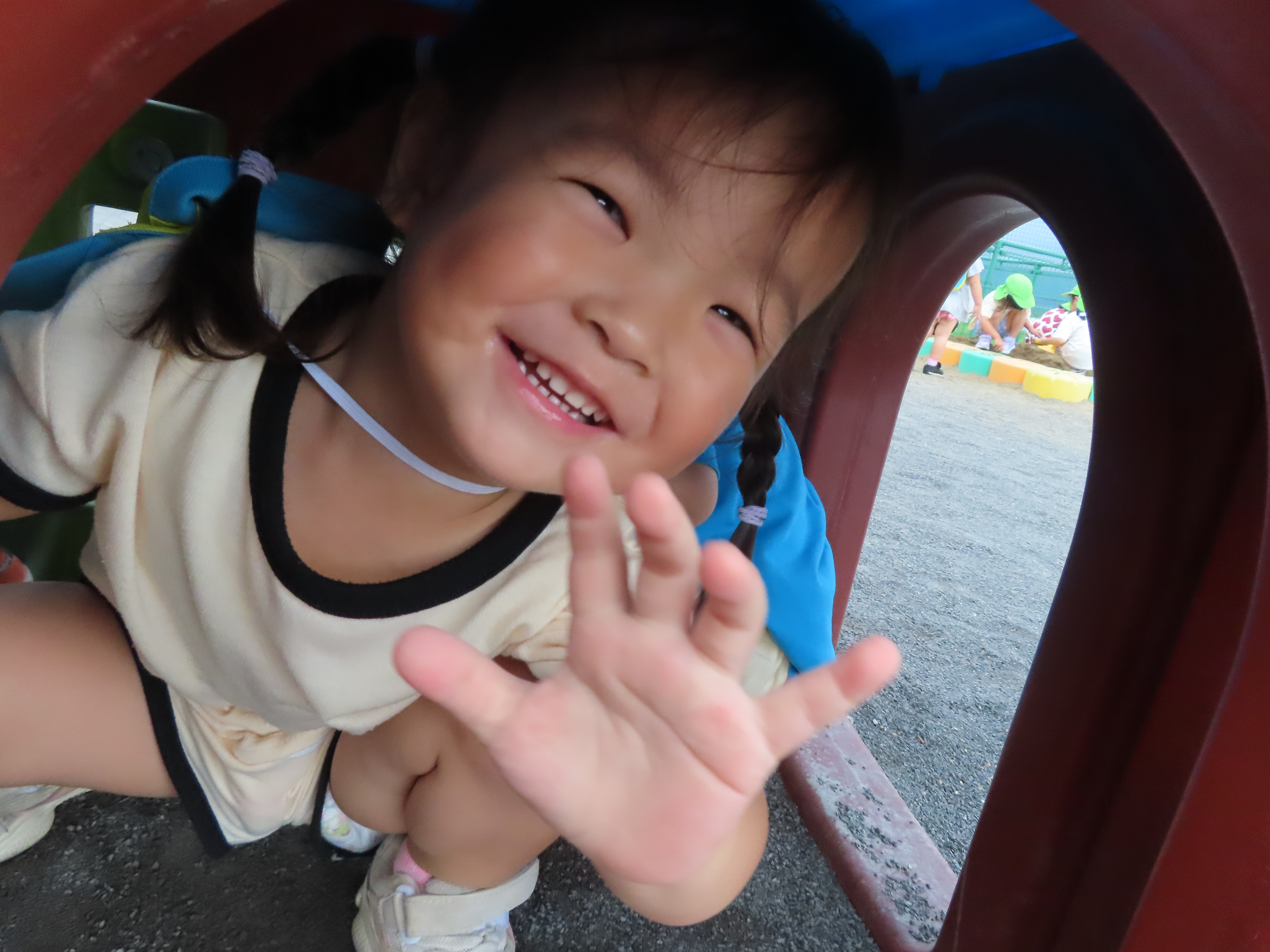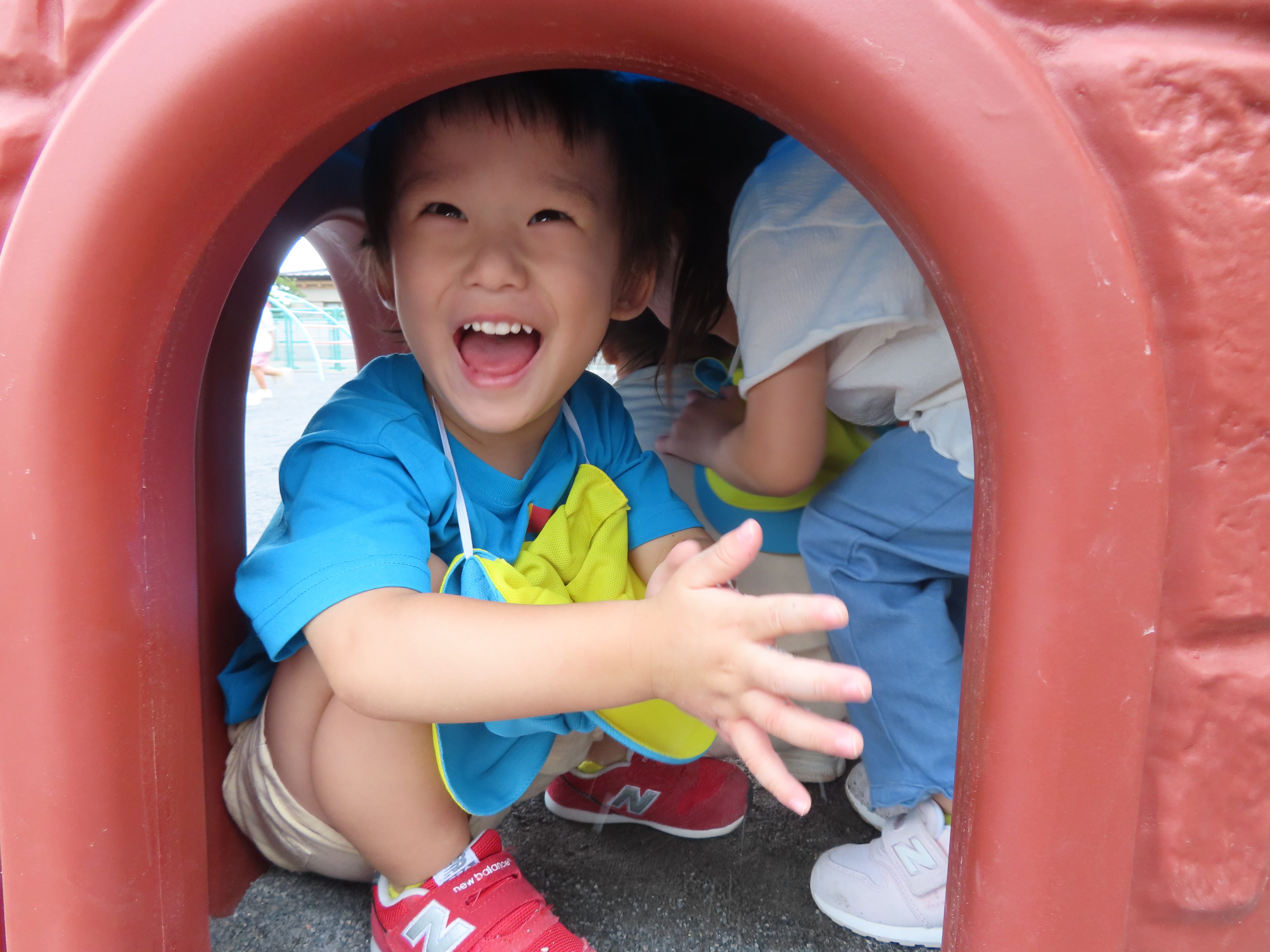 お外遊び。「こんにちは〜!」