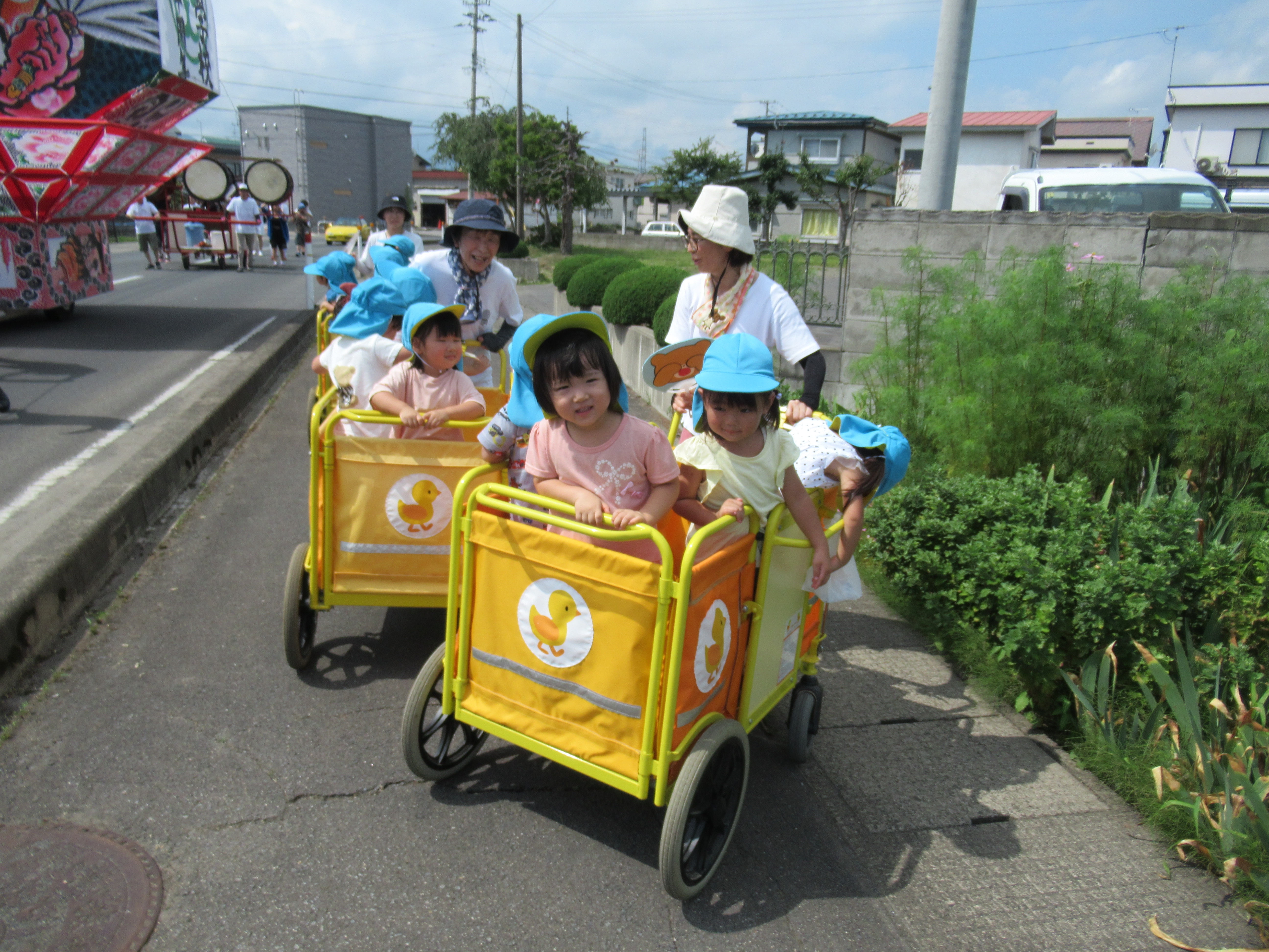 もも組はカートに乗って参加!