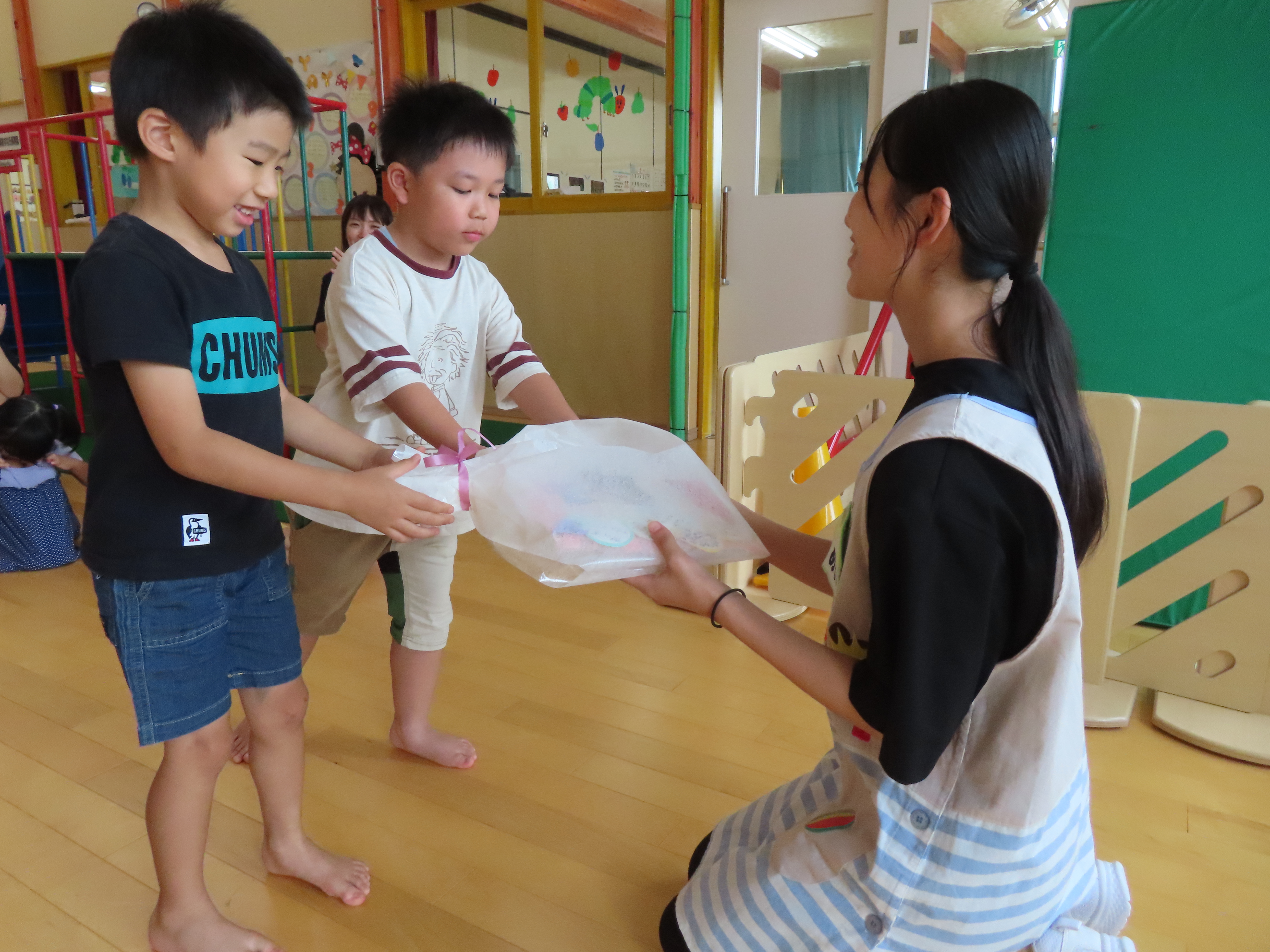 もも組とりんご組から「ありがとう」のプレゼント。