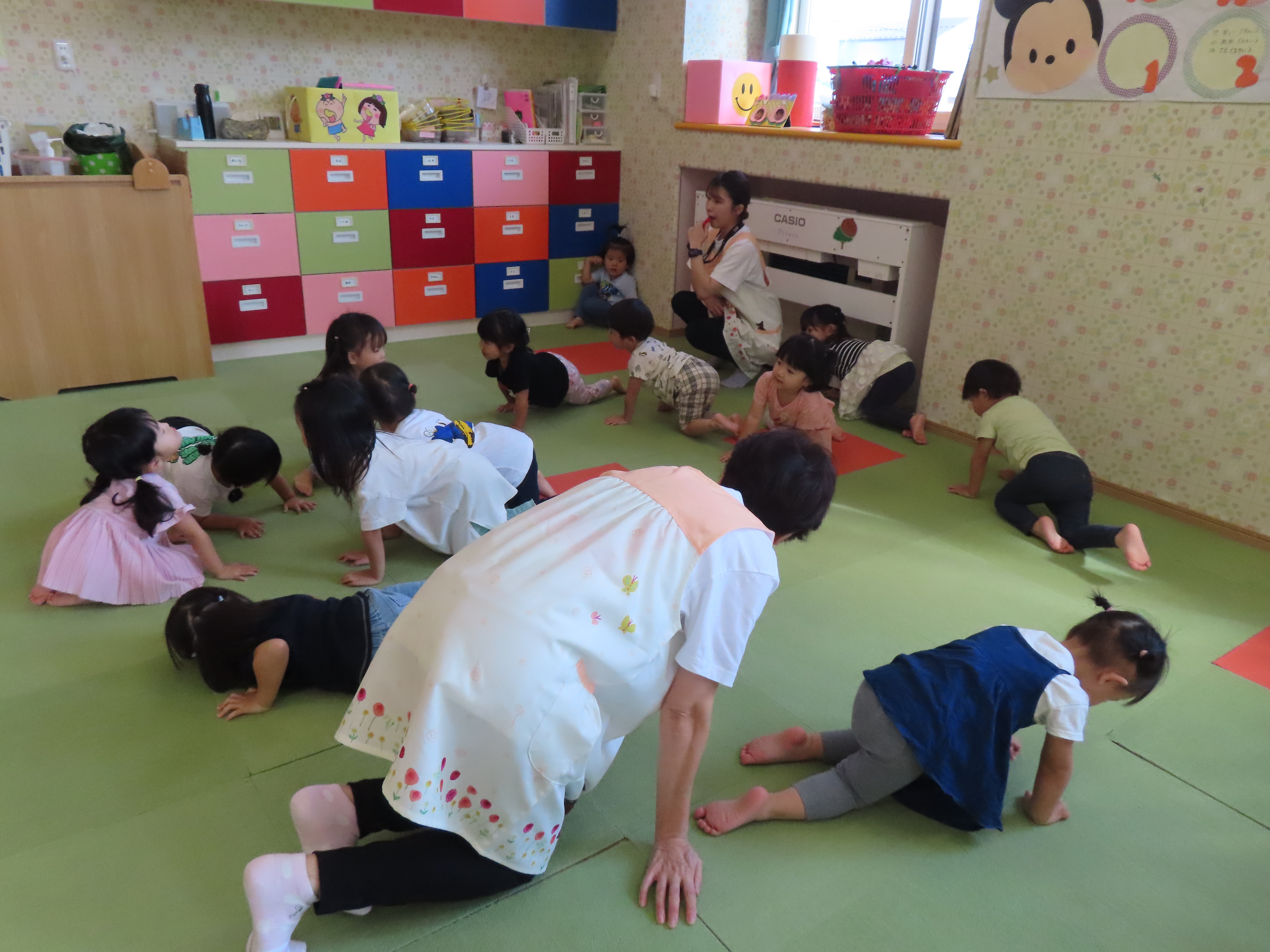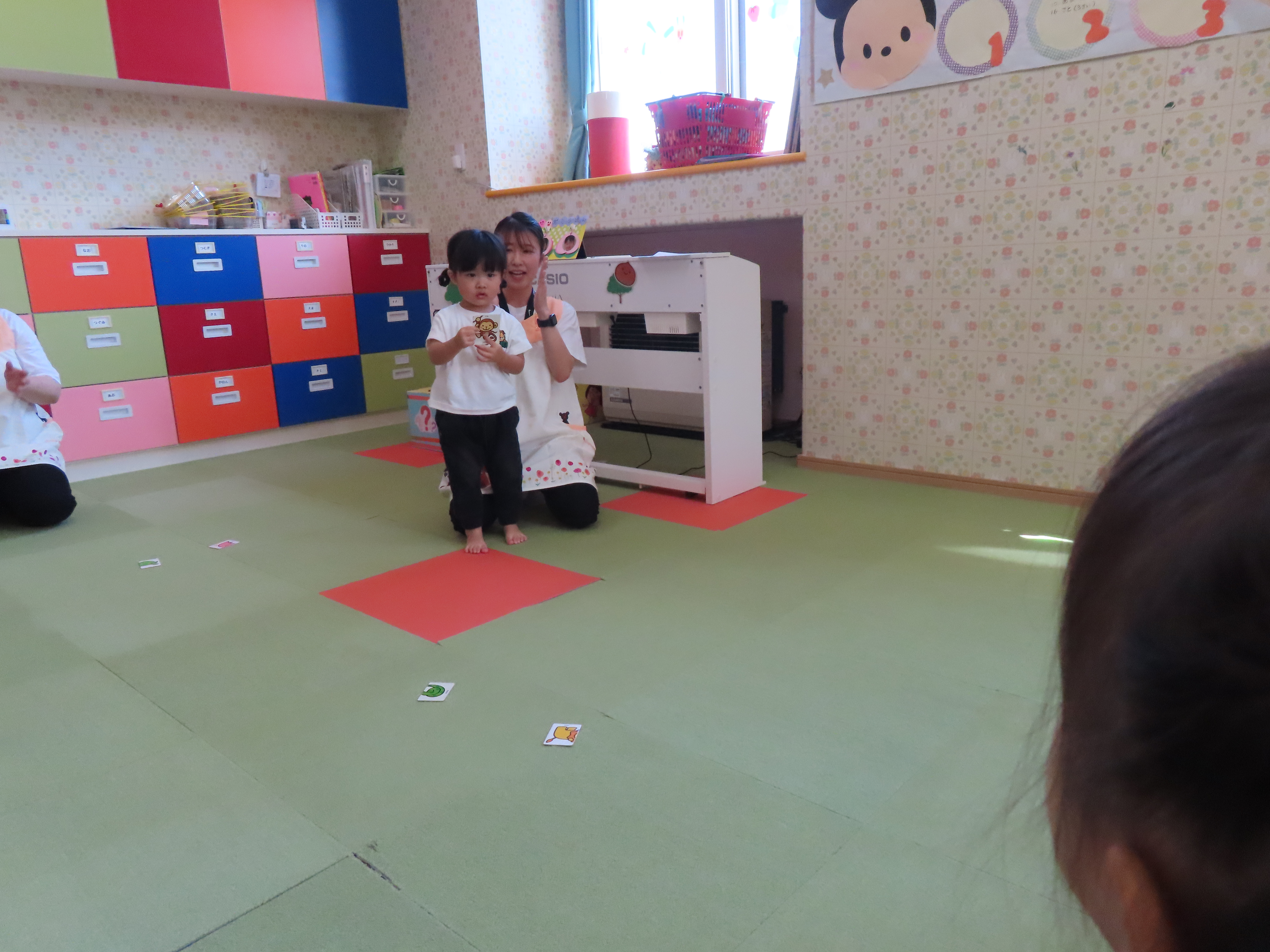 名前を呼ばれたら元気に返事。ハイタッチ!
