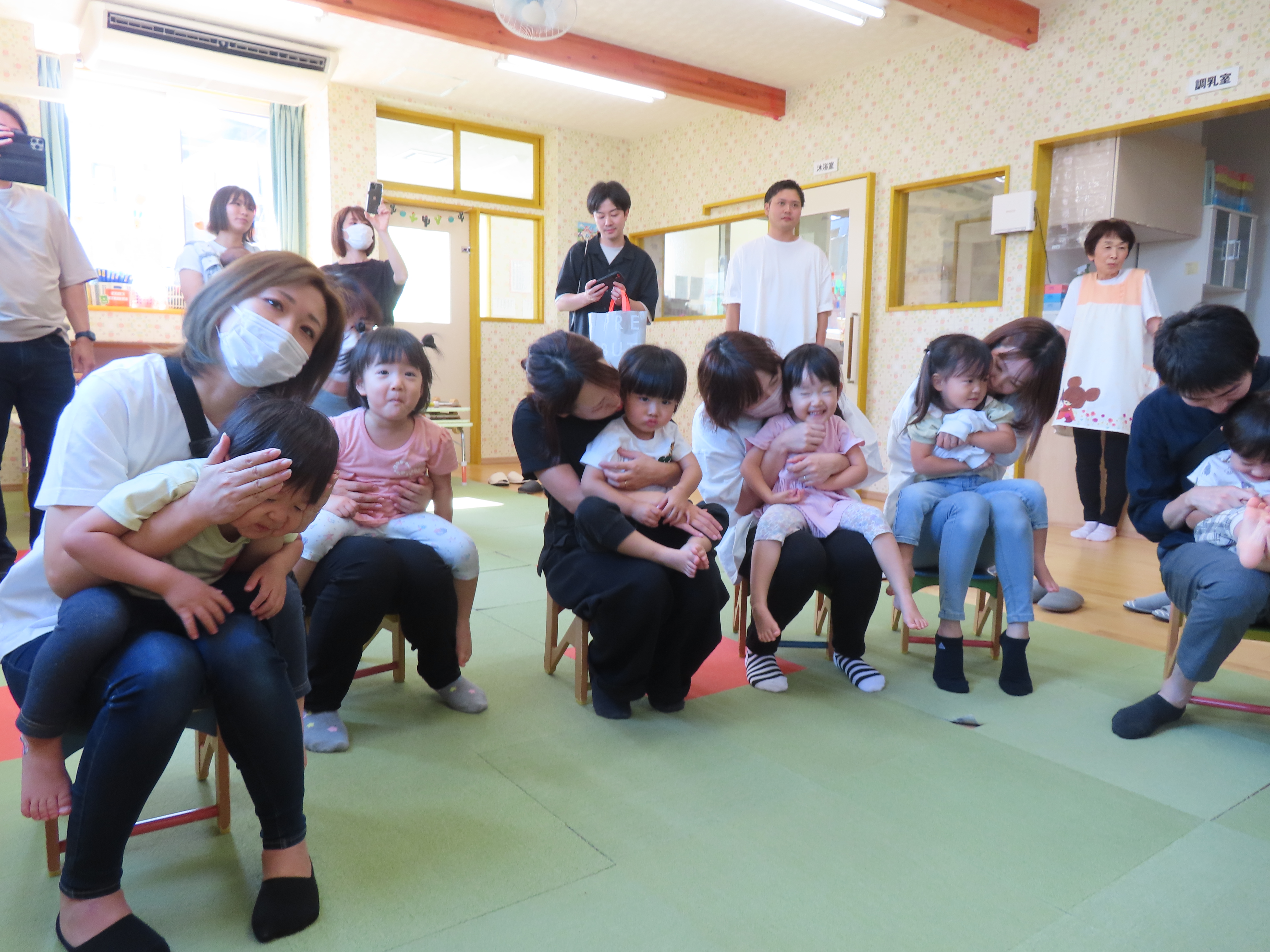 お家の人に抱っこしてもらって絵本を見たよ!