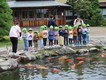 池の鯉にエサをあげたよ!