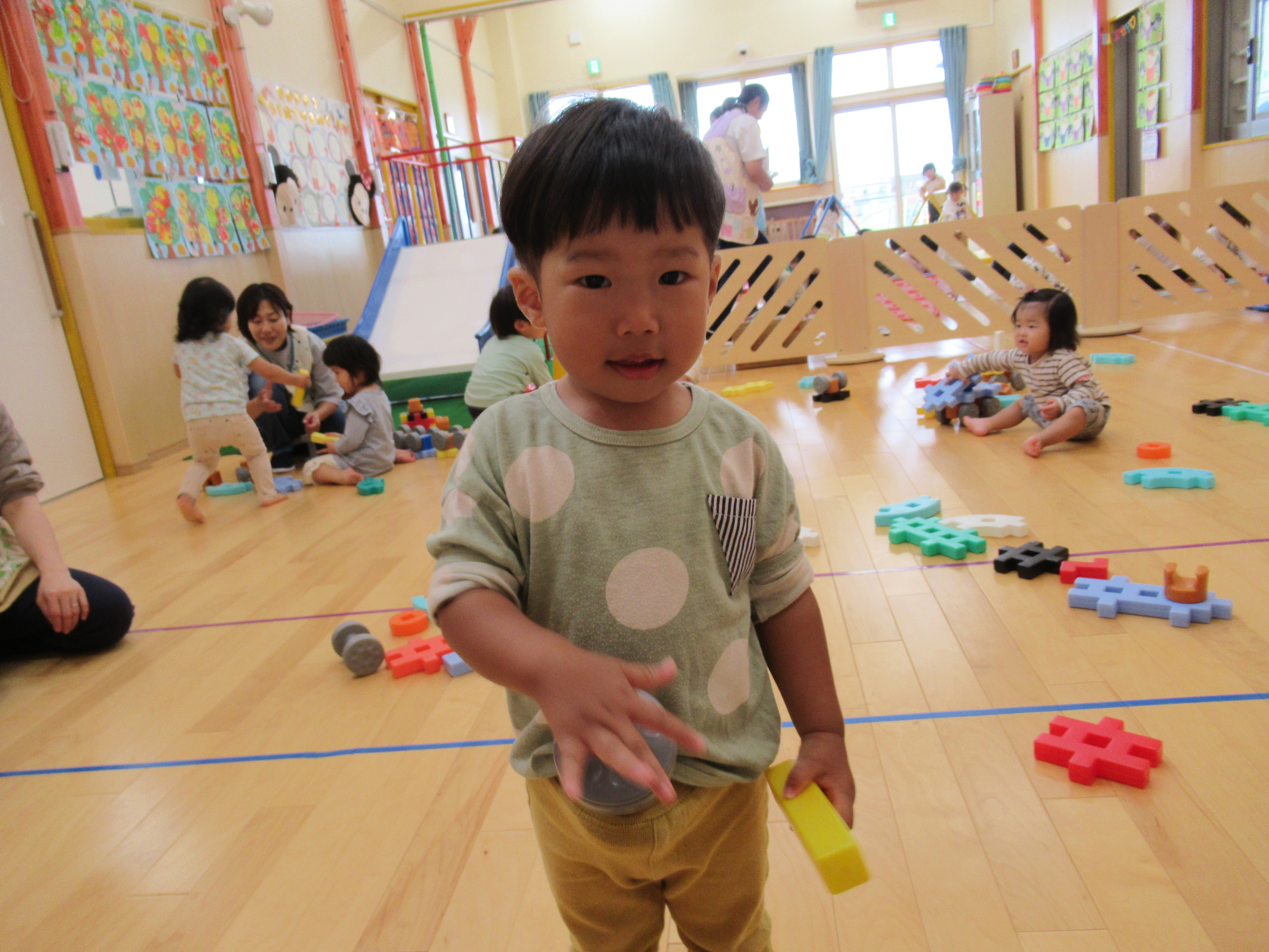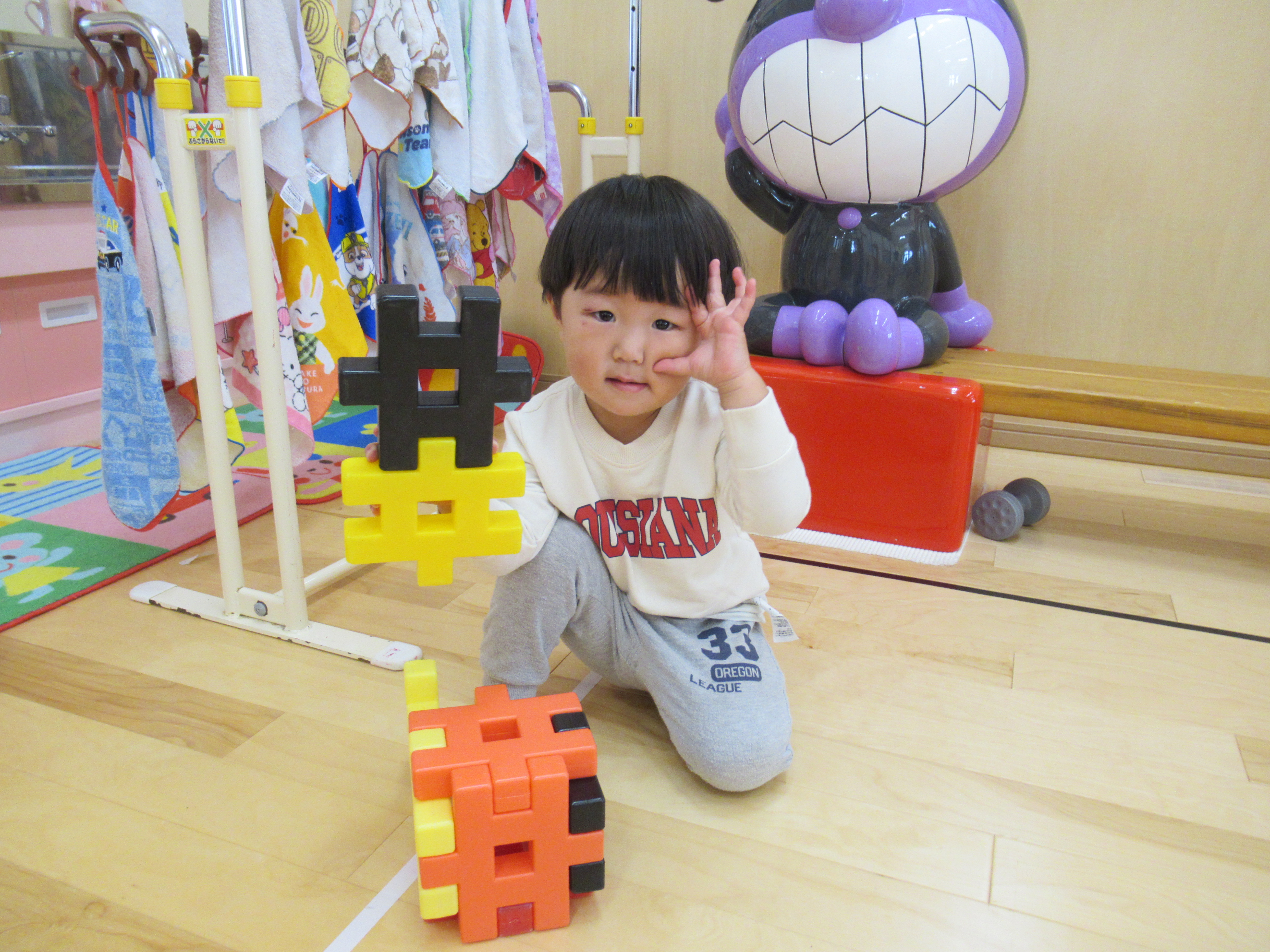 みかん組、大型ブロック遊び。