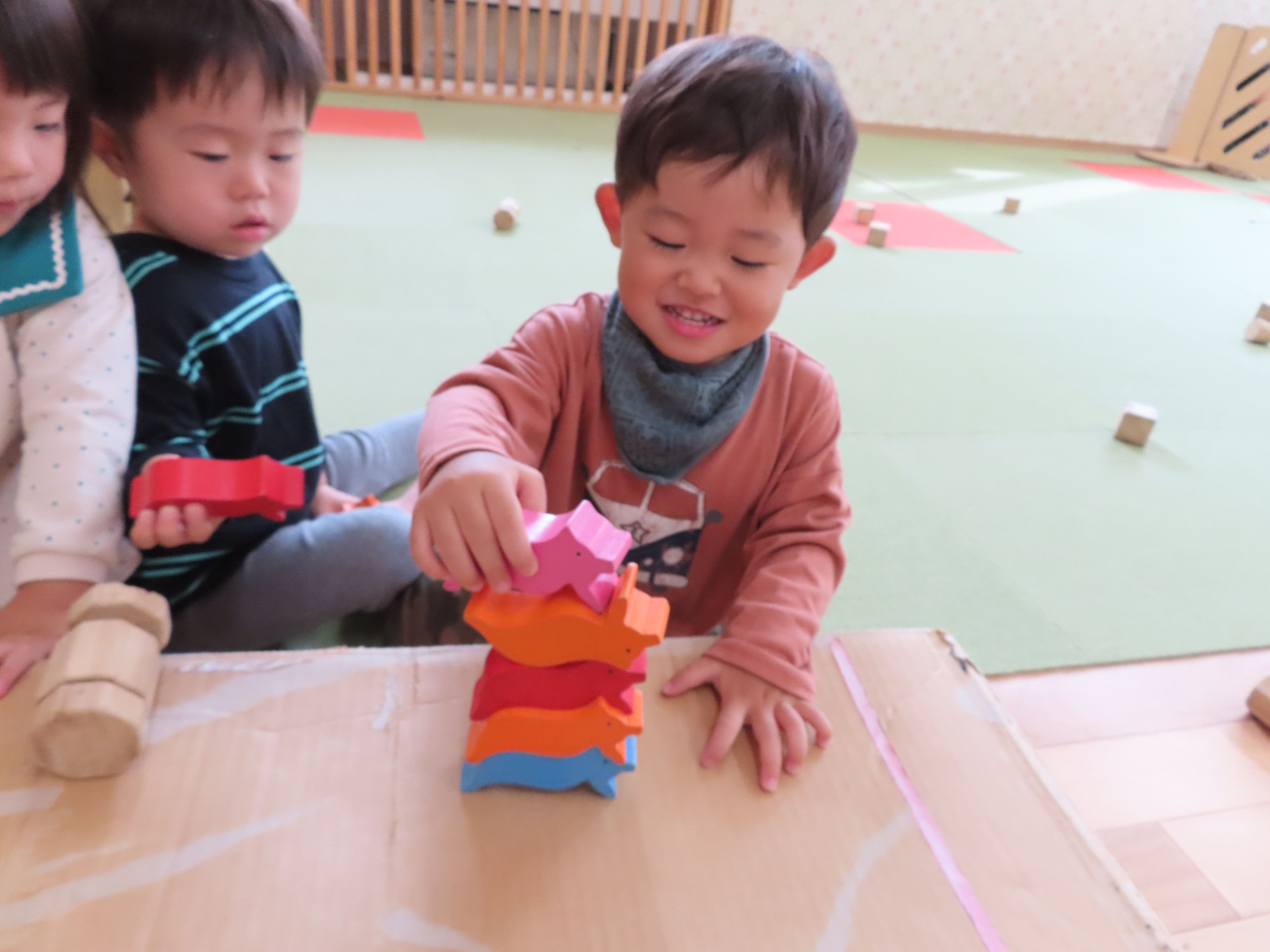 積み木遊び。倒れないように積めるかな