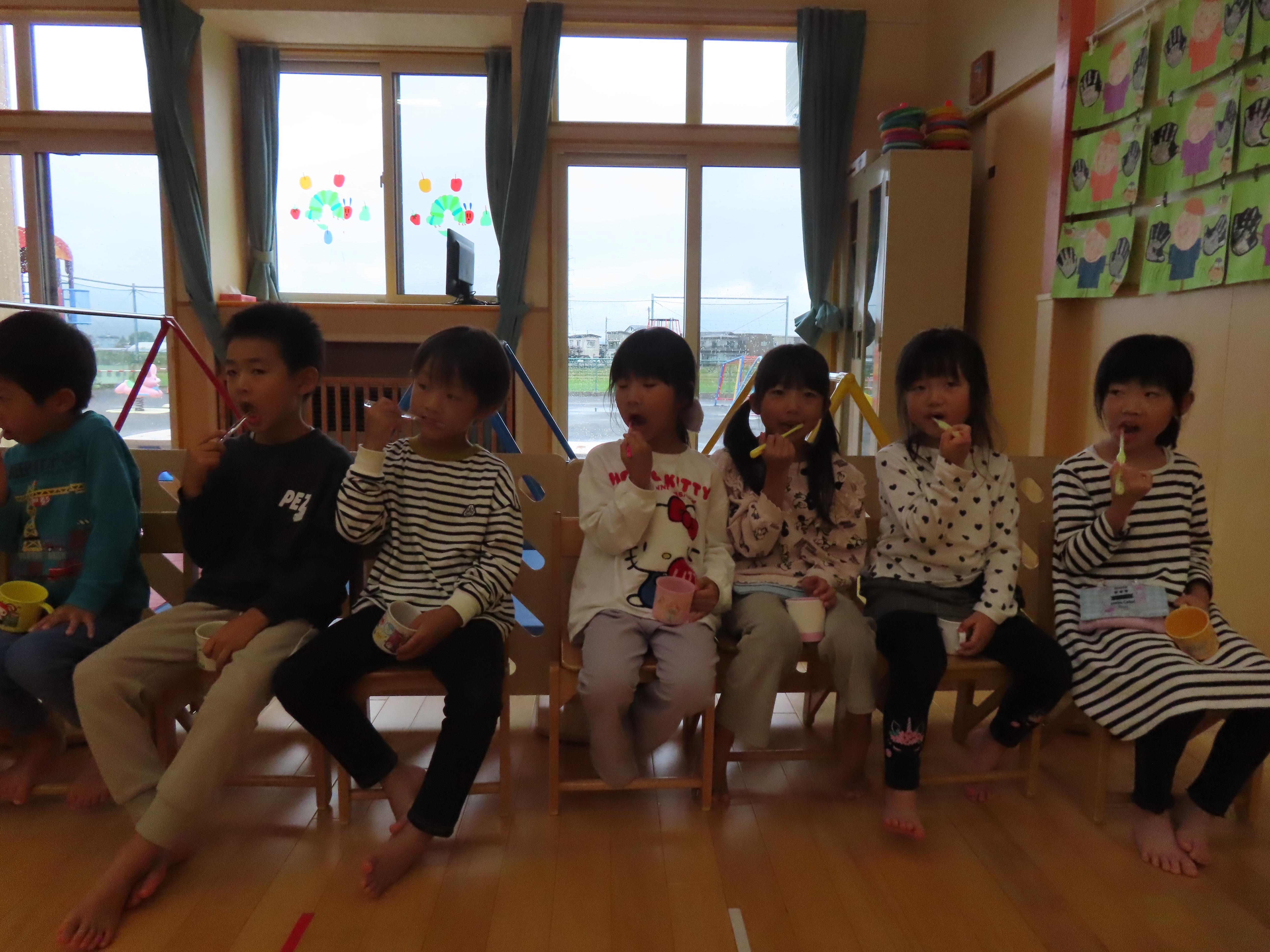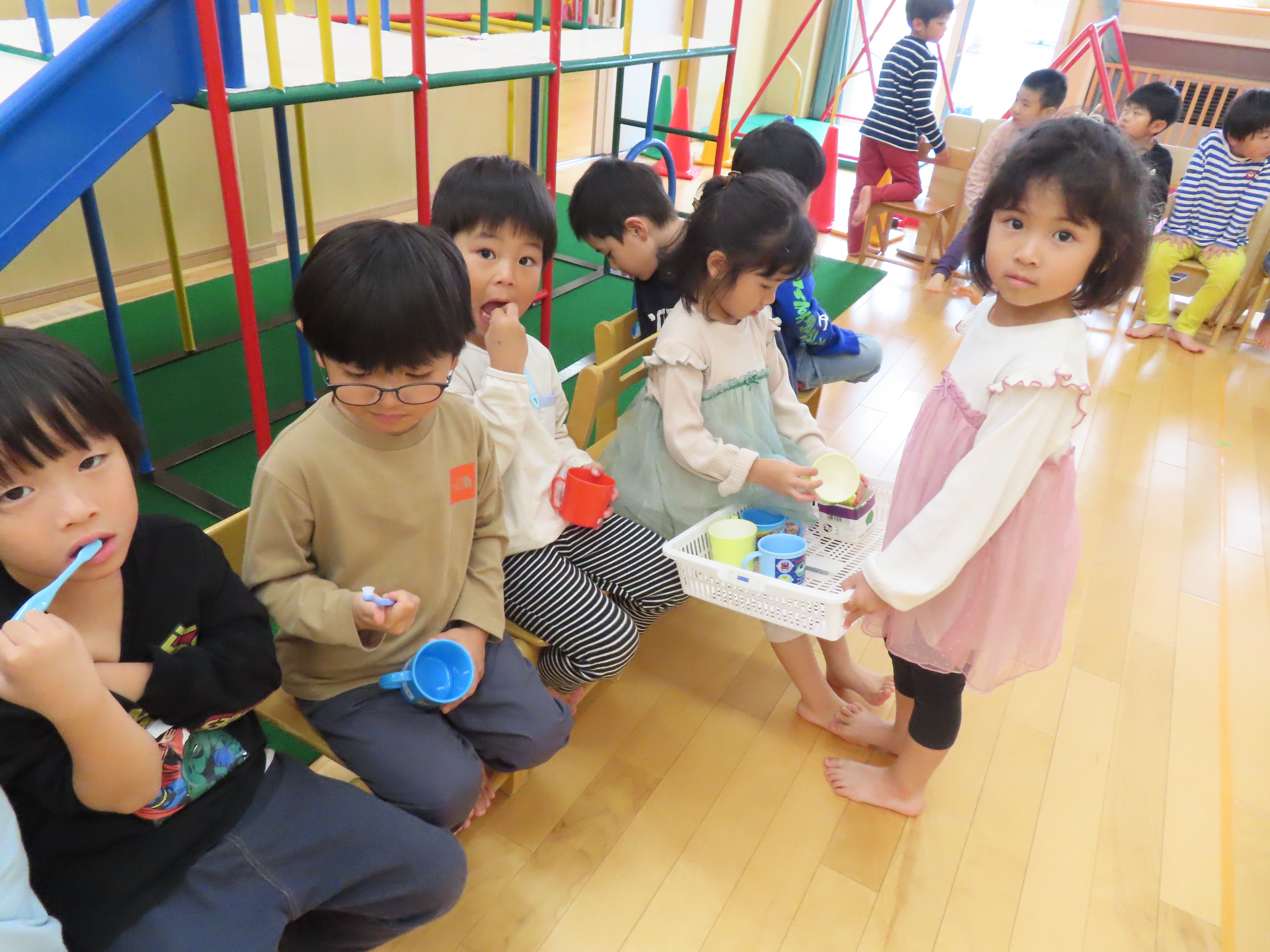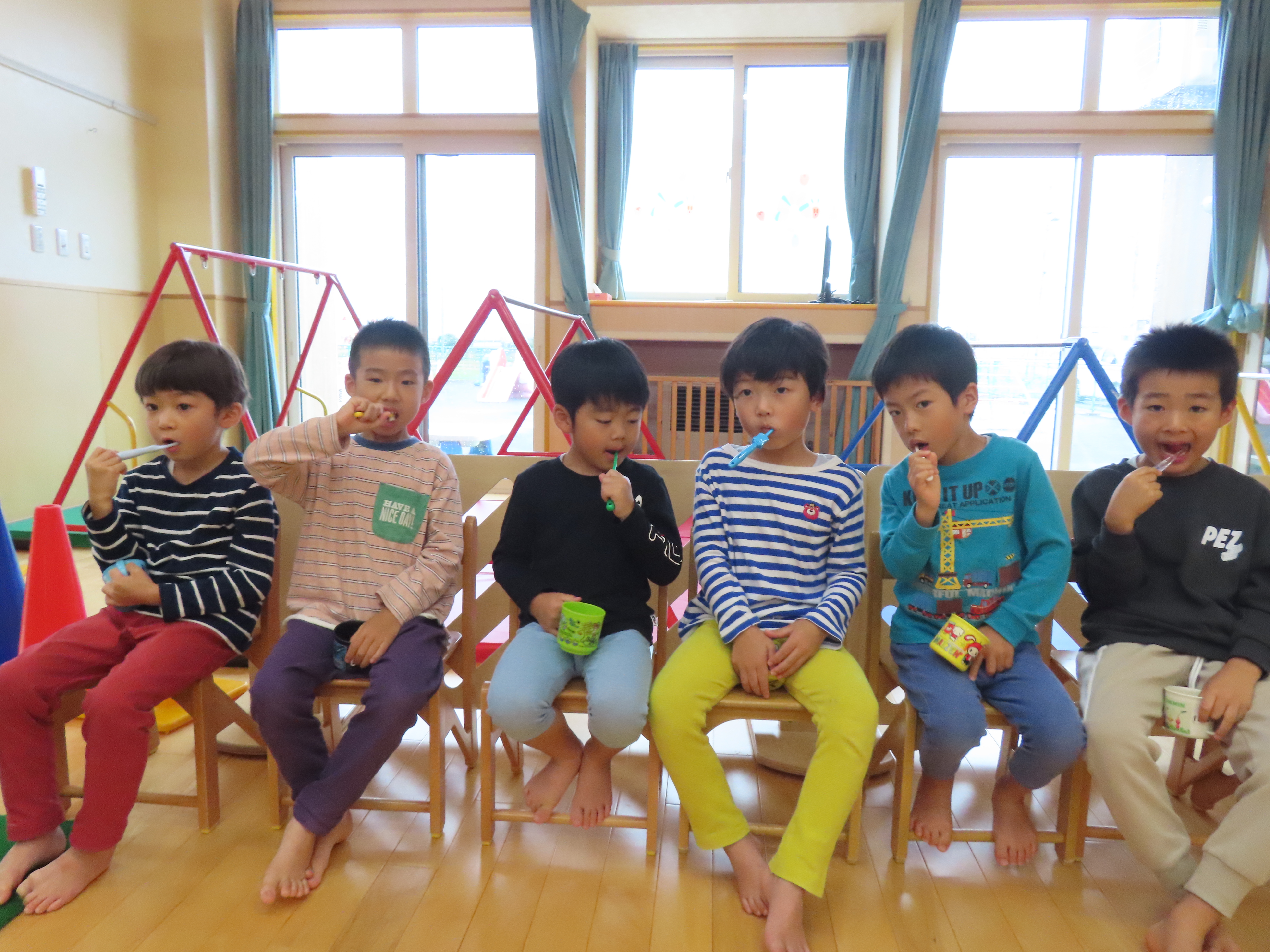 りんご組、食後の歯みがきの時間。