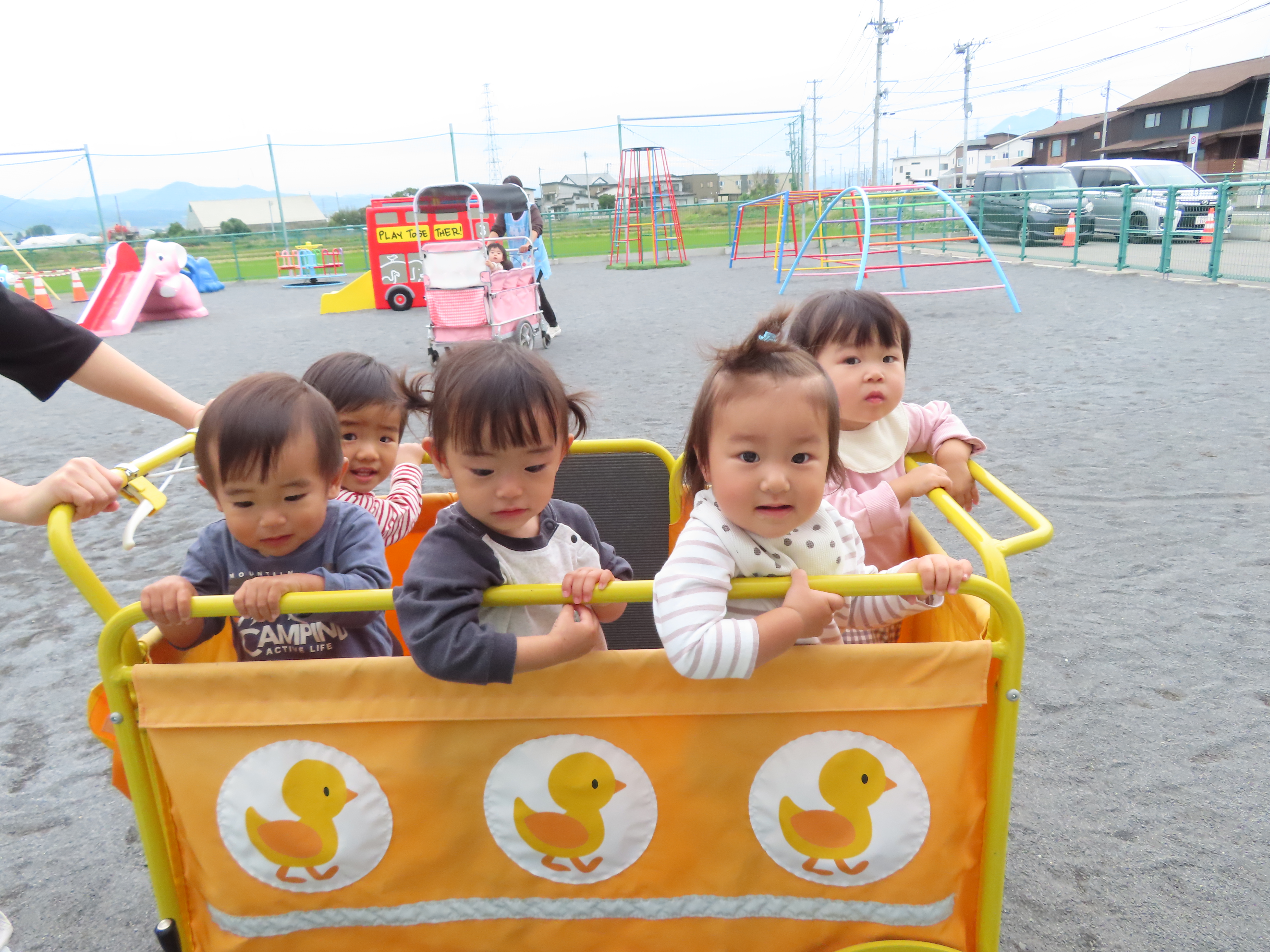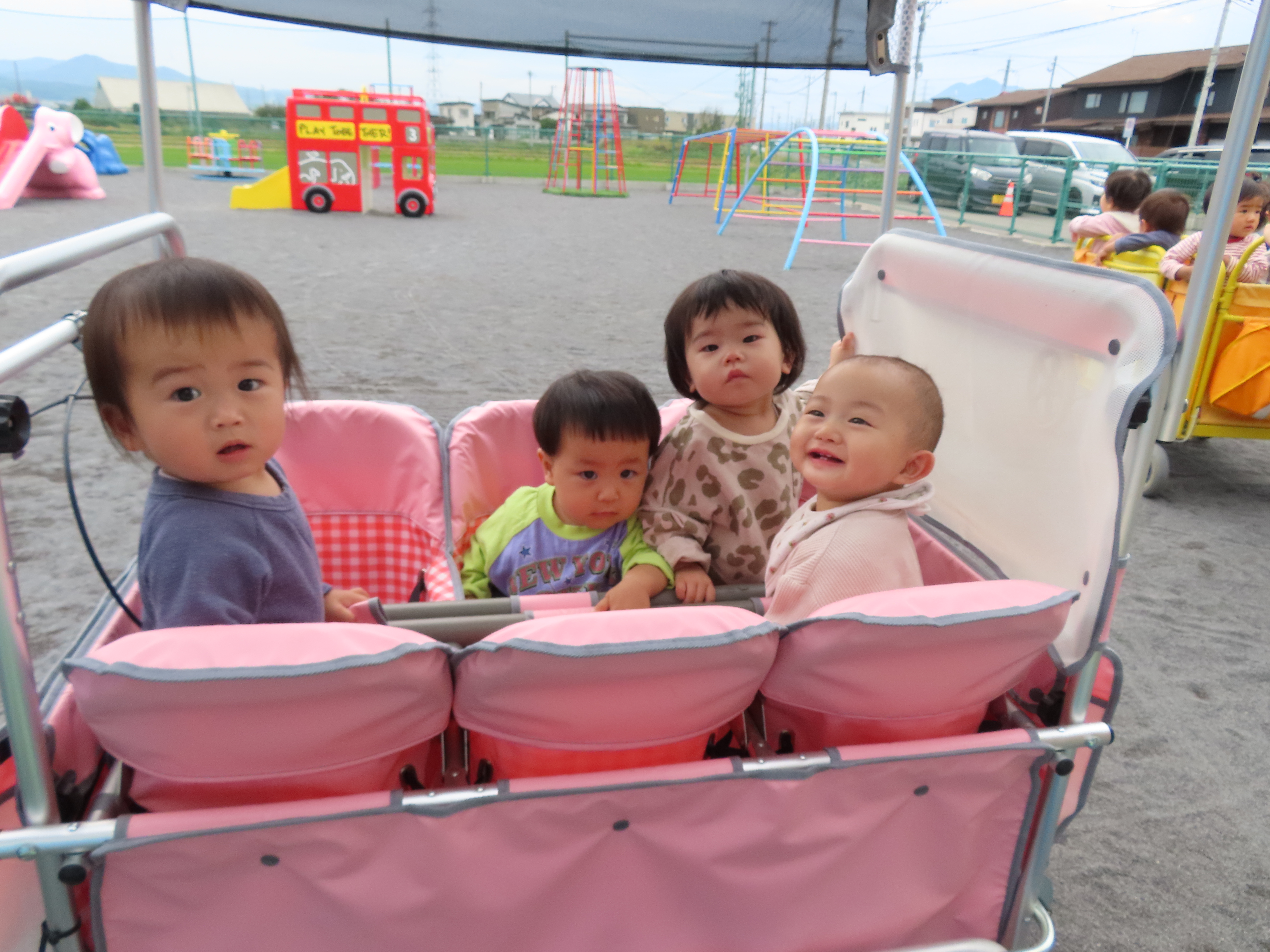 おやつを食べてから園庭をお散歩。