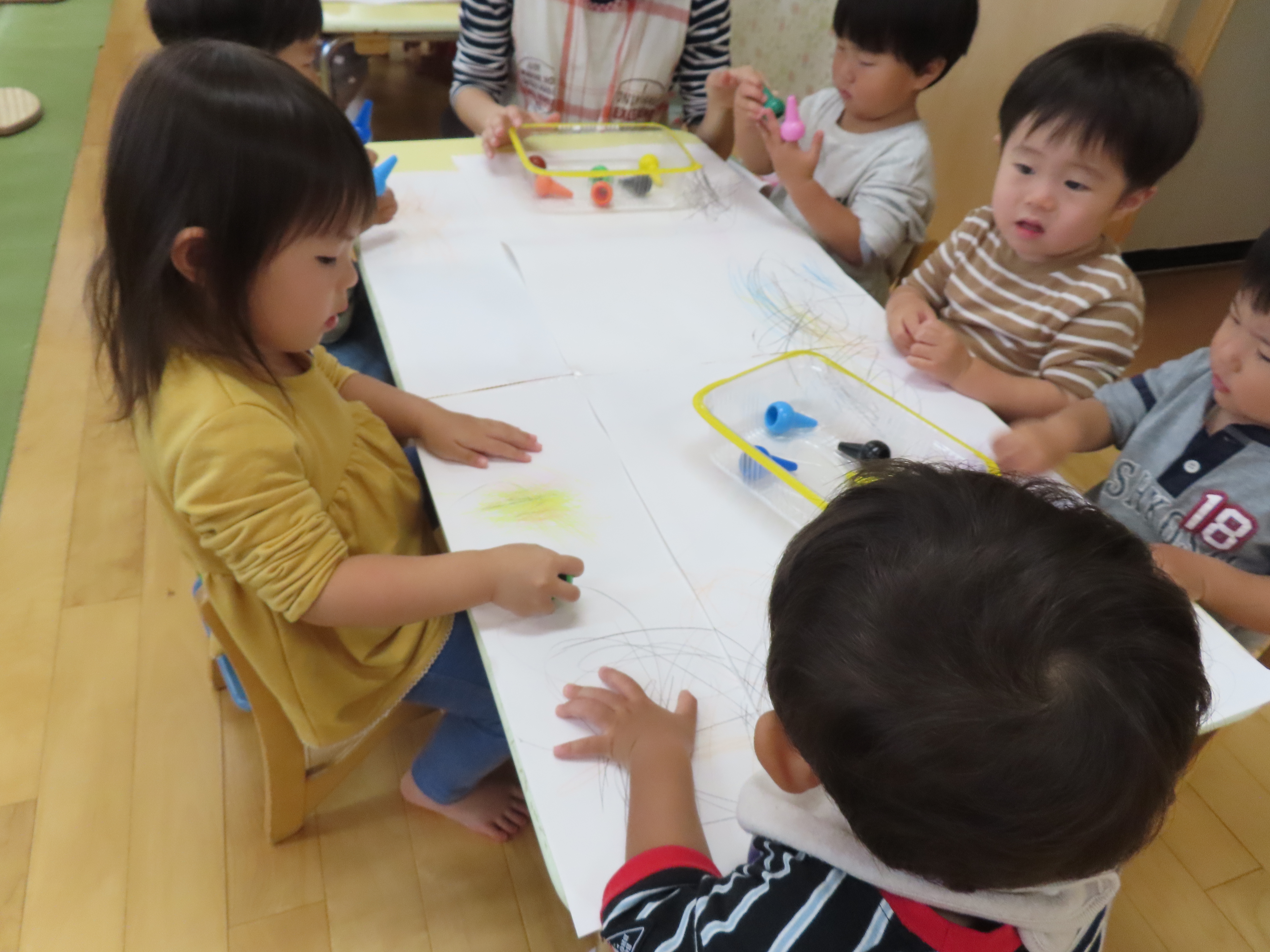 クレヨンでお絵描き中。