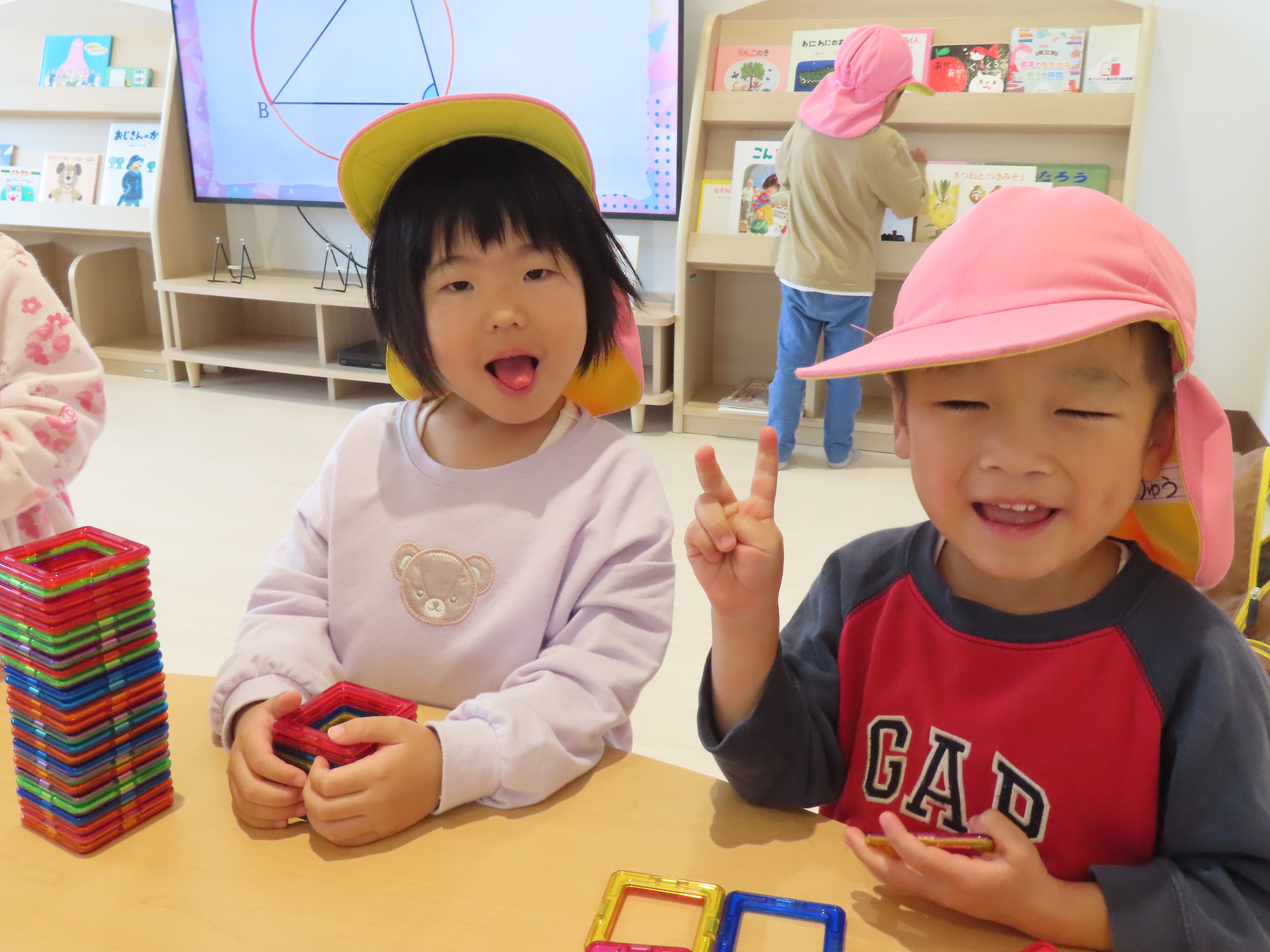 磁石でくっつけて色々な形を作ったよ〜!