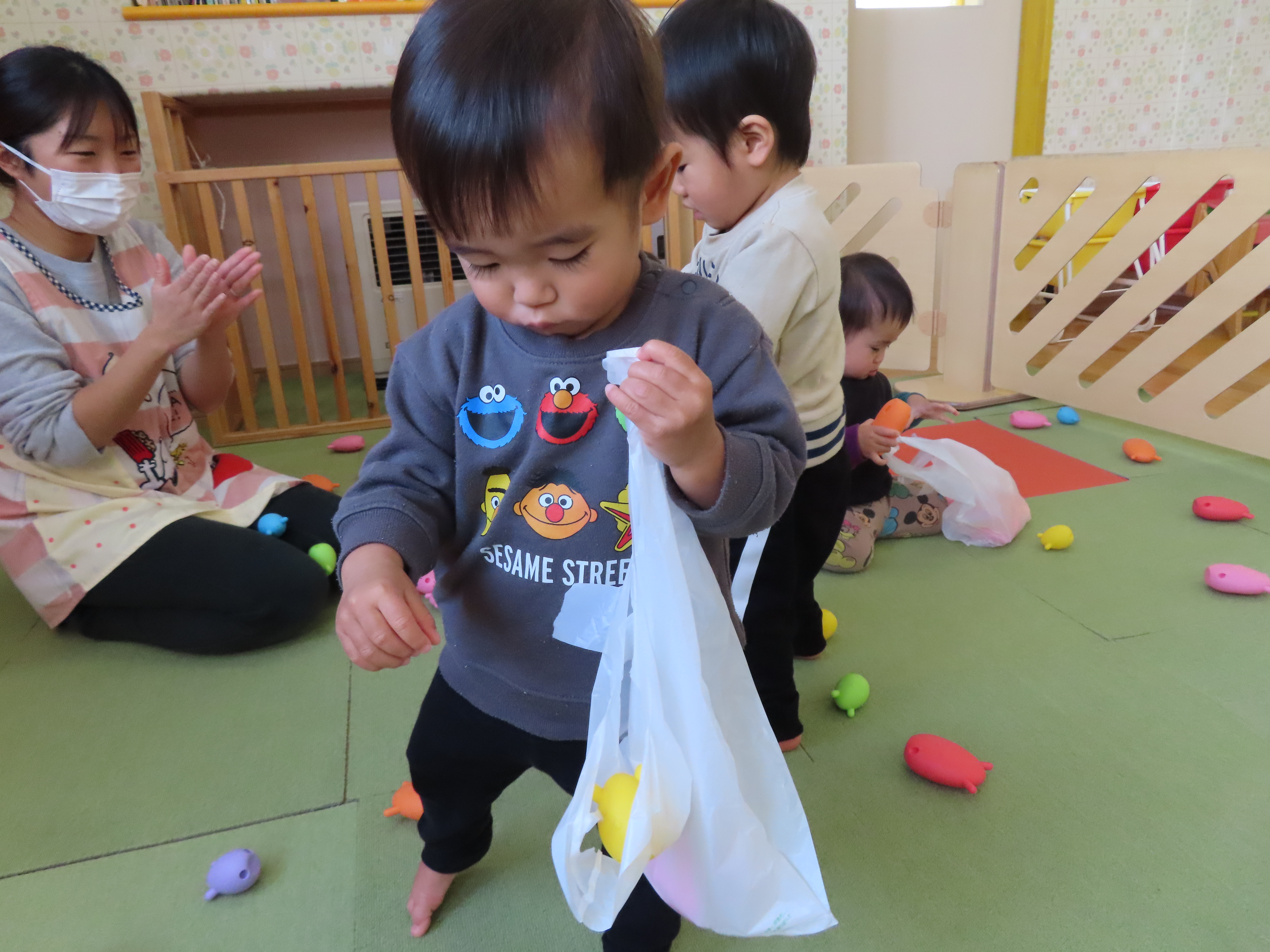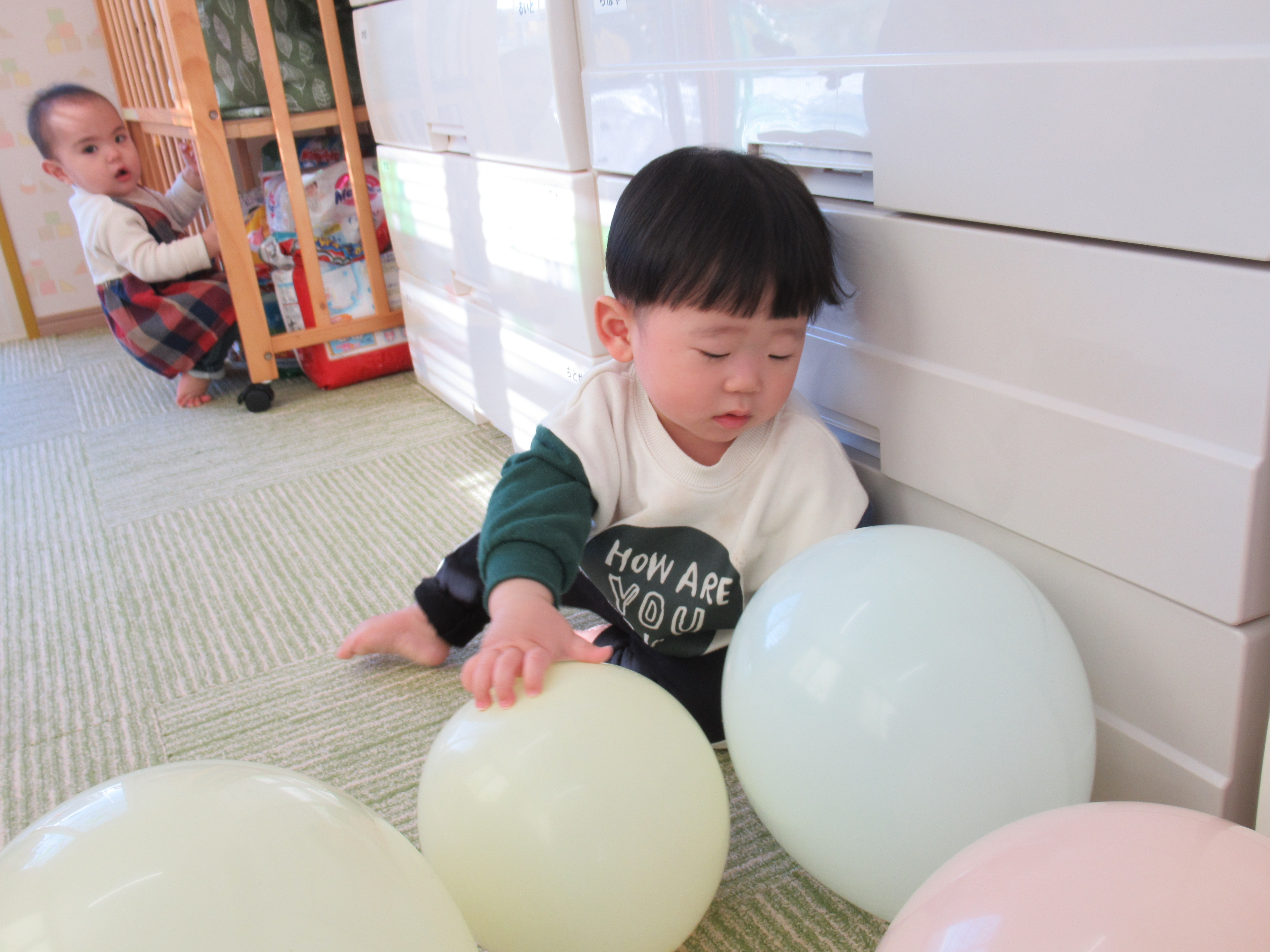 さくらんぼ組、風船遊び。