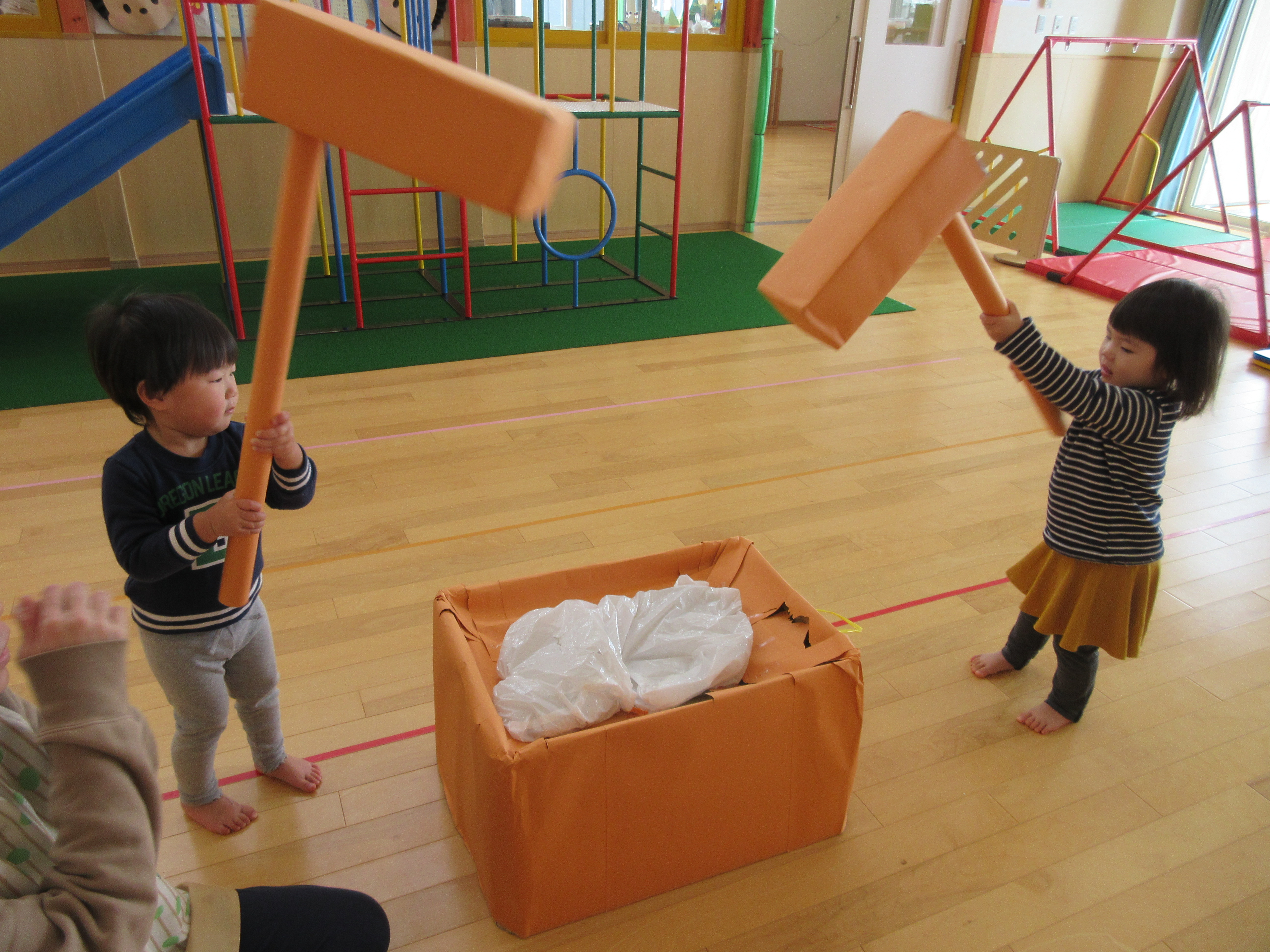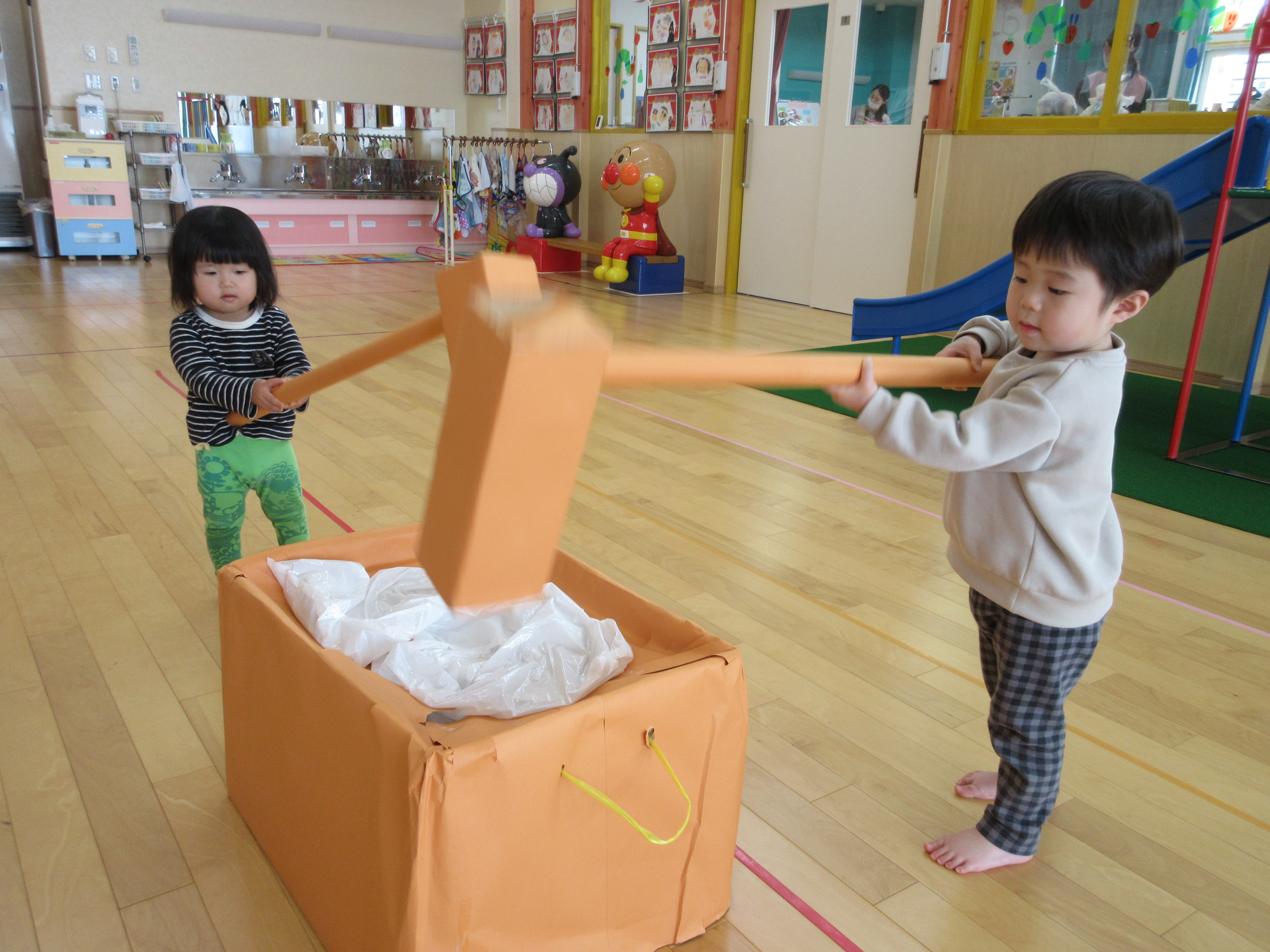 みかん組、もちつきごっこ。