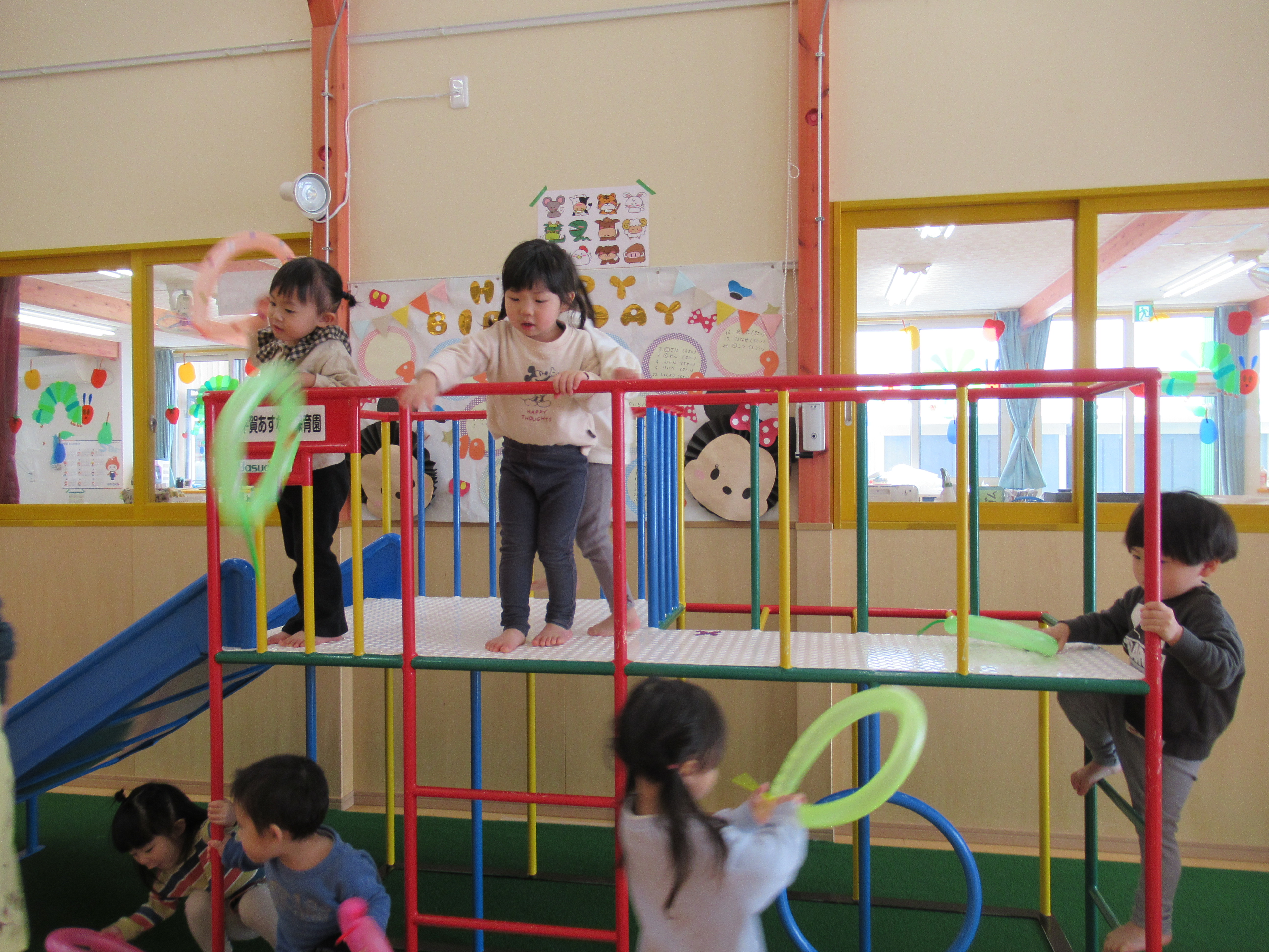 滑り台の上から投げてみよう!