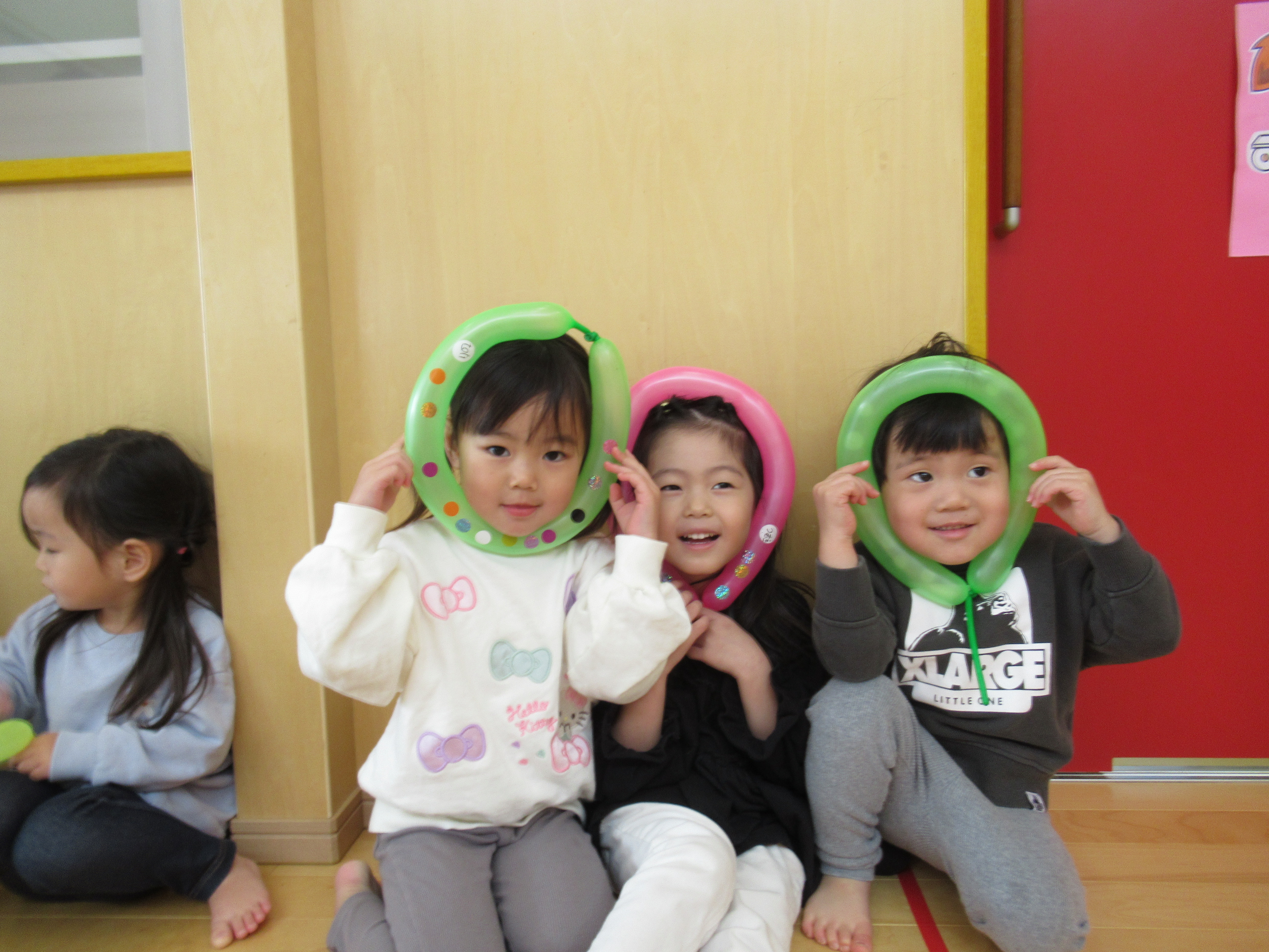 風船に自分でシールを貼ったよ!