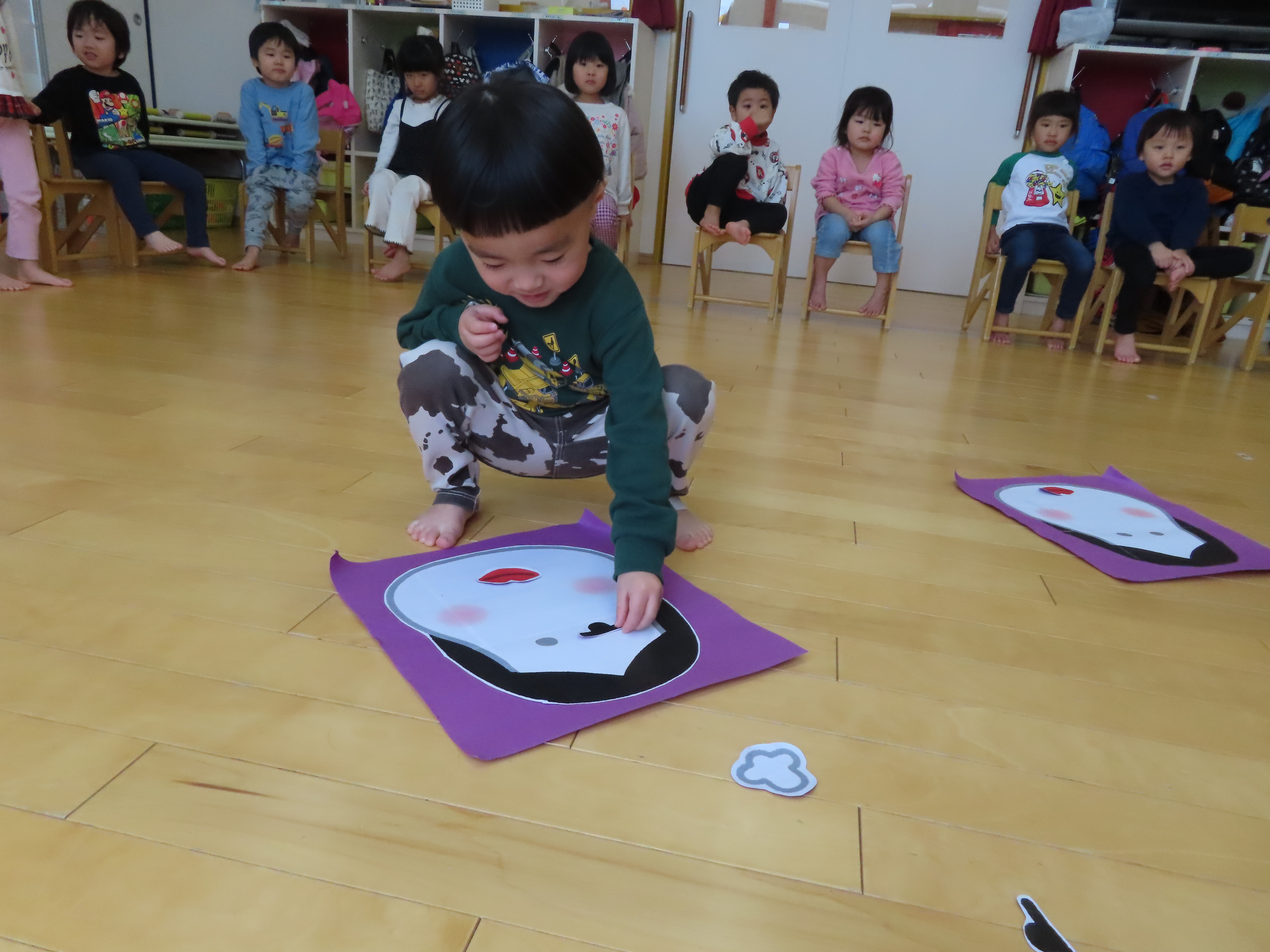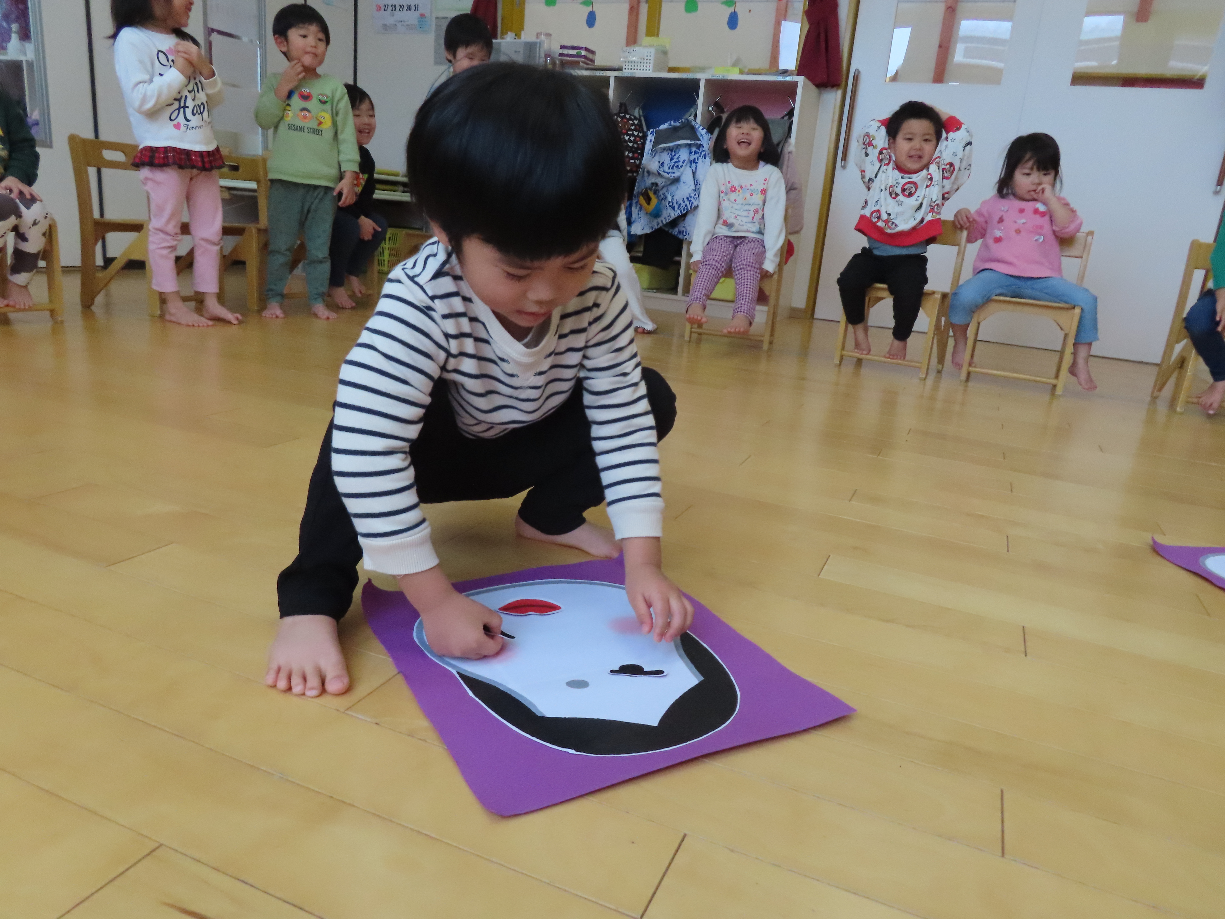 ばなな組は「福笑い」に挑戦!