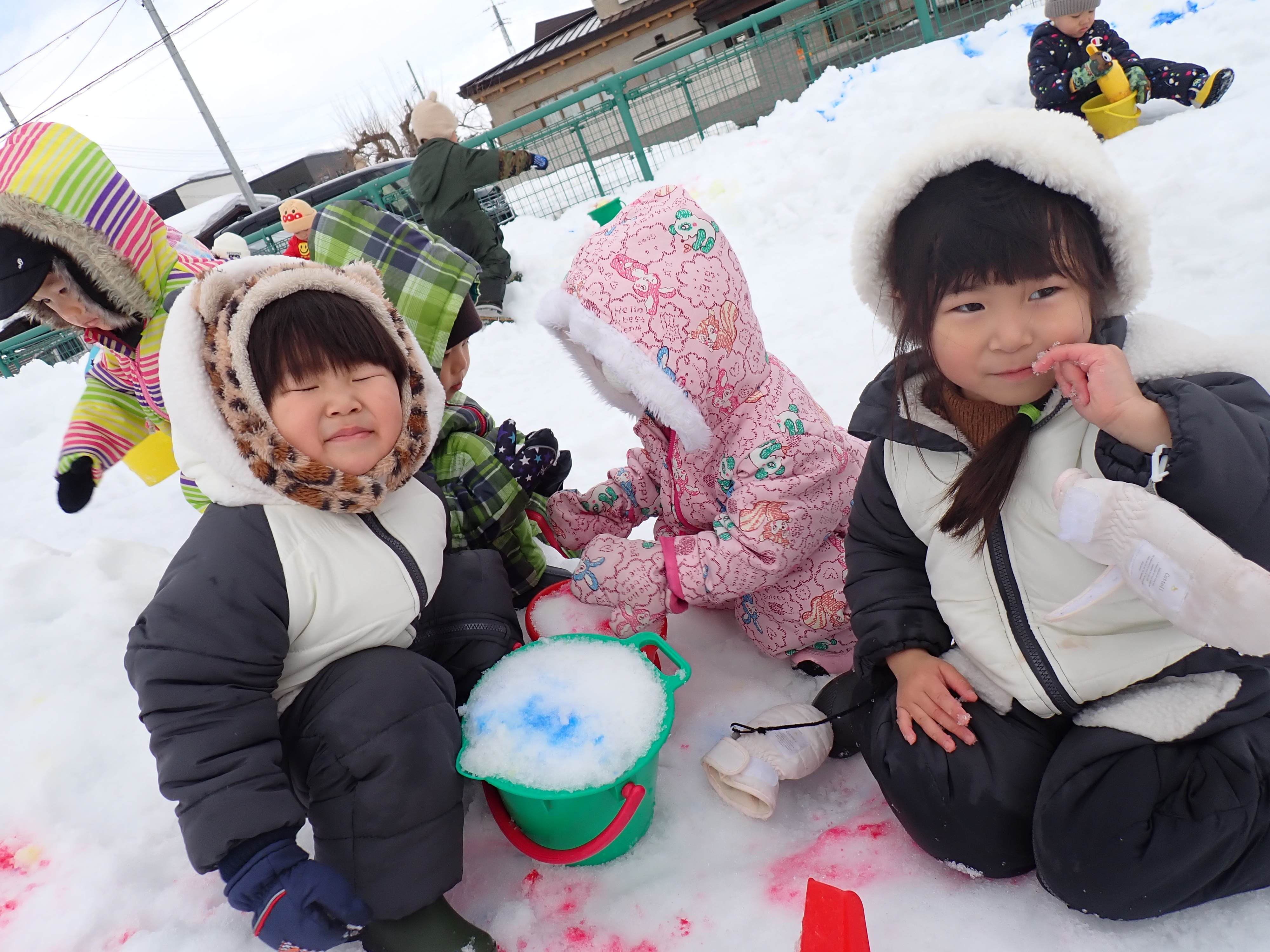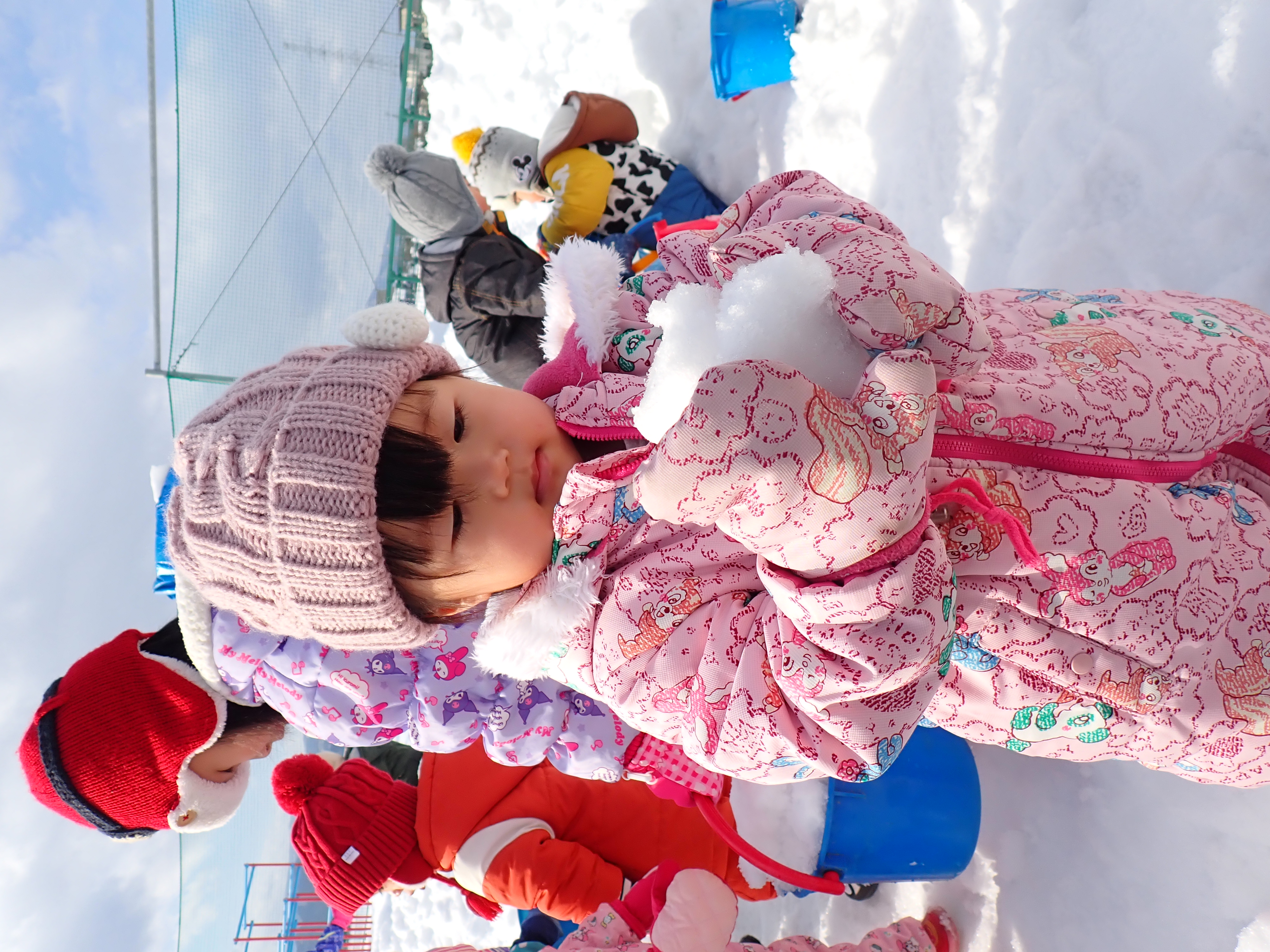 暖かい日が続いたので毎日雪遊び!