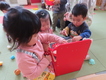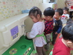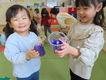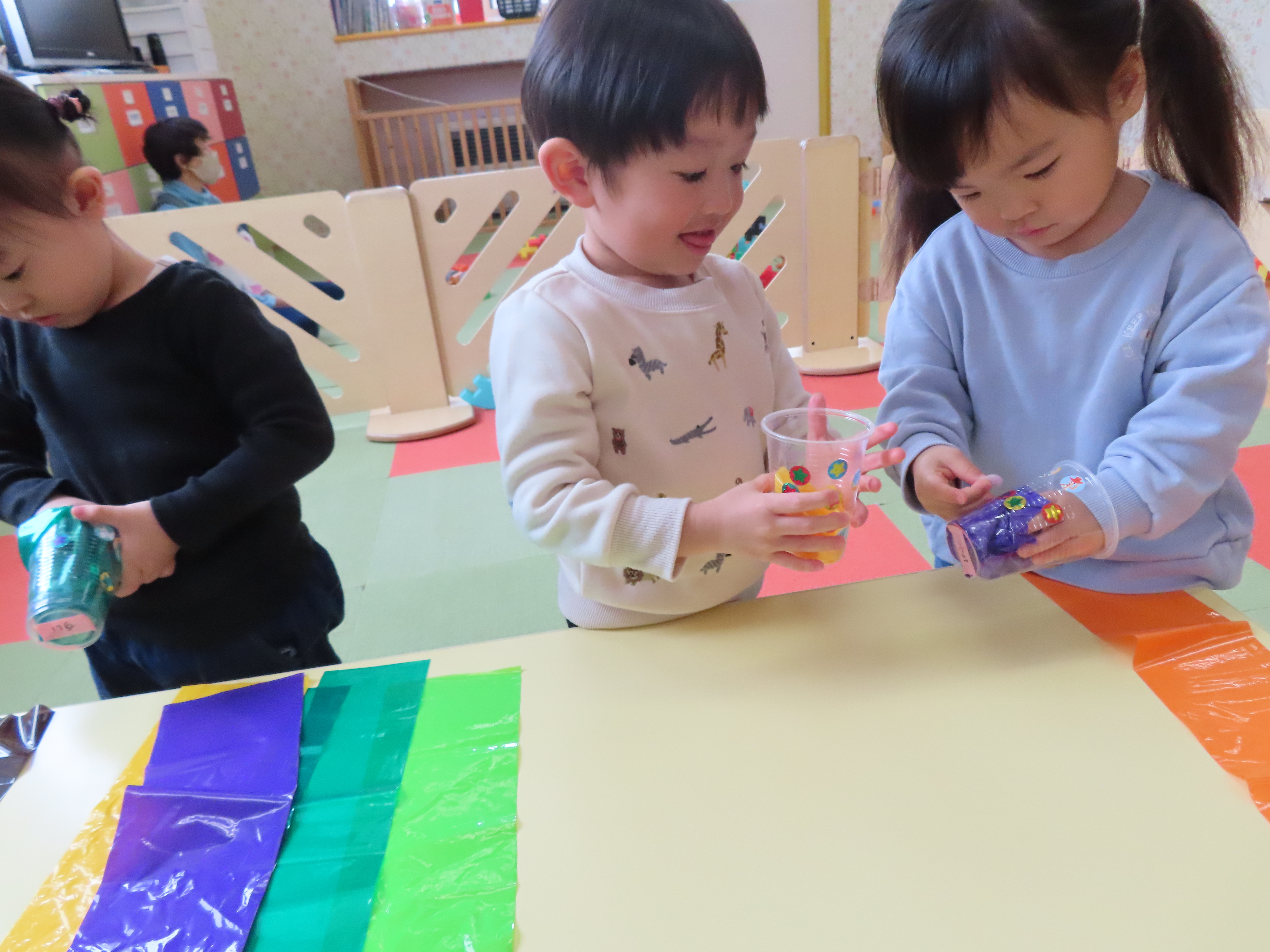 ジュース作り。カップにシールを貼ってカラーポリを入れたよ!