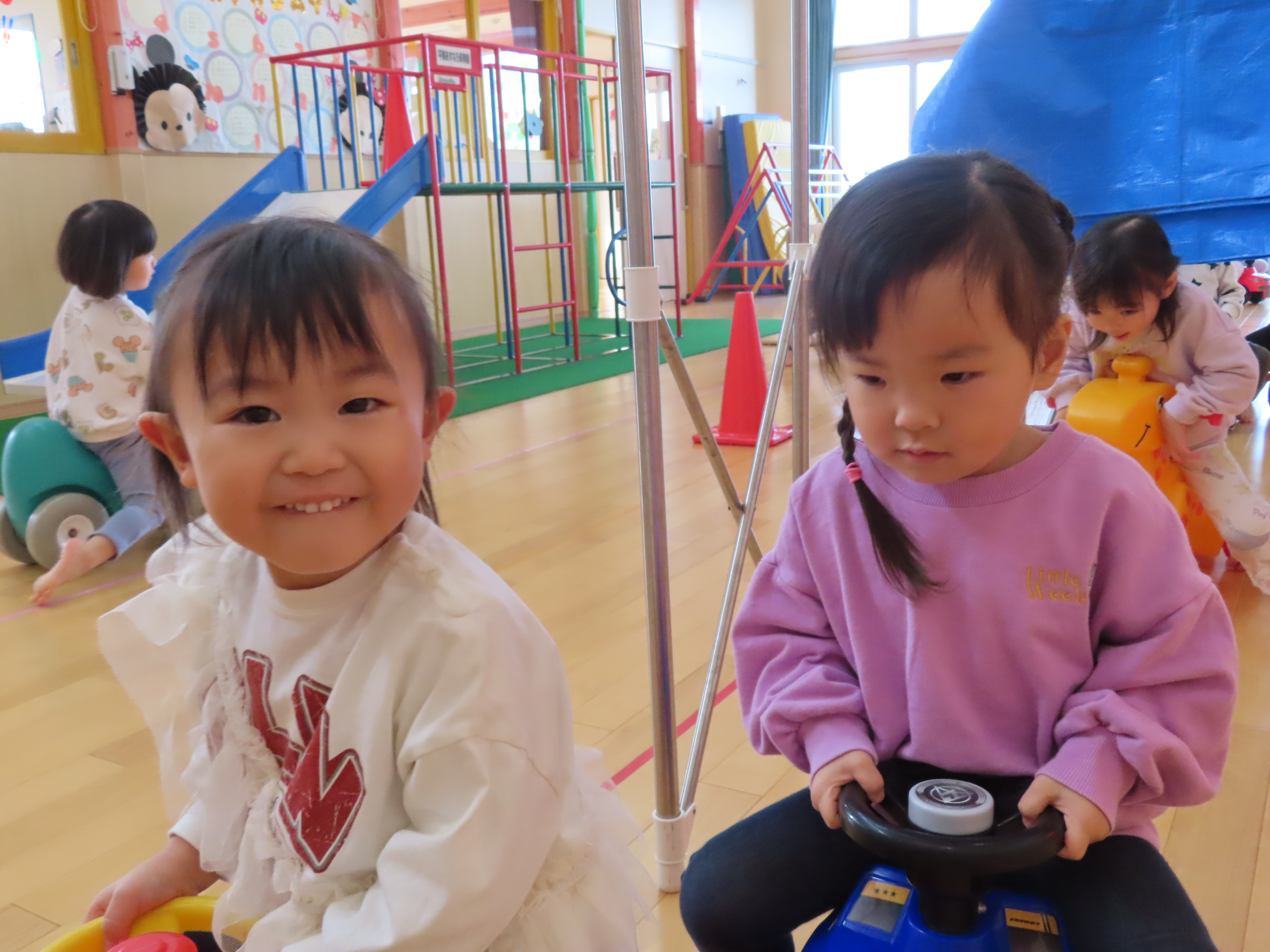自動車遊び。ブルーシートのトンネルくぐりまーす!