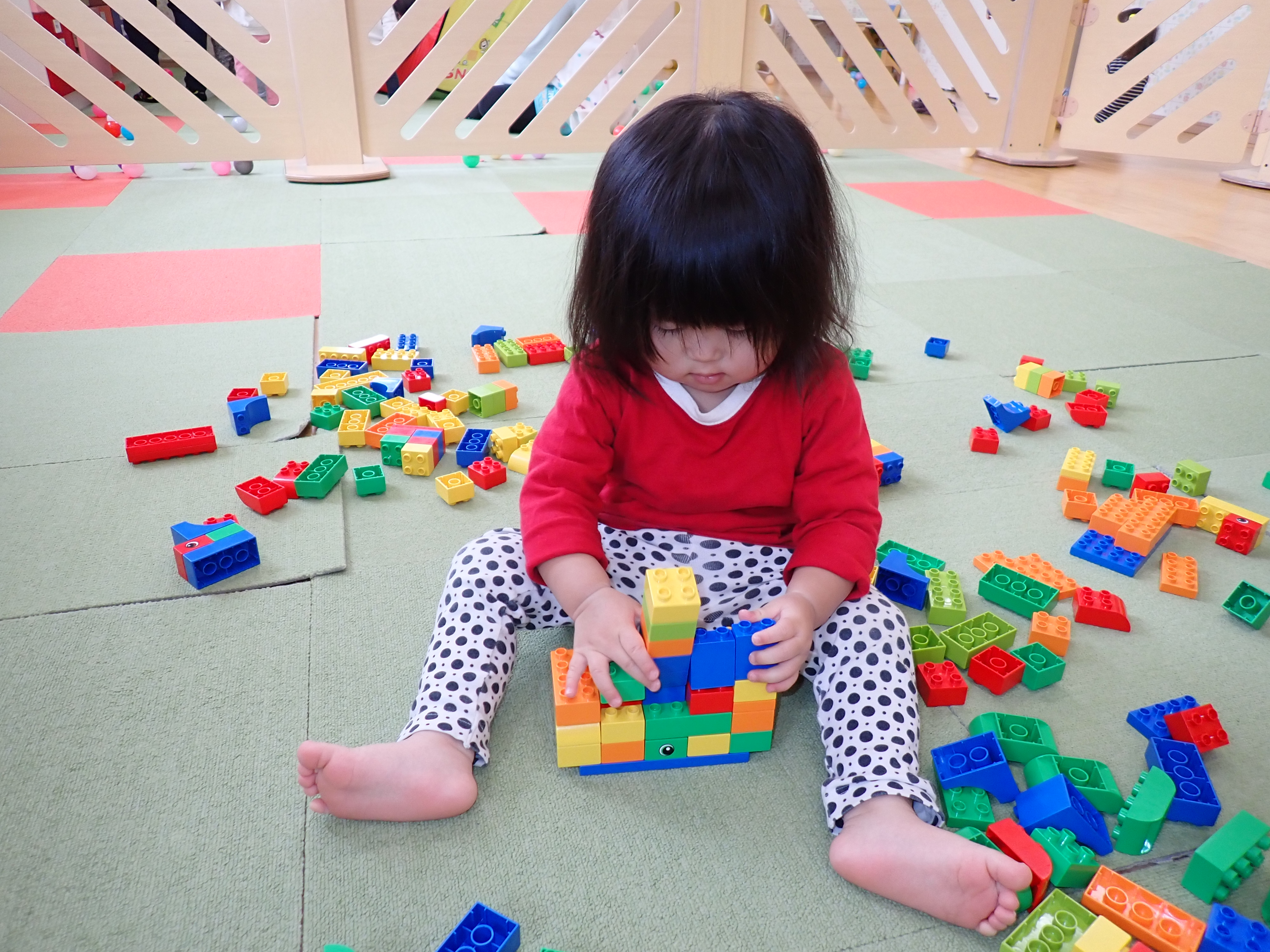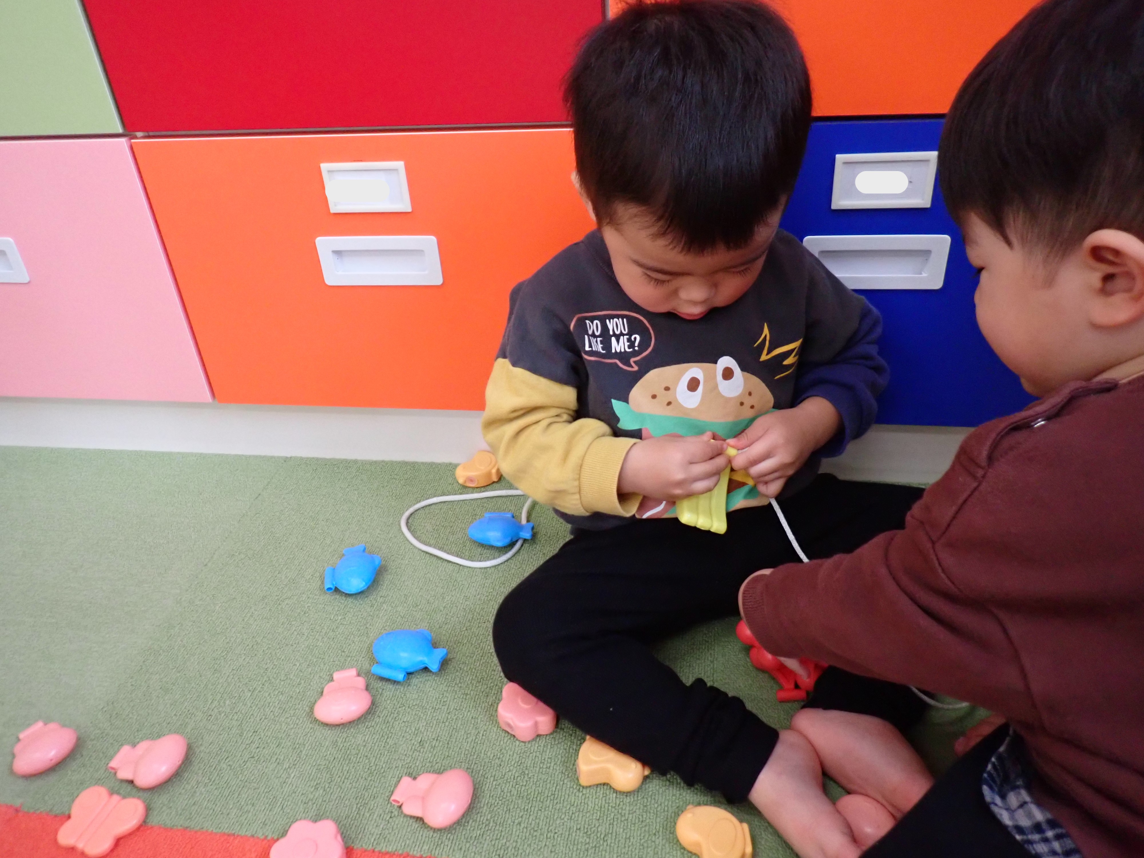みかん組、レゴブロックやひも通しで遊んだよ!