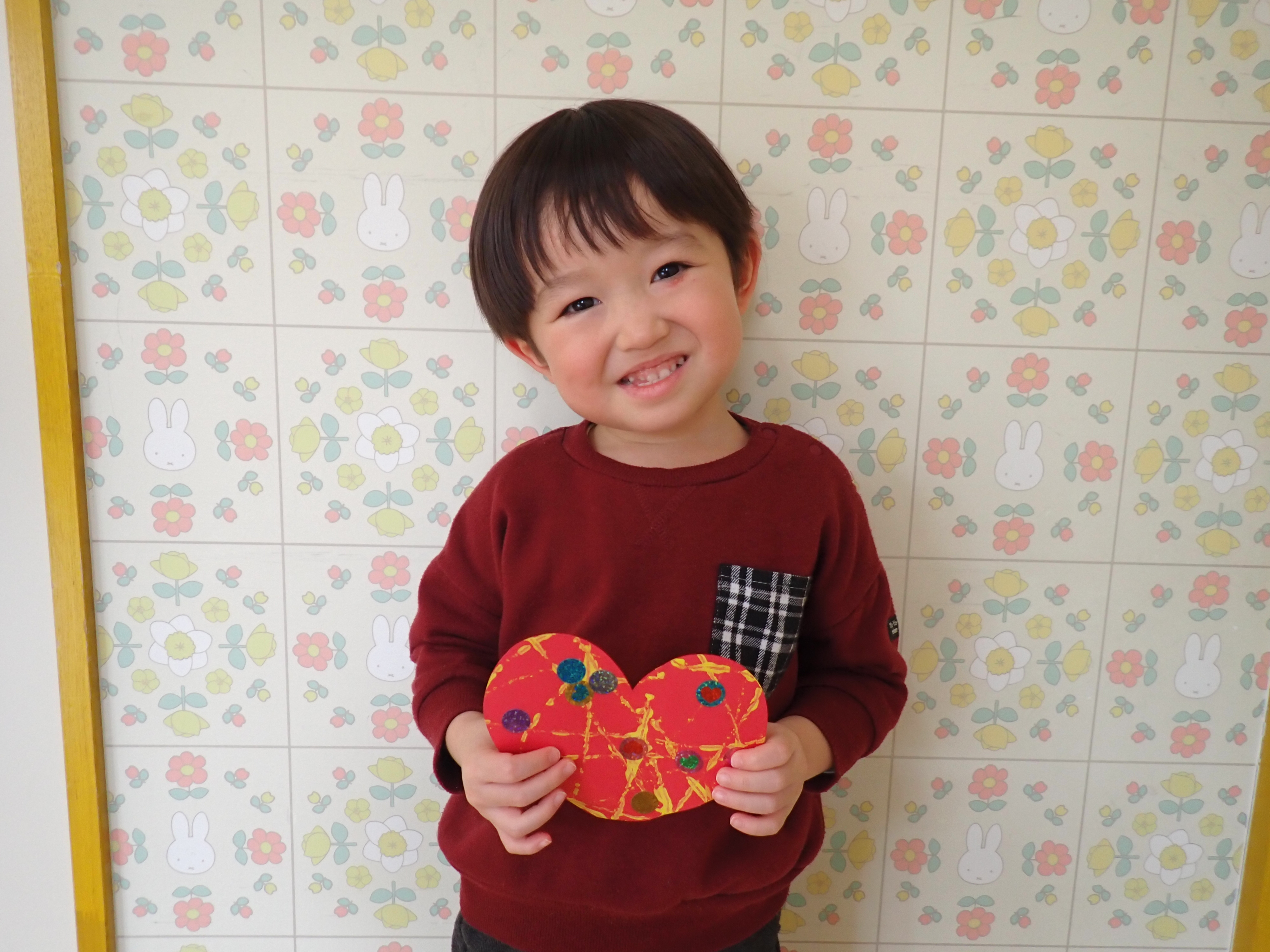 もも組、絵の具を付けたビー玉を転がして、模様付けたよ!