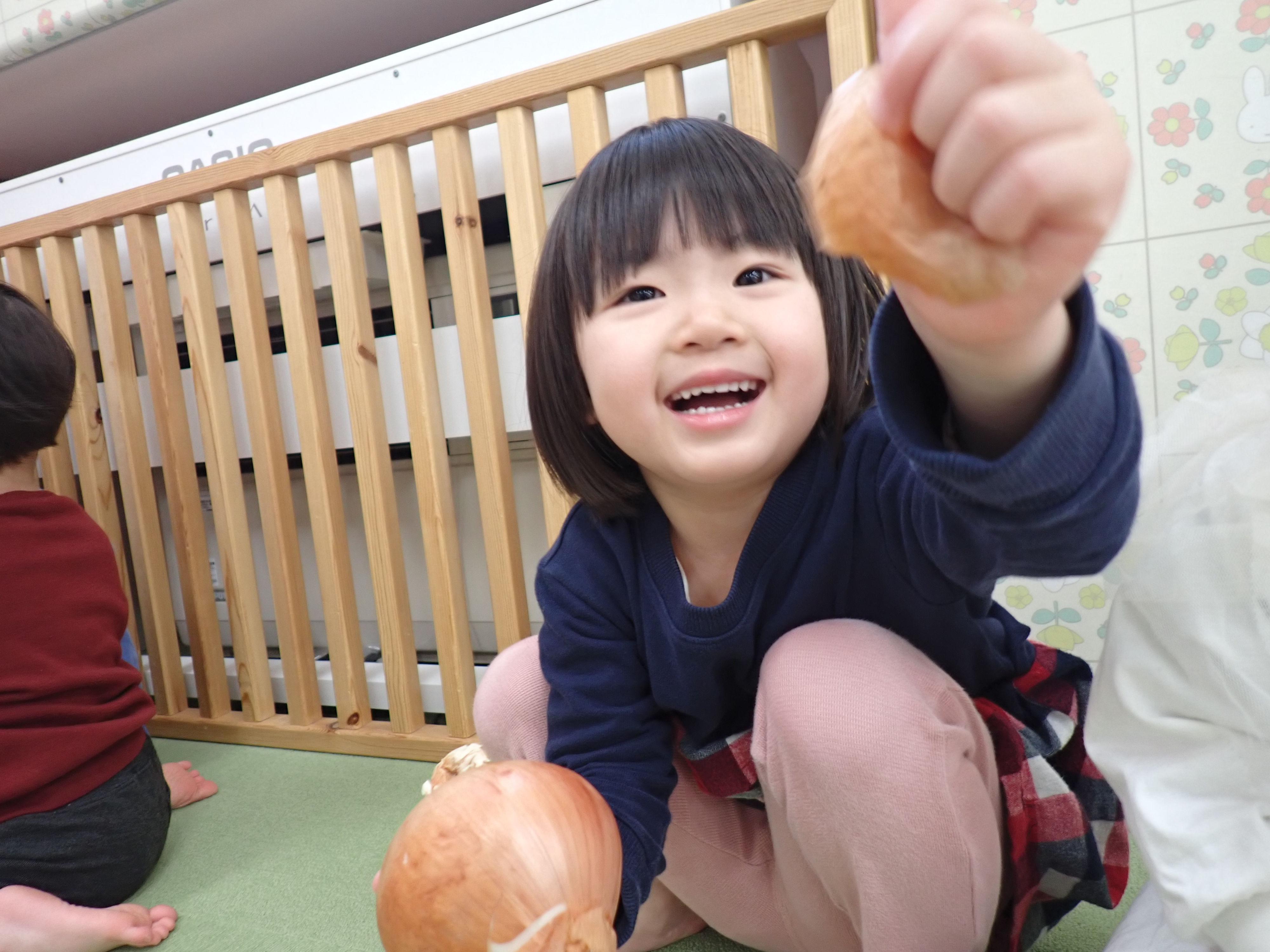 食育教室の後、野菜に触ってみました!