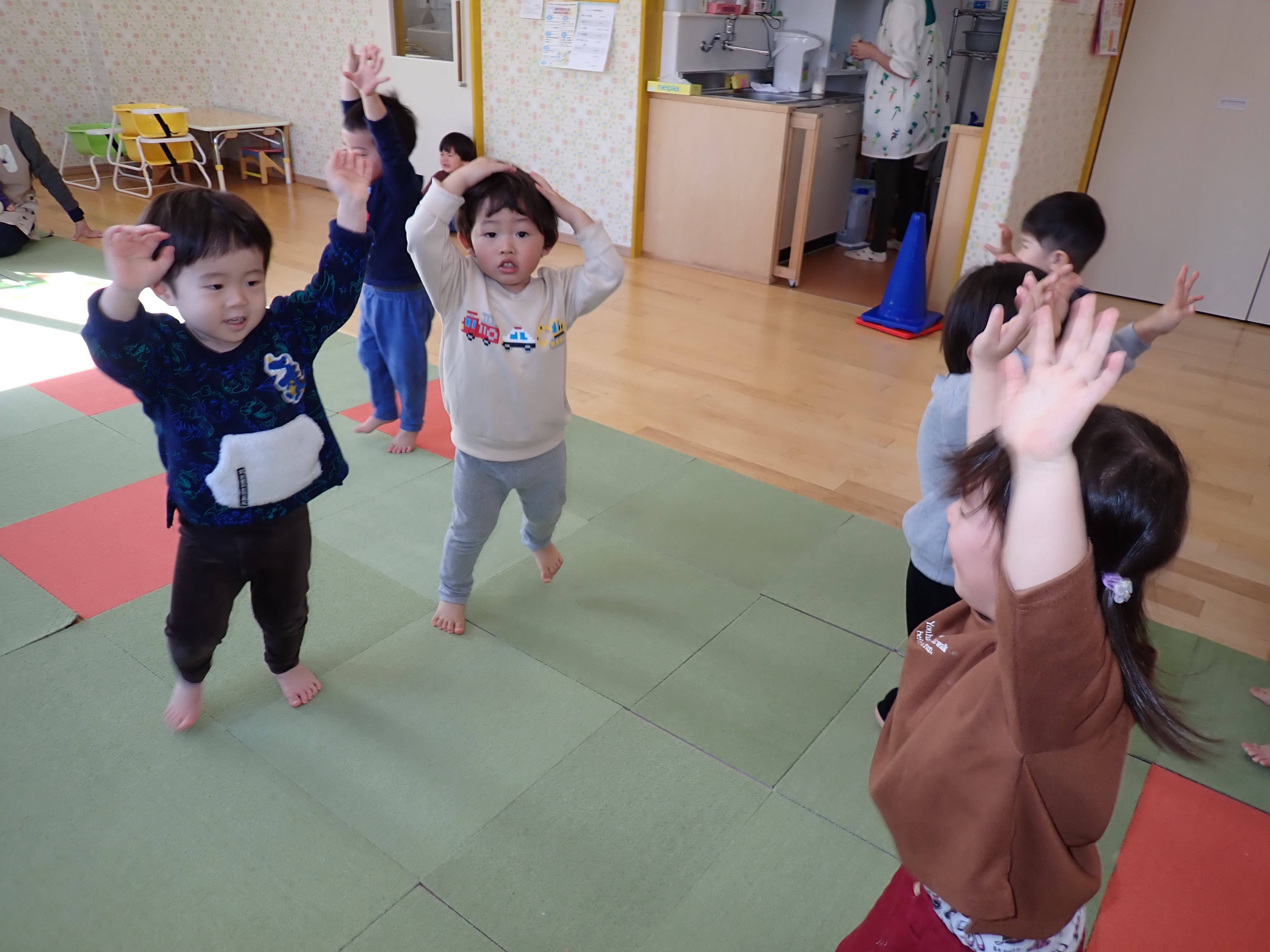 未満児組全体でリトミック。