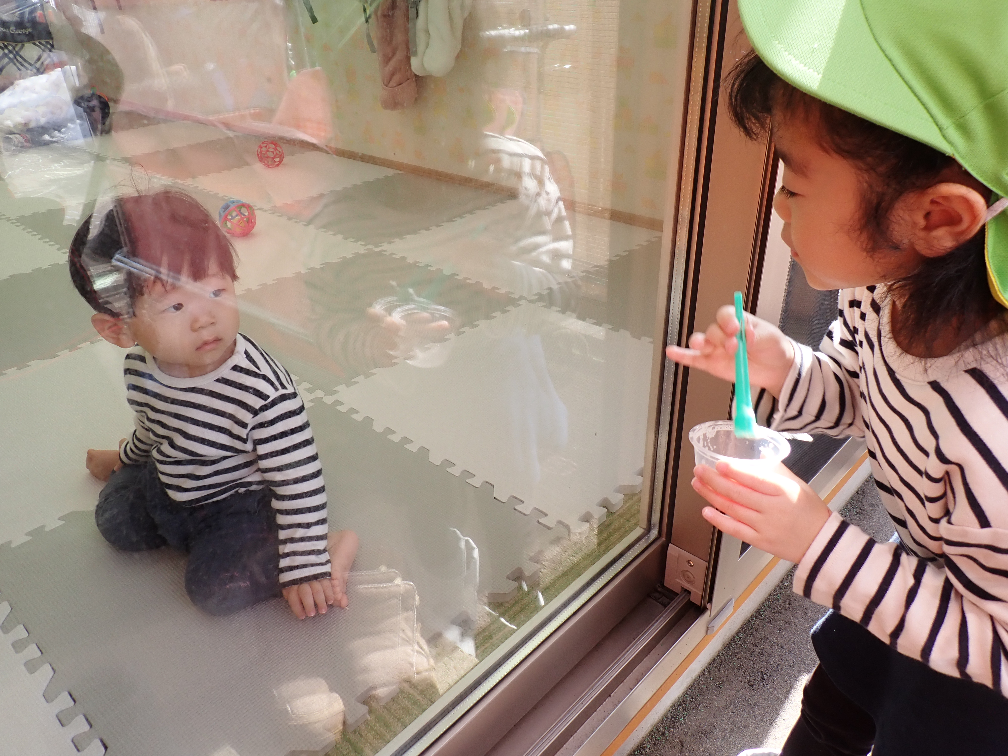 ぶどう組はシャボン玉遊び。