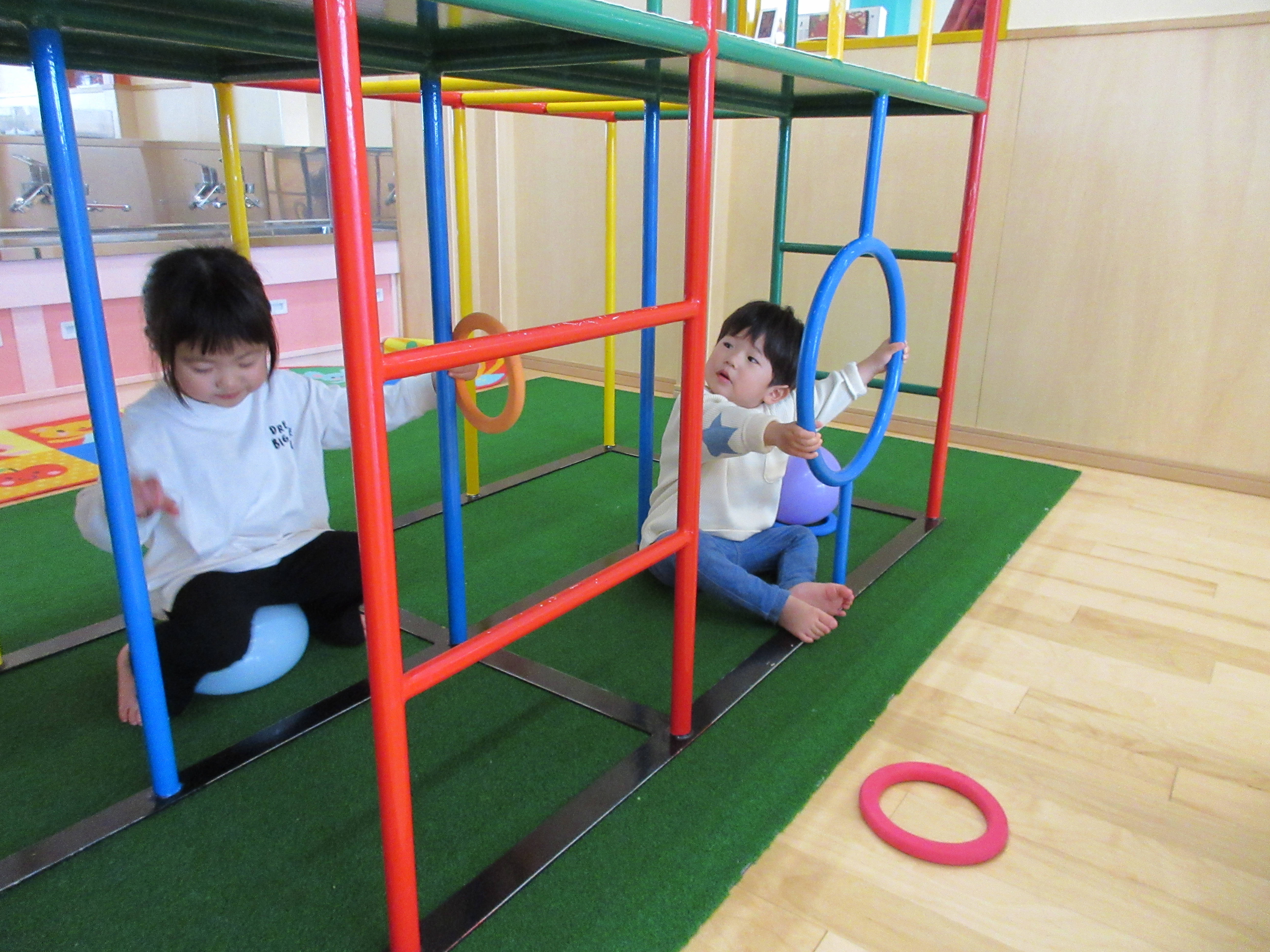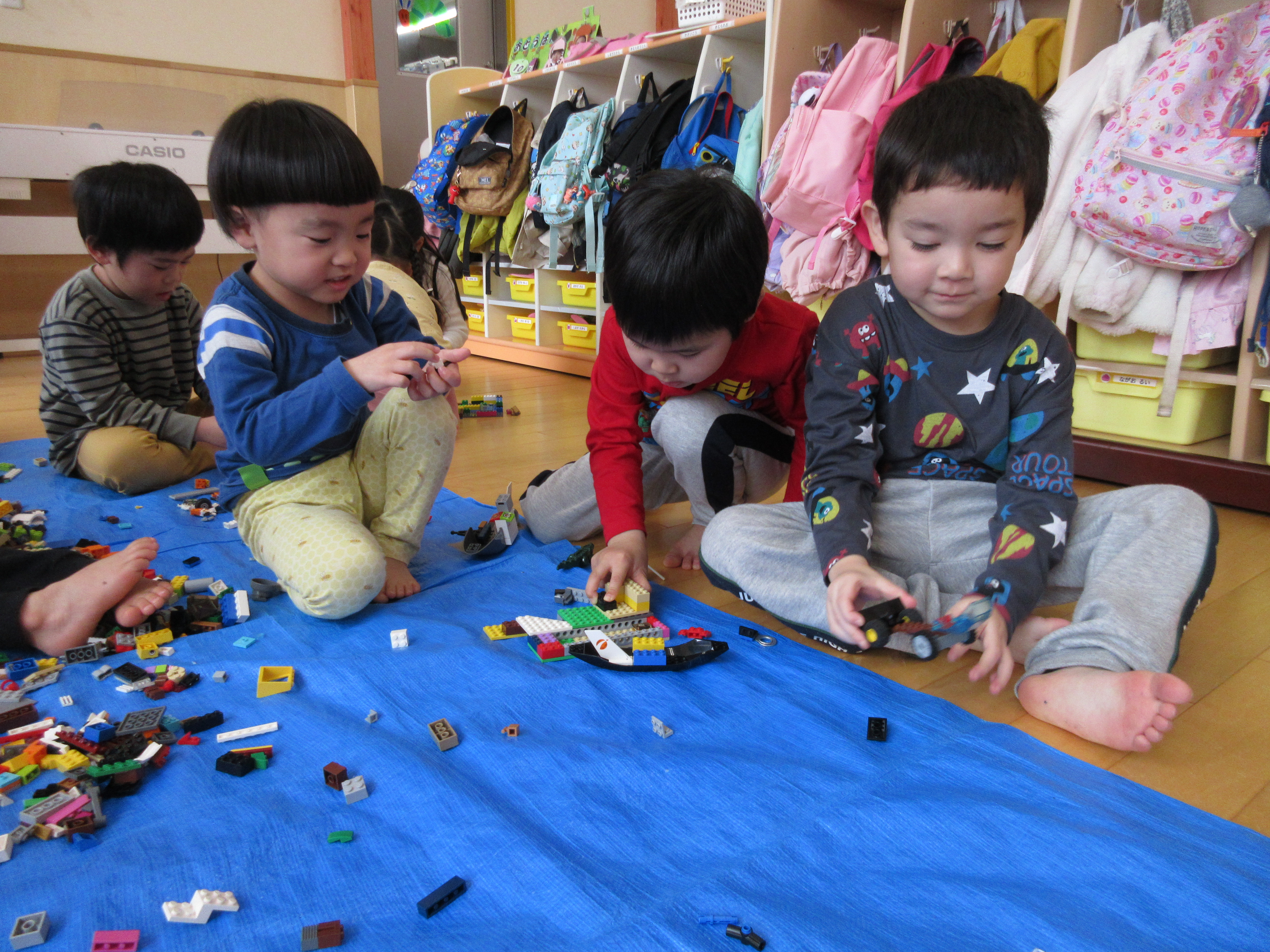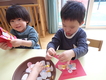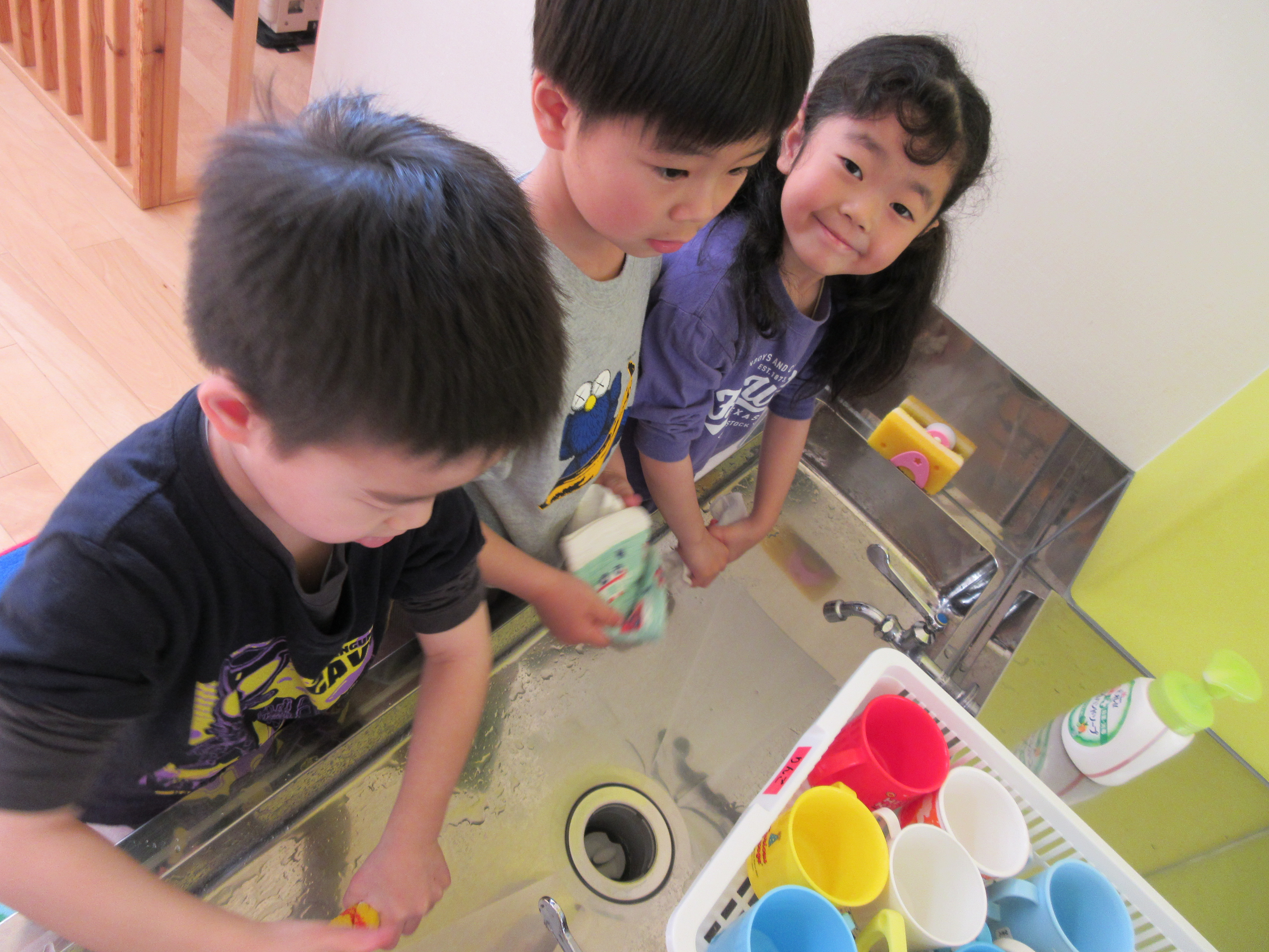 りんご組、給食の前におしぼりは自分で絞って準備します。