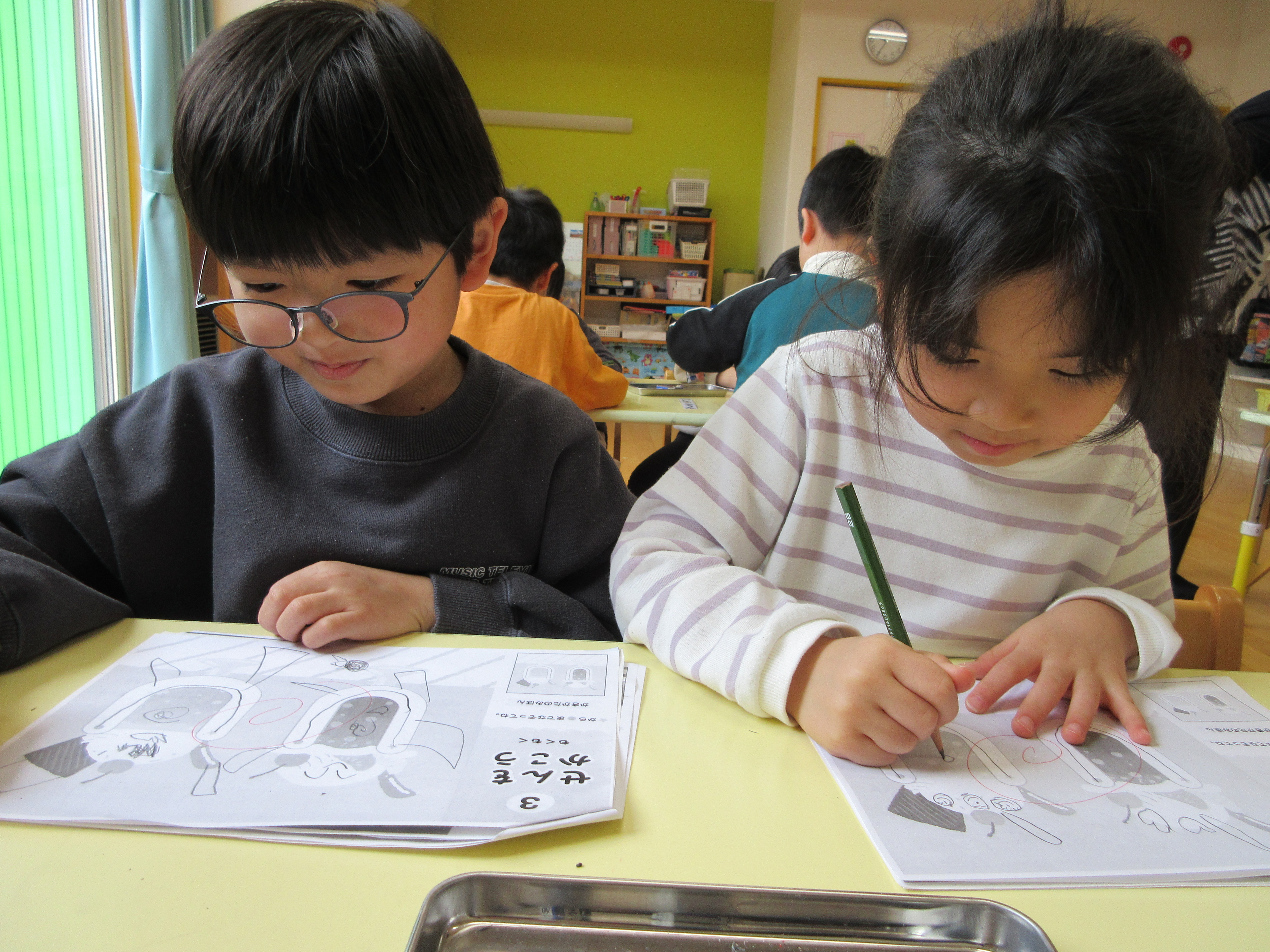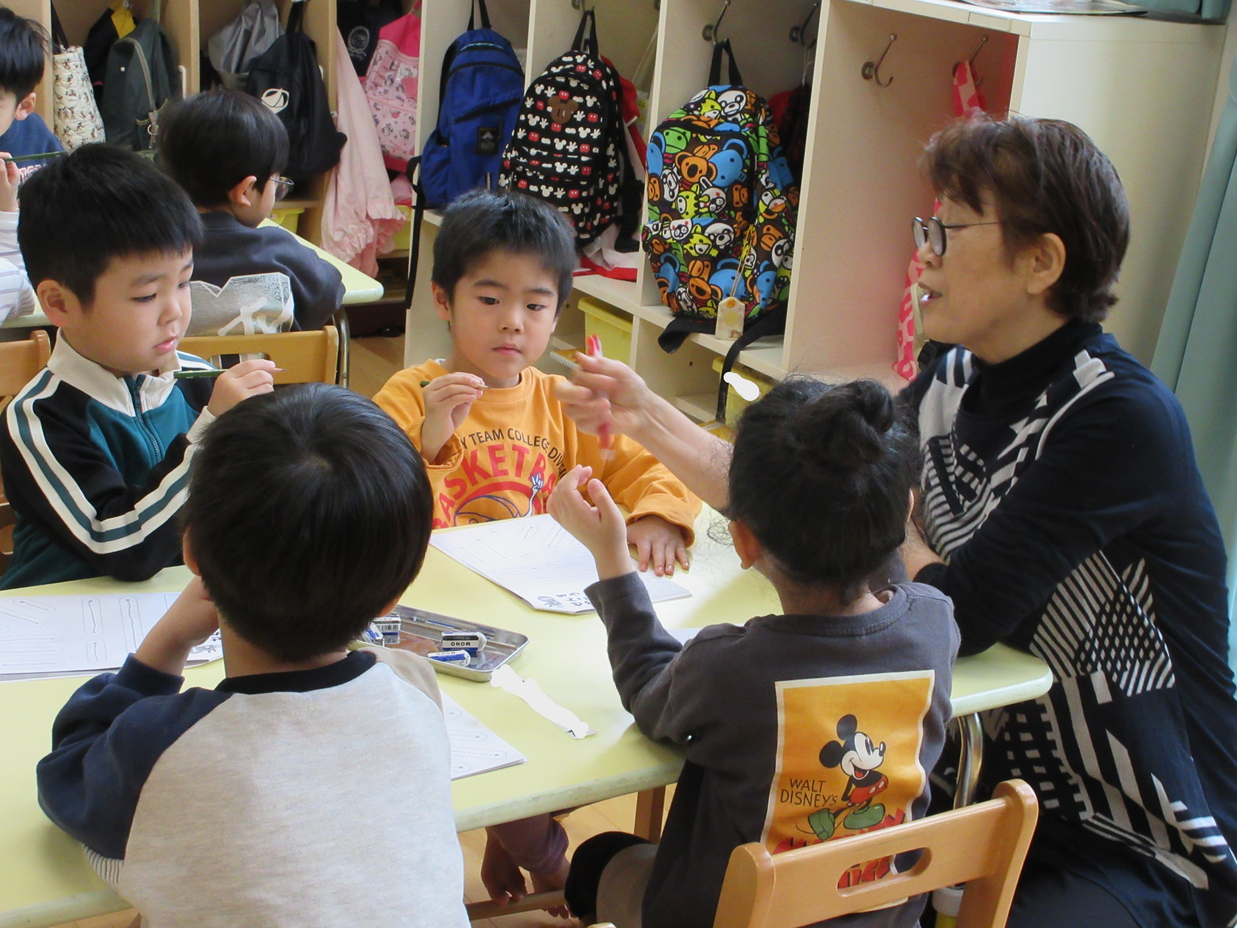 初めての習字教室。鉛筆の正しい持ち方を教わりました。