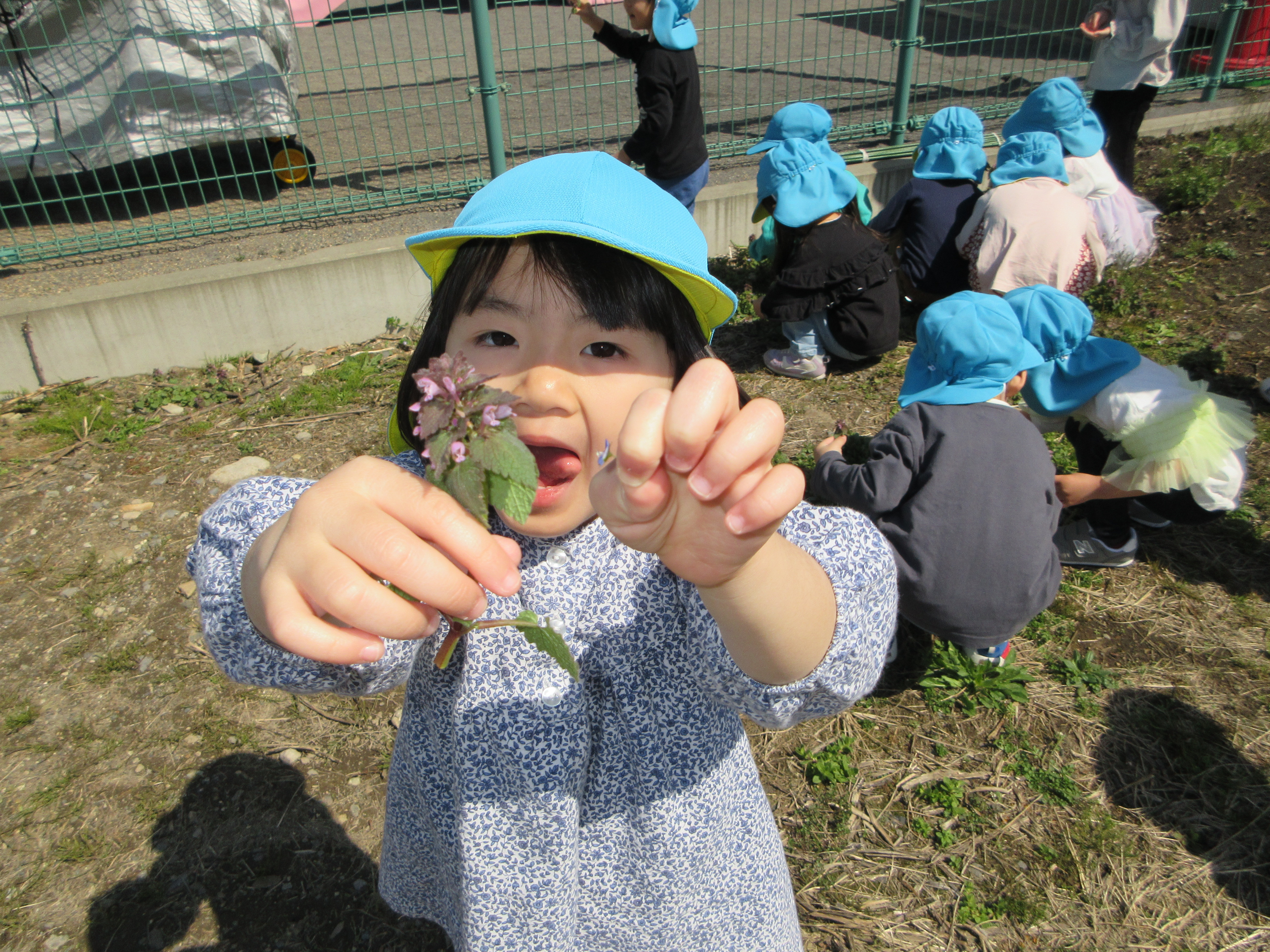 ばなな組、園庭の周りで春の草花を見つけたよ(^^♪
