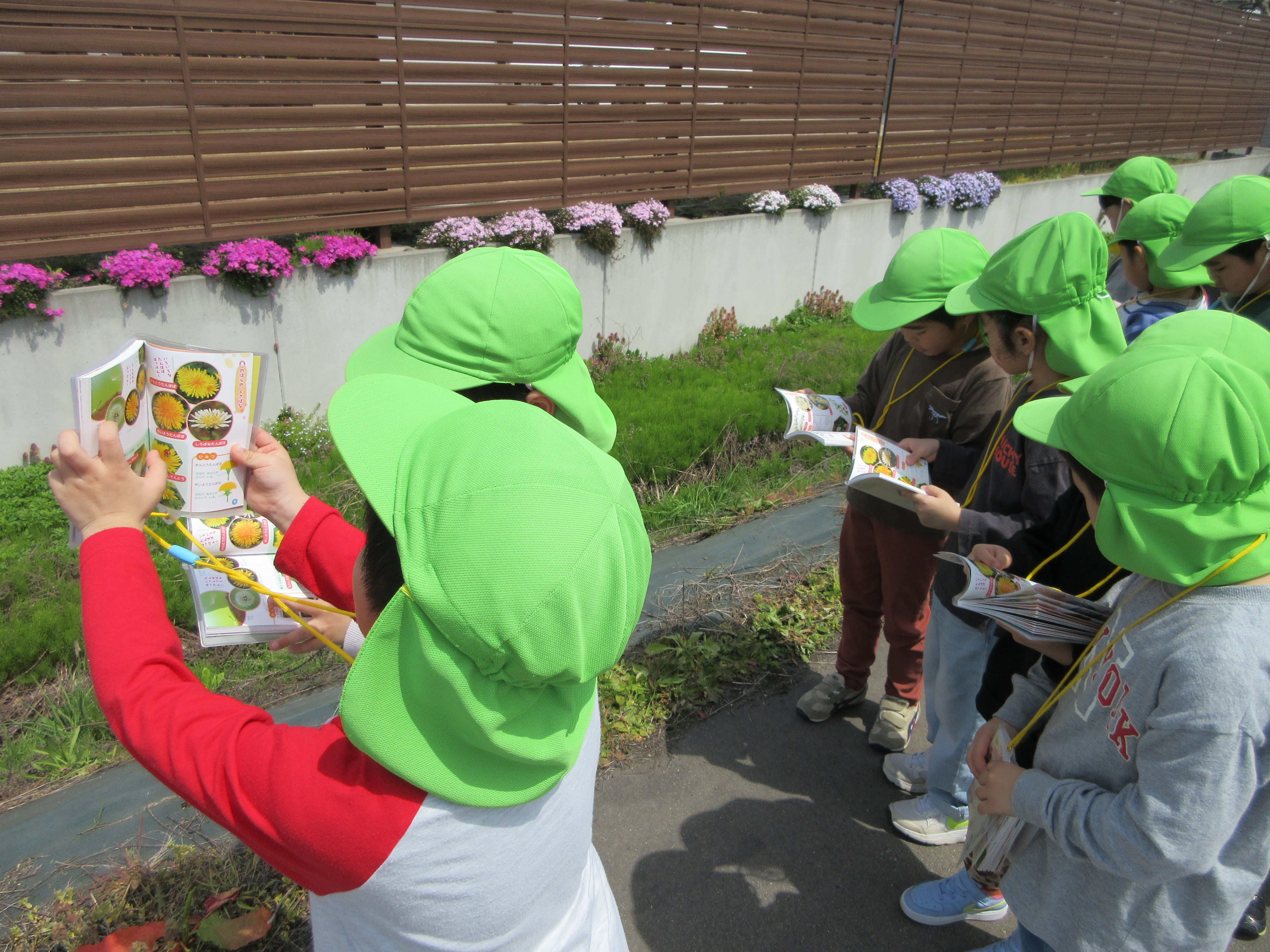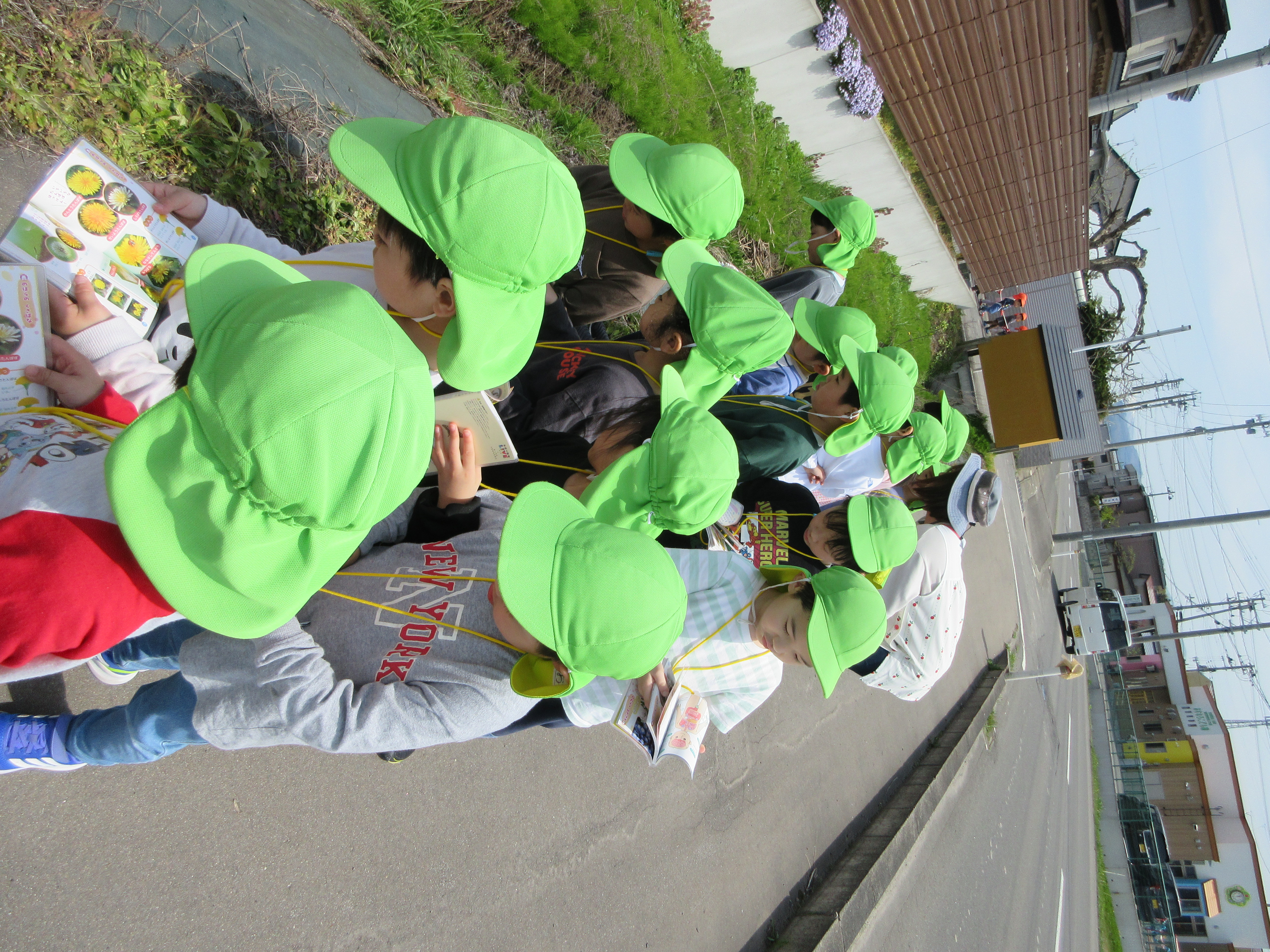 りんご組、図鑑を持ってお散歩。