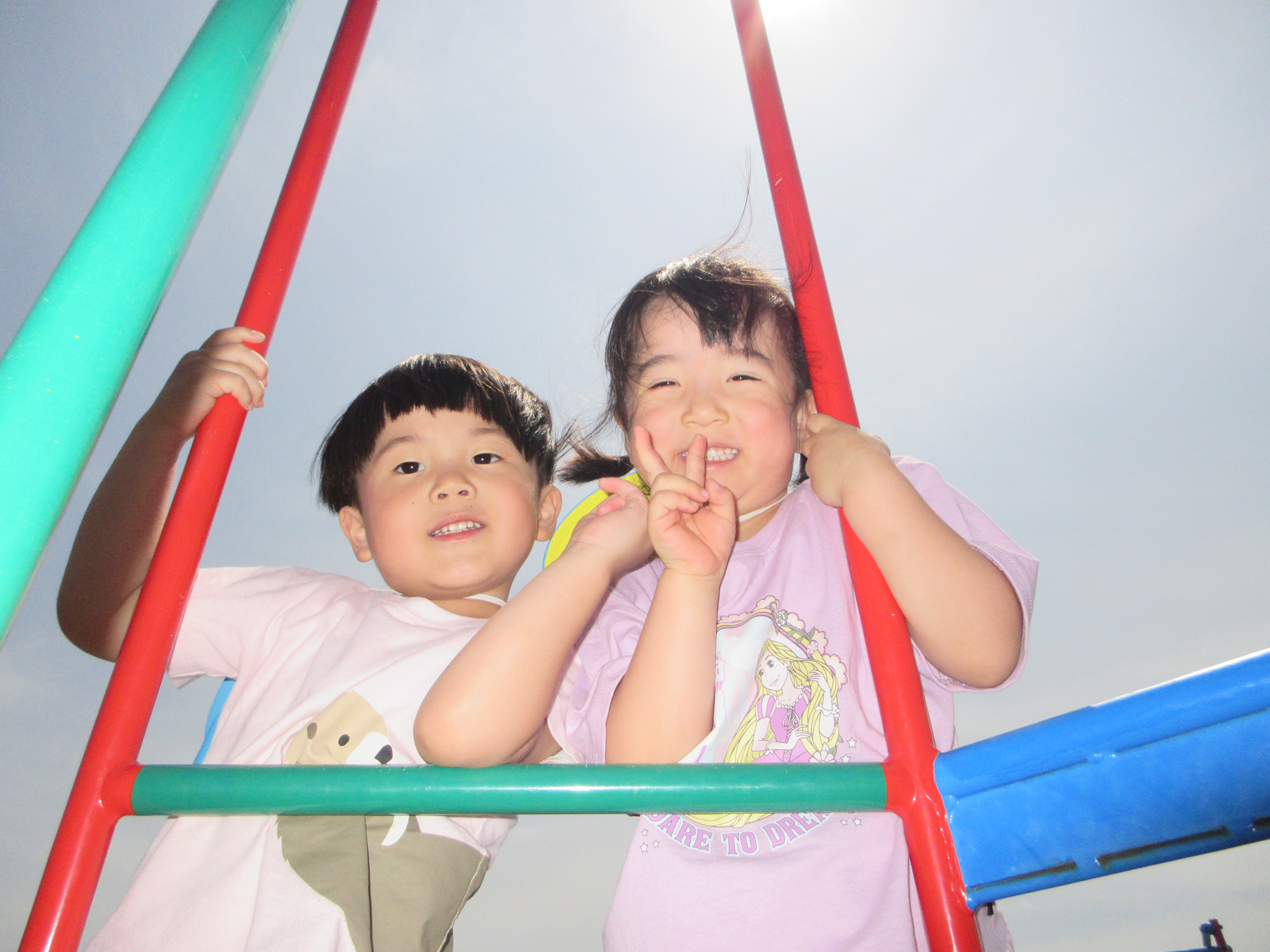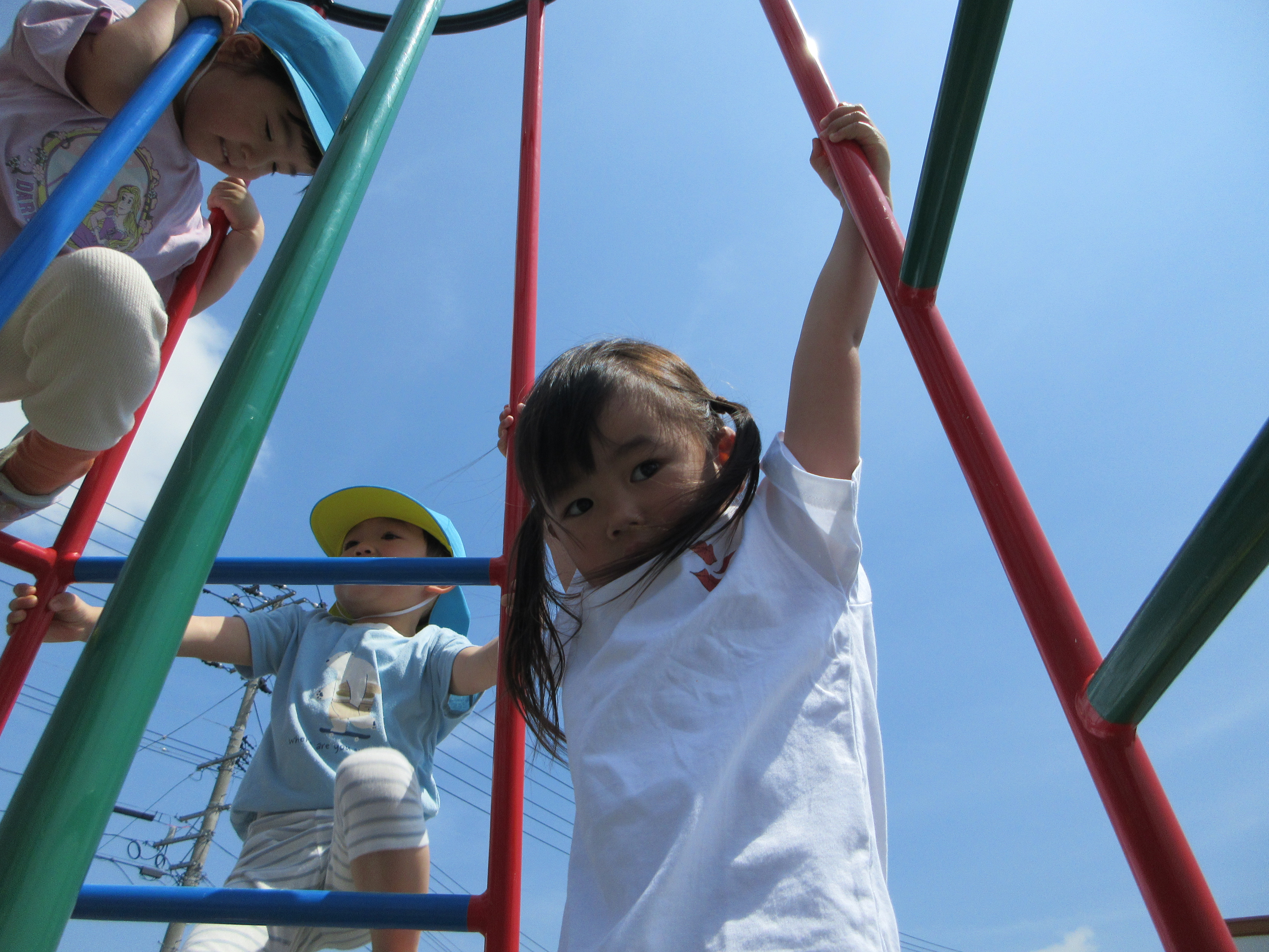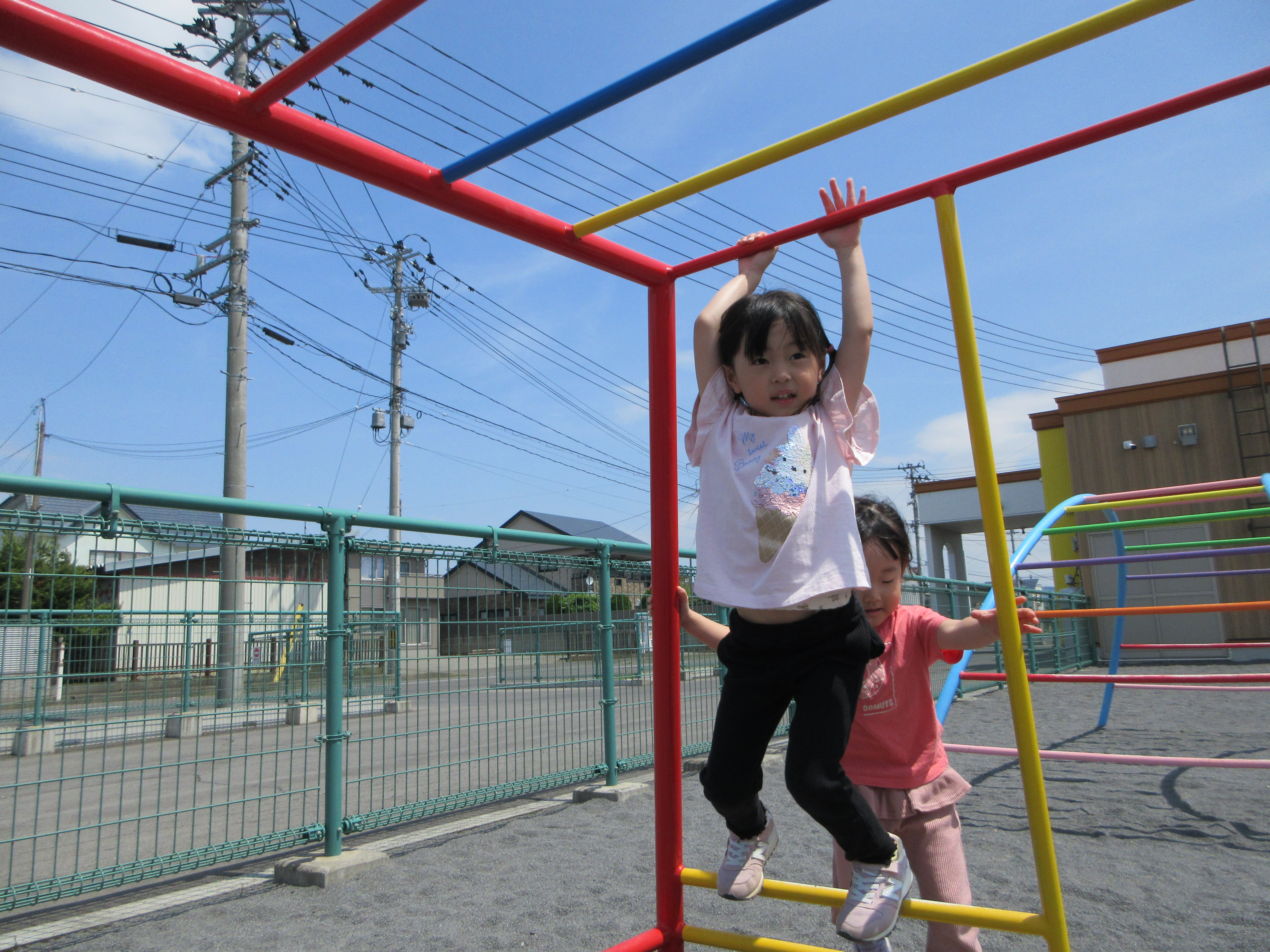 園庭で固定遊具あそび。
