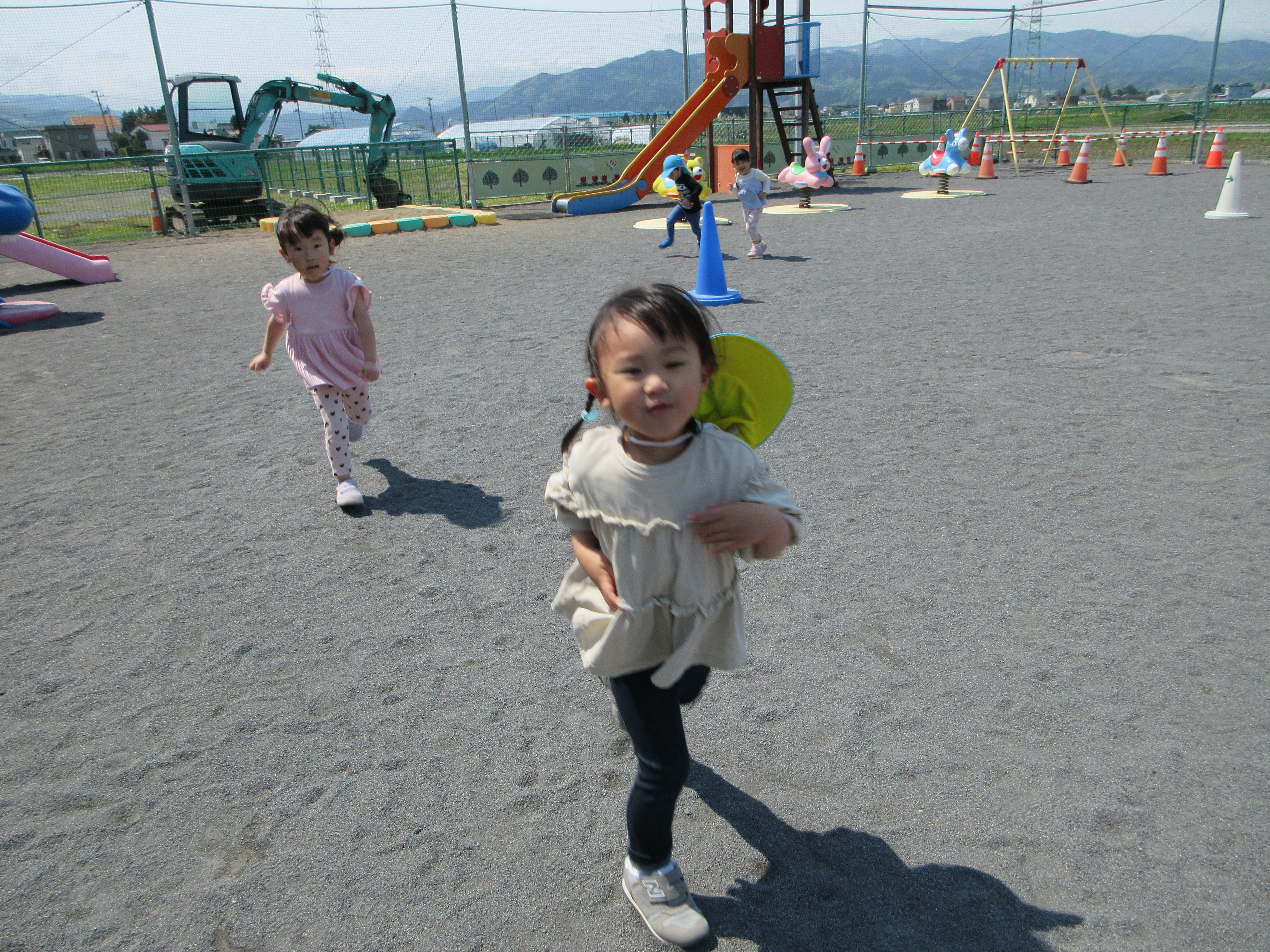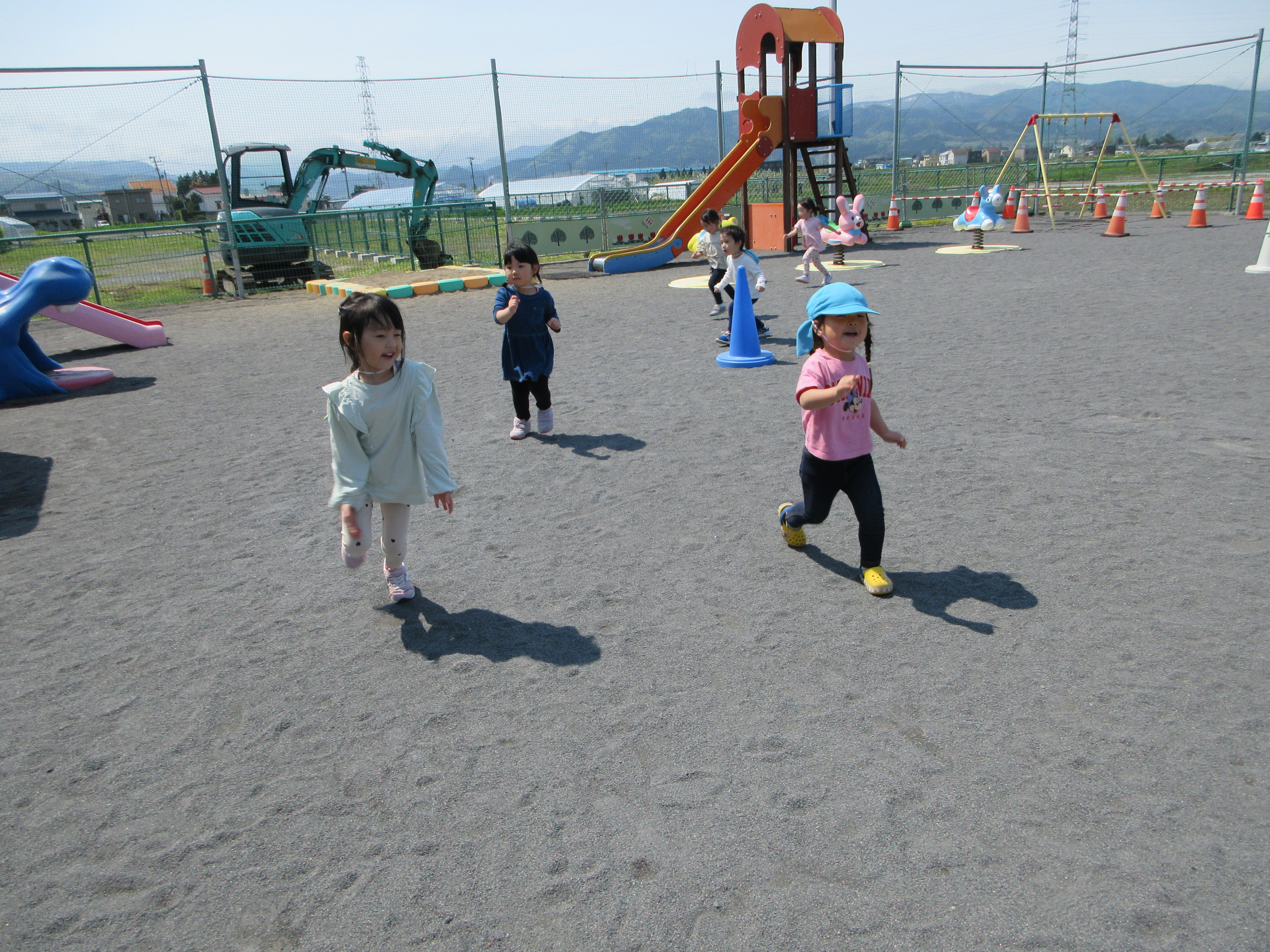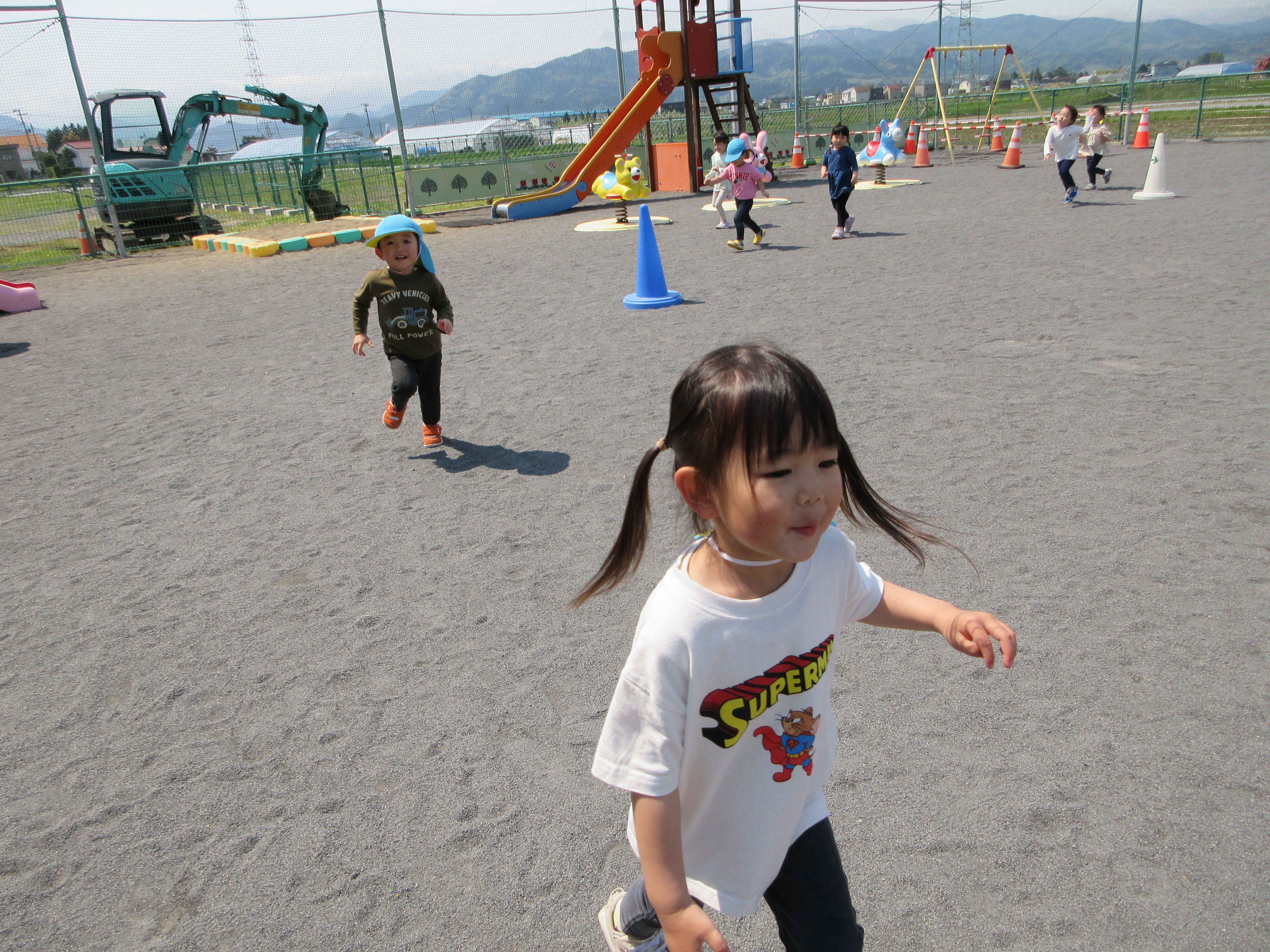 園庭で固定遊具あそび。