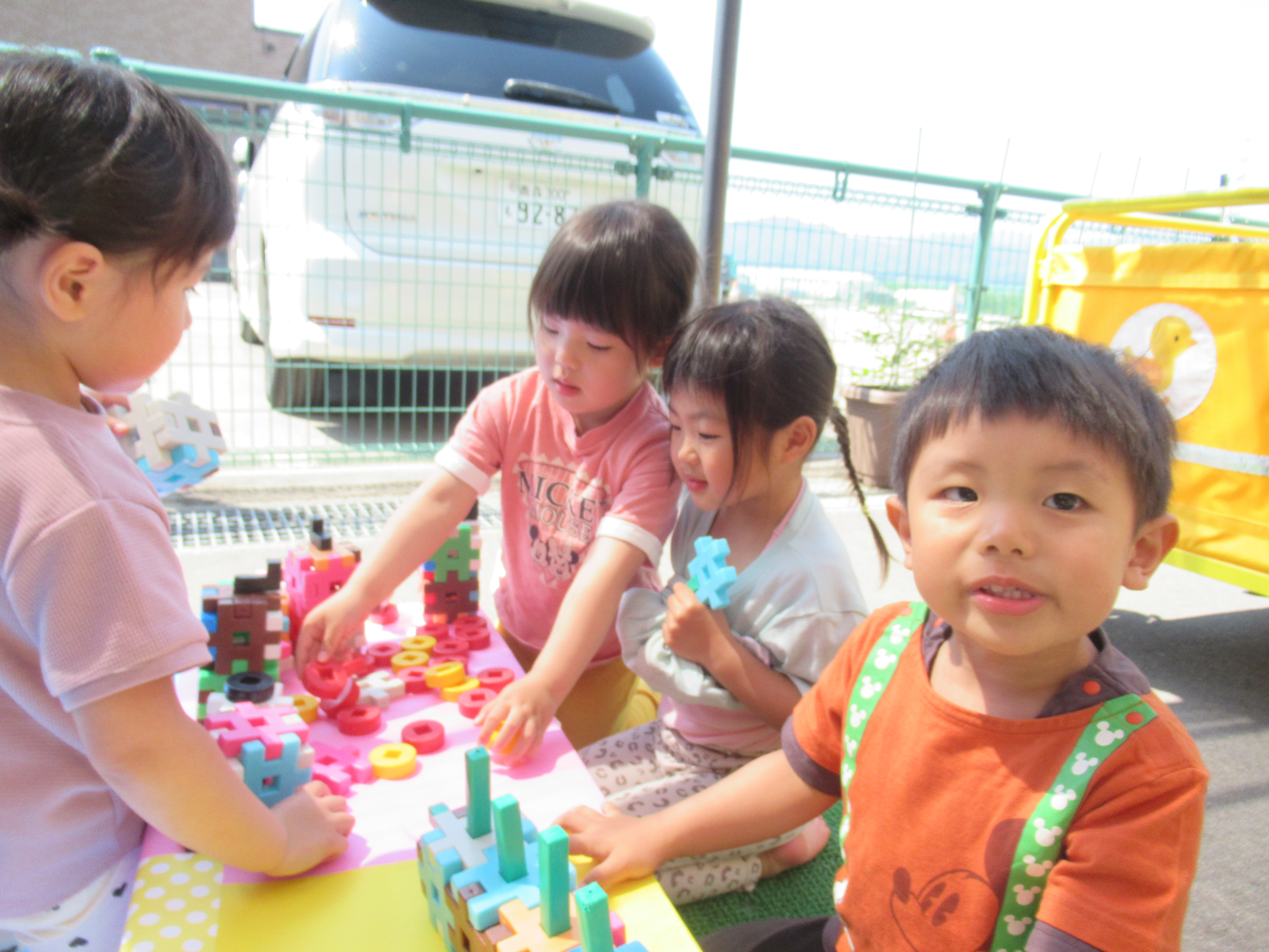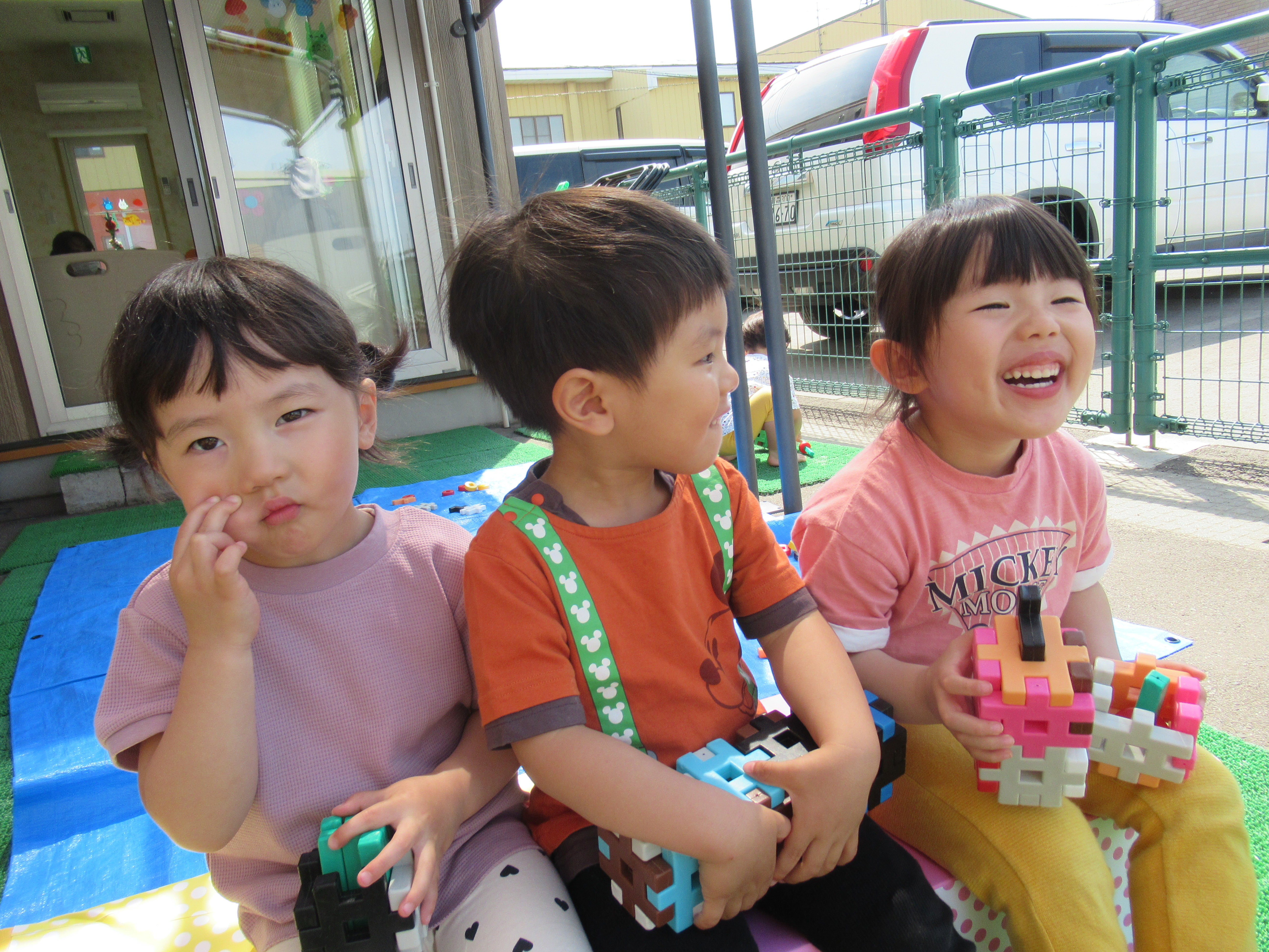 テラスでブロック遊び!