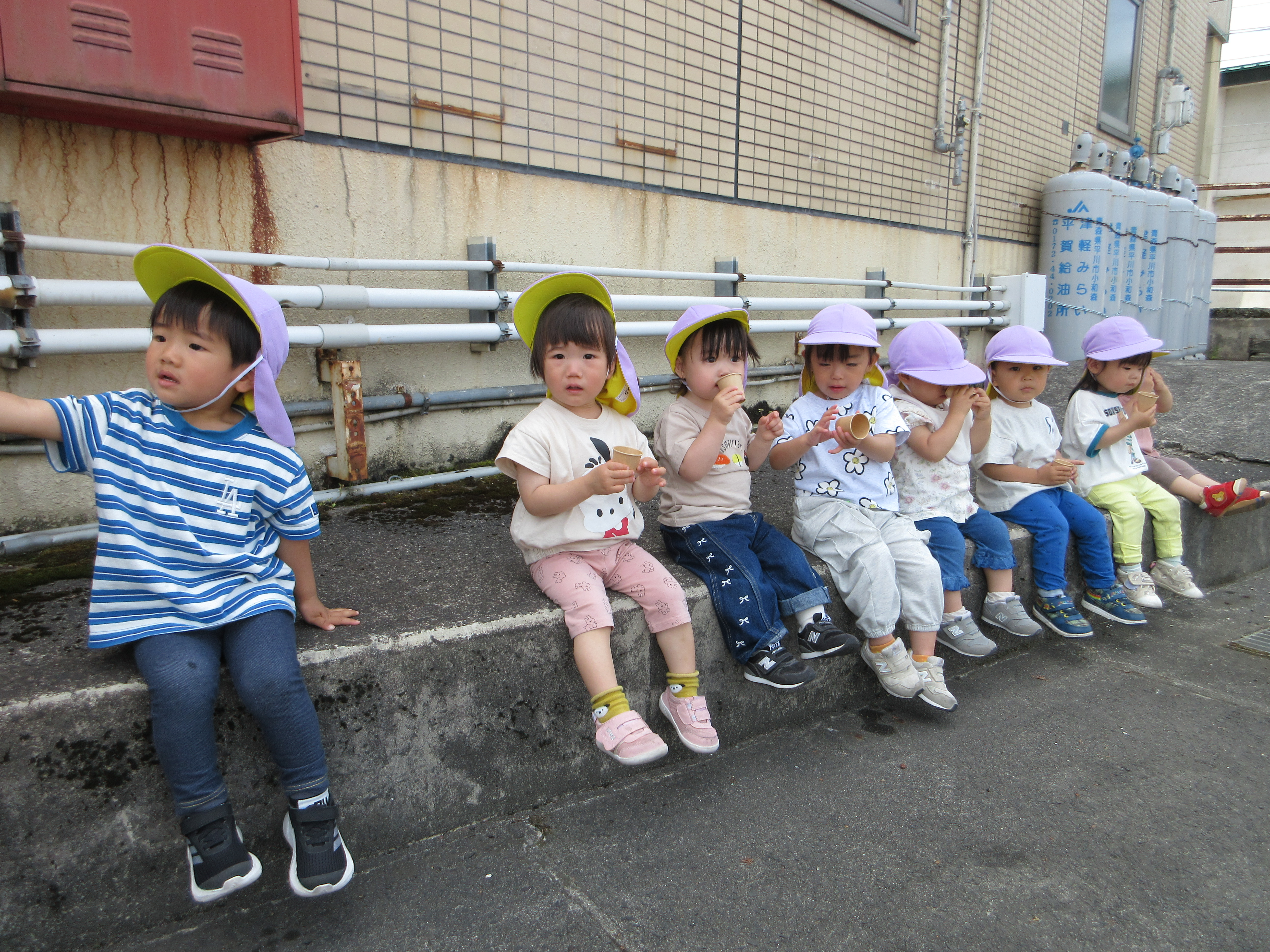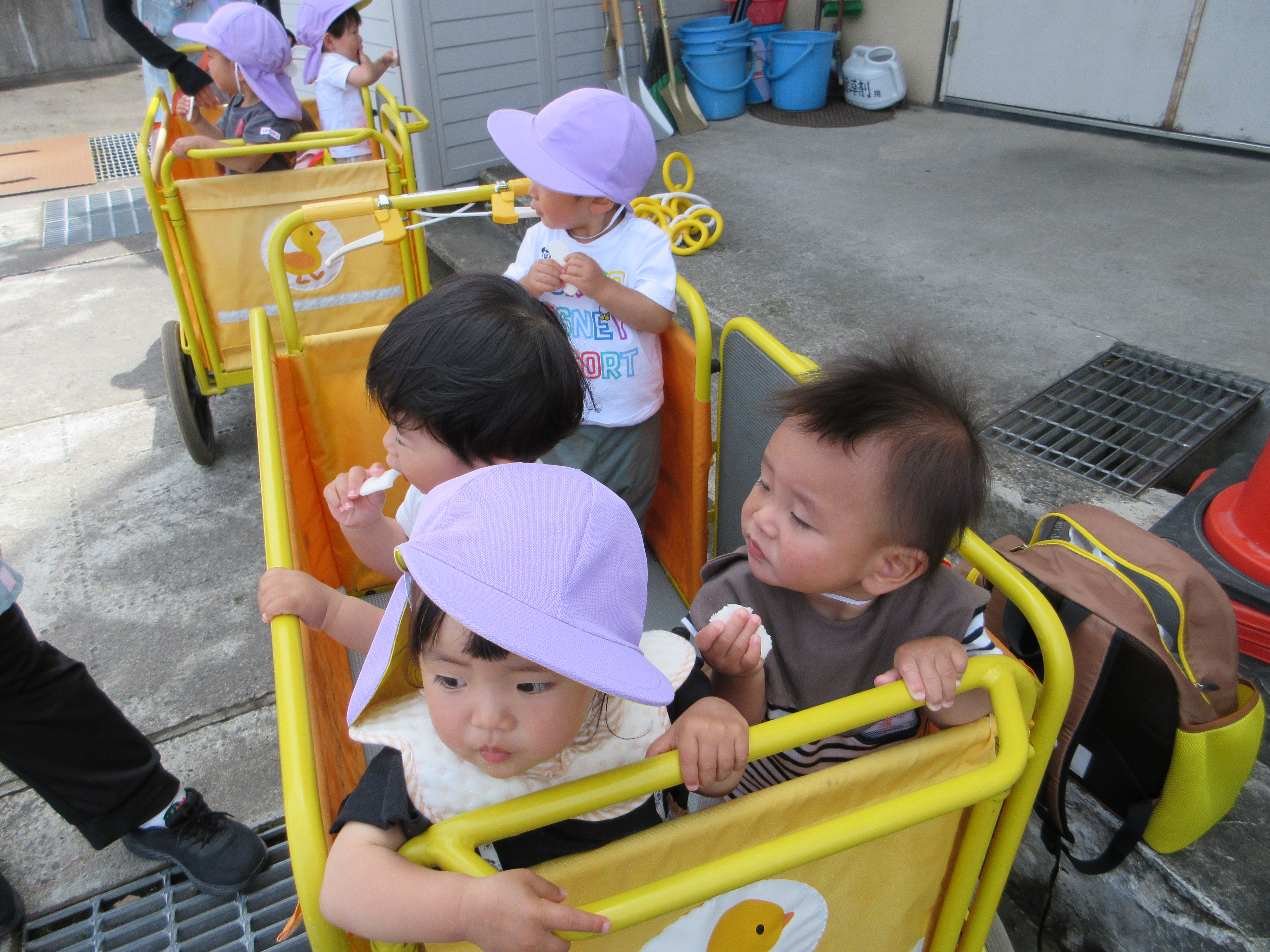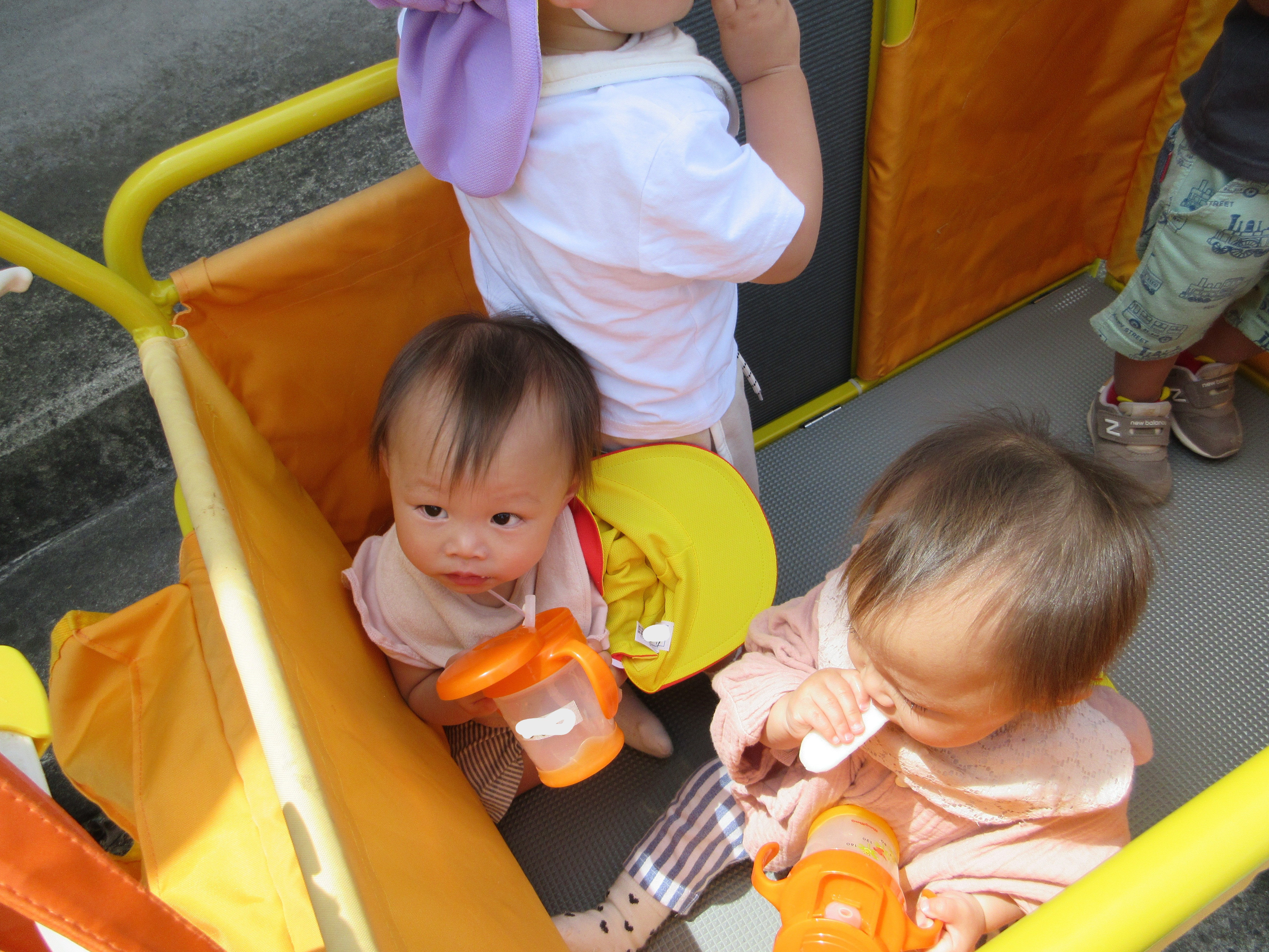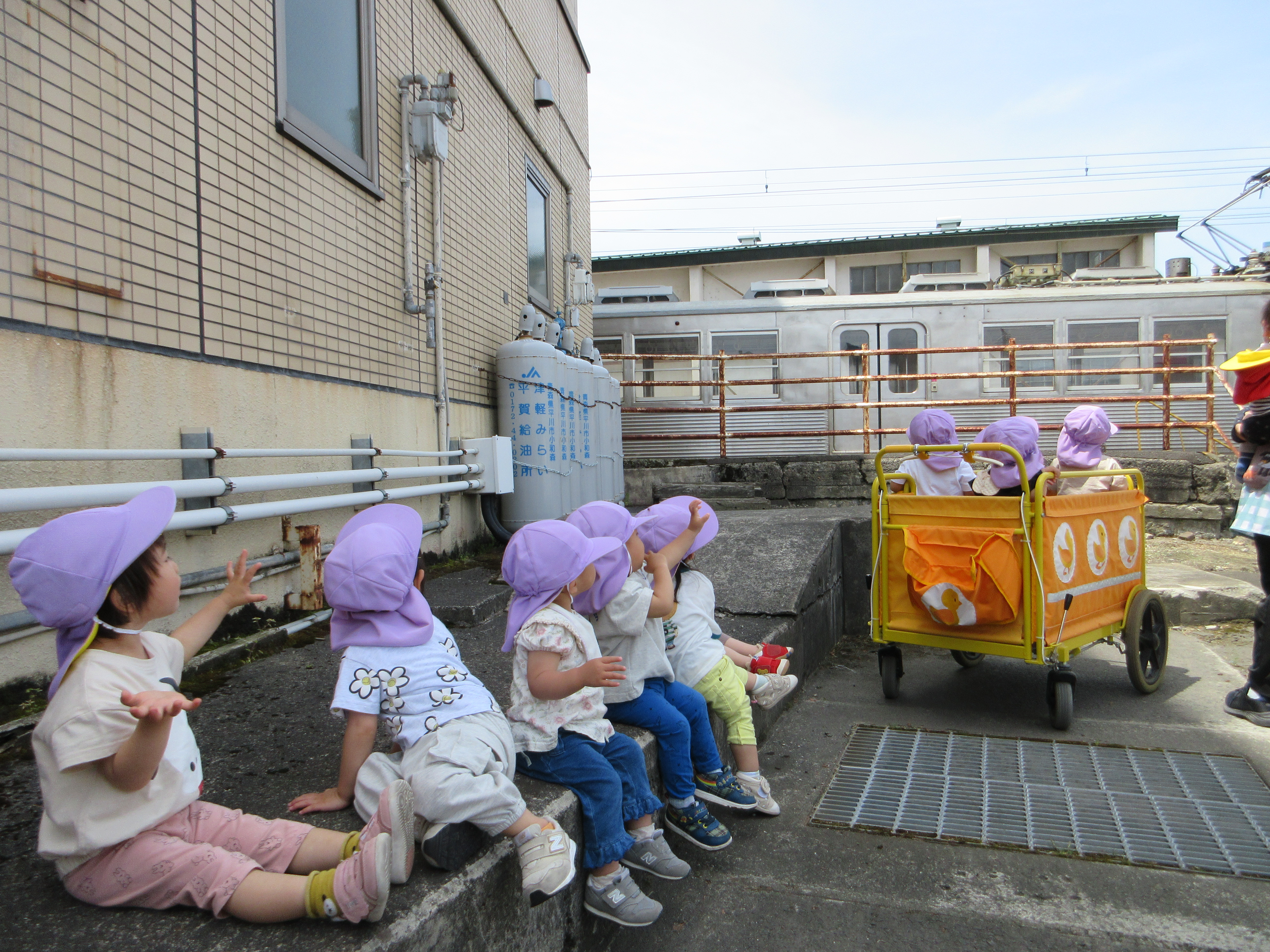 さくらんぼ組とみかん組、駅までお散歩。電車を見てきたよ!