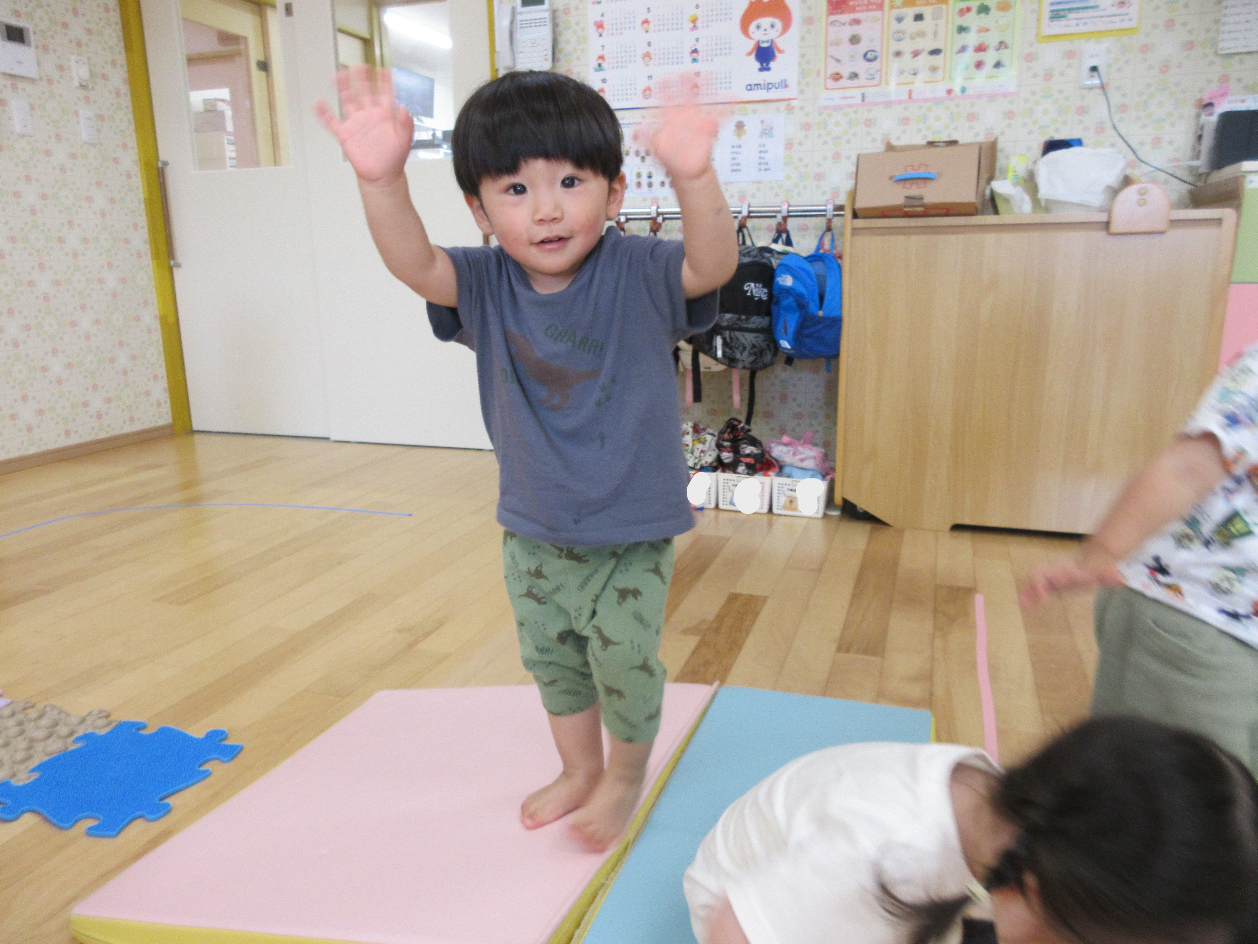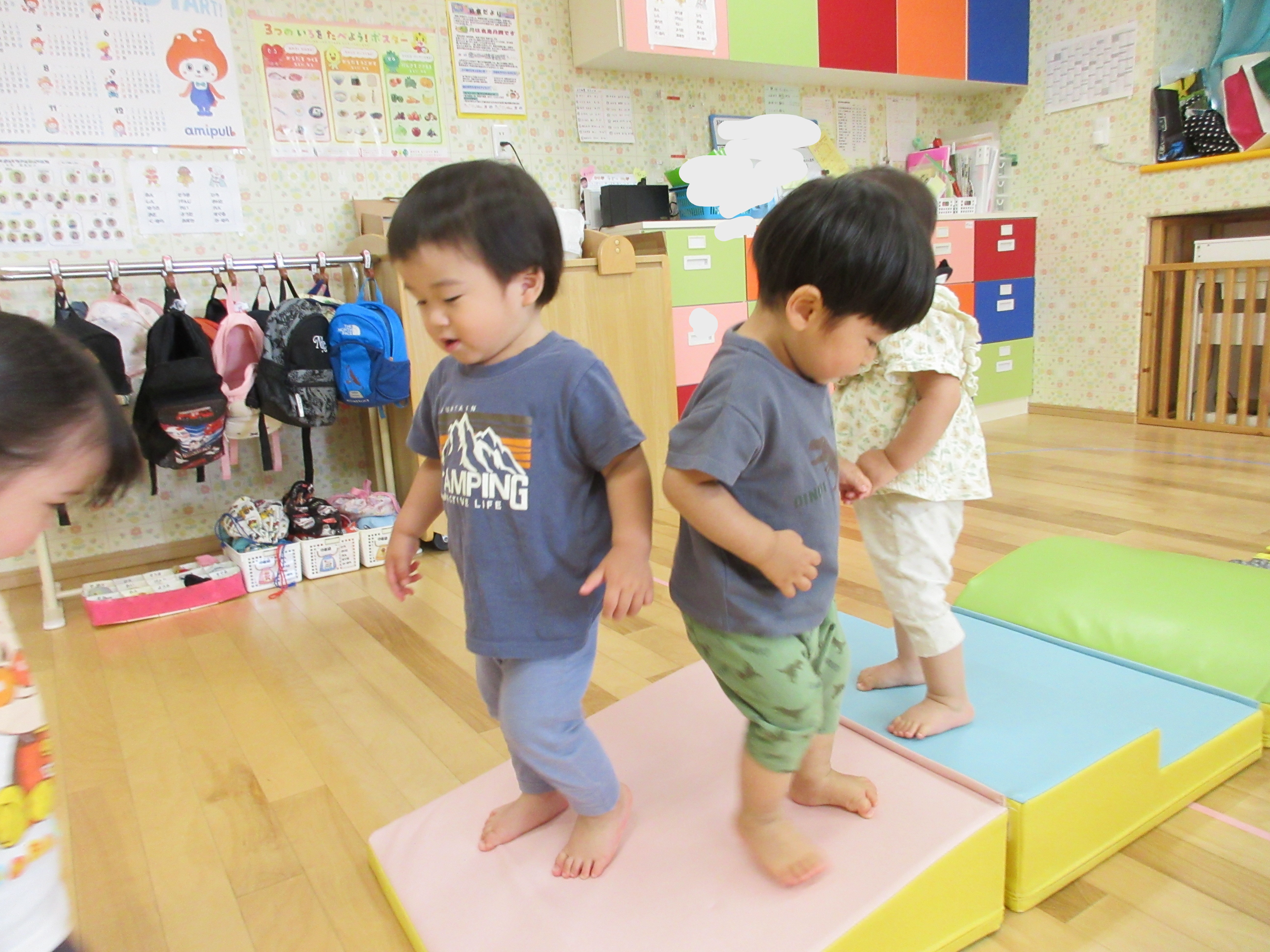 こちらはマットの上ではしゃいでいます!